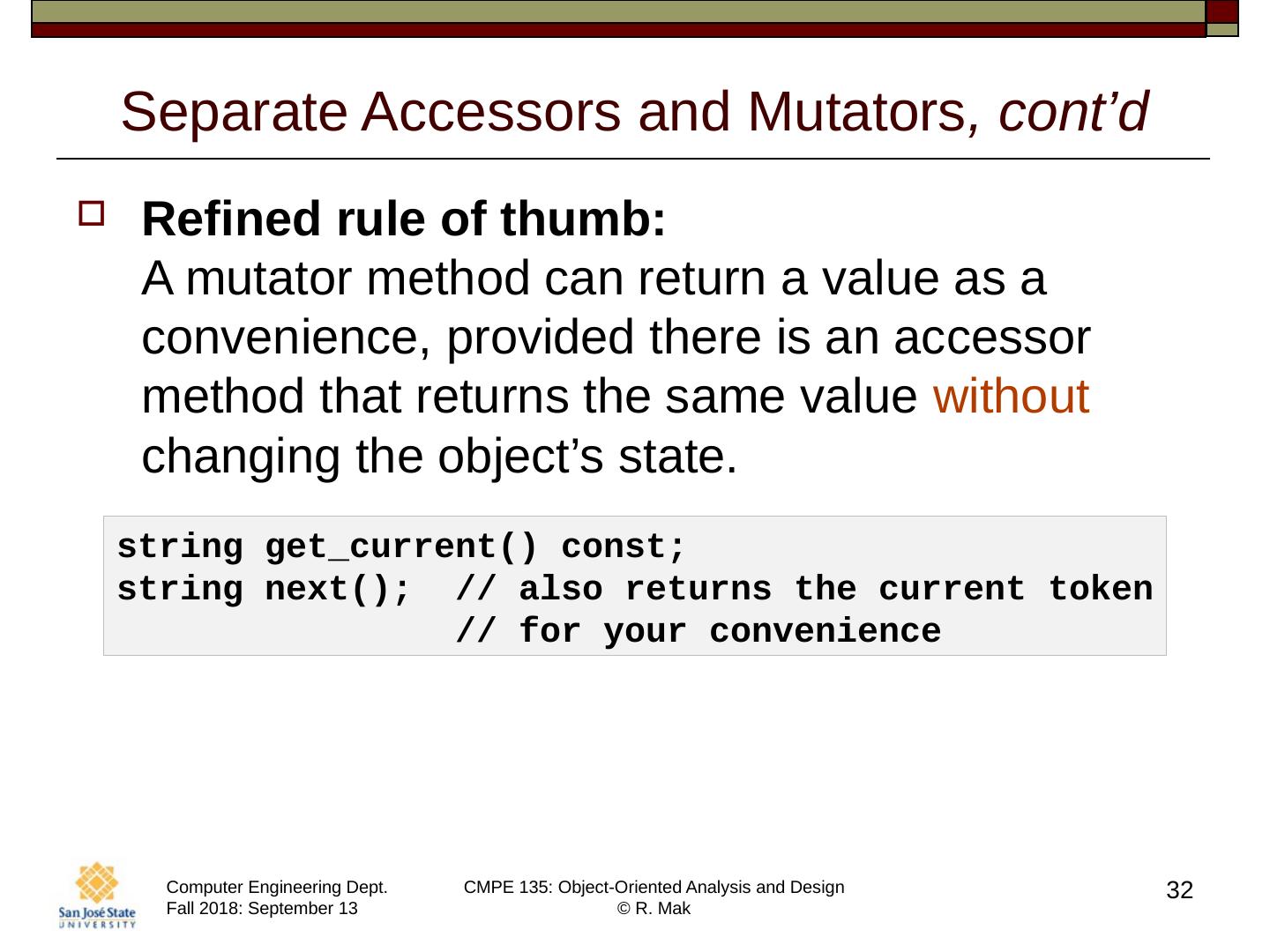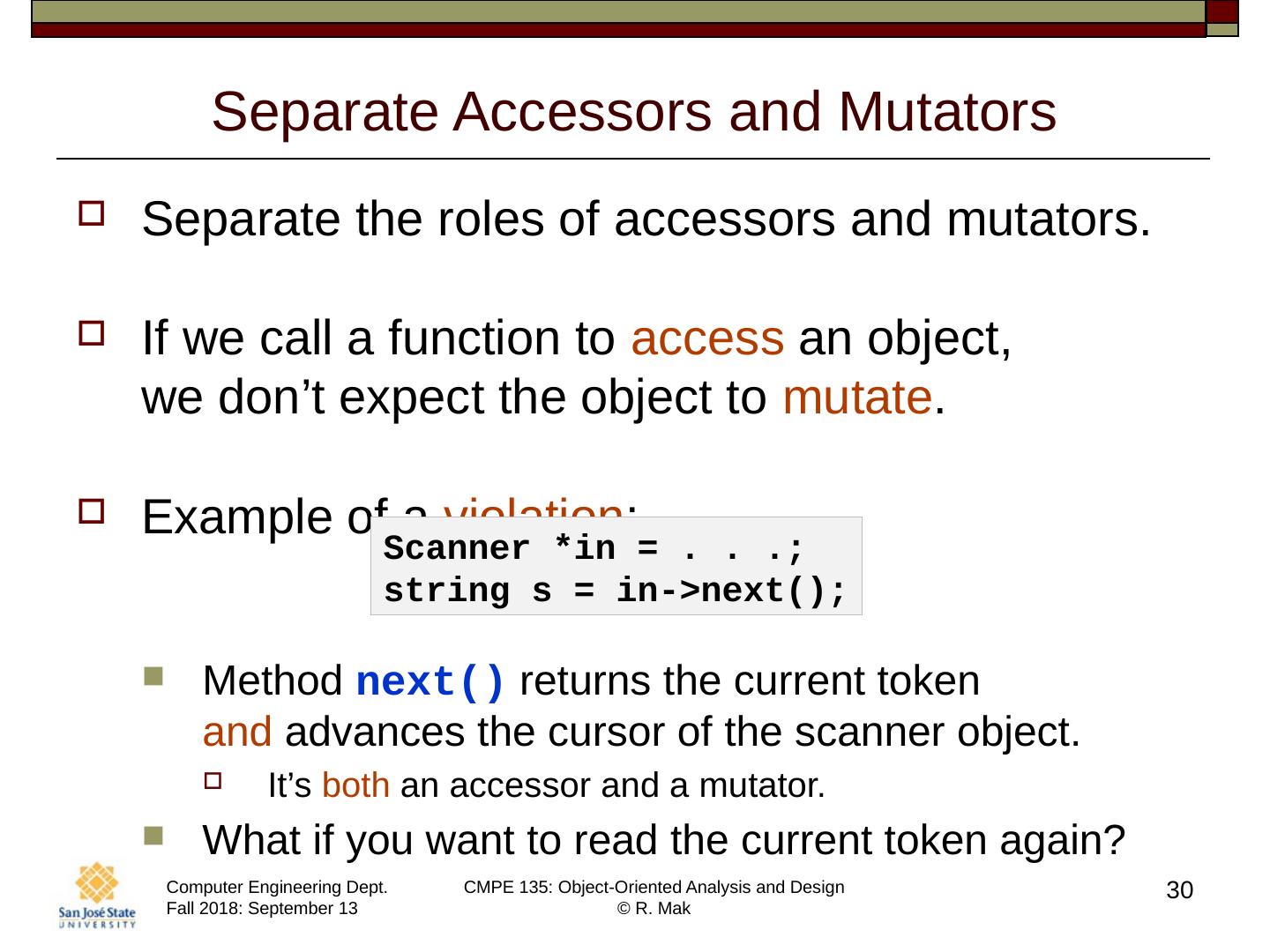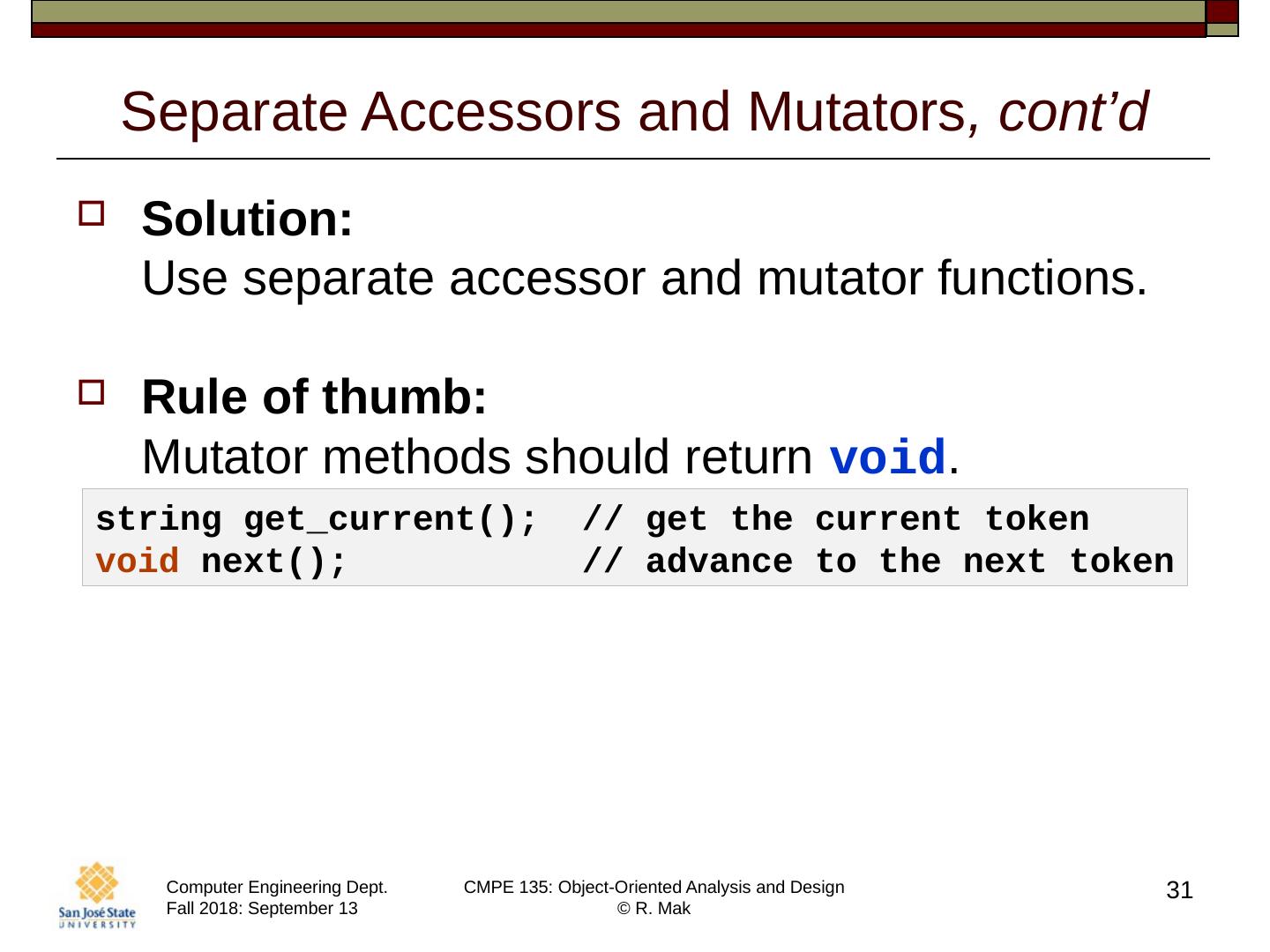 1 .CMPE 135: Object-Oriented Analysis and Design September 13 Class Meeting Department of Computer Engineering San Jose State University Fall 2018 Instructor: Ron Mak www.cs.sjsu.edu/~mak 1
