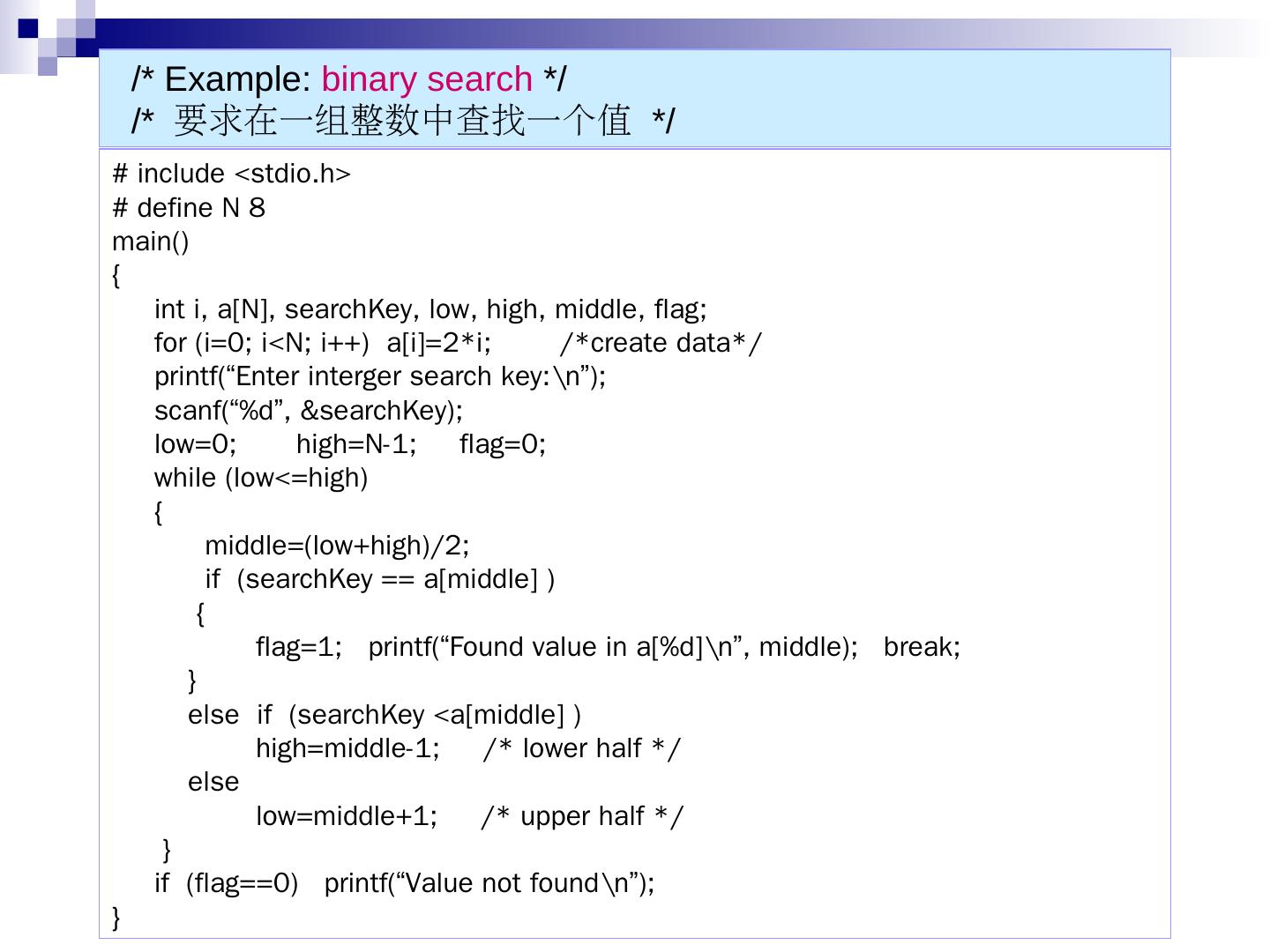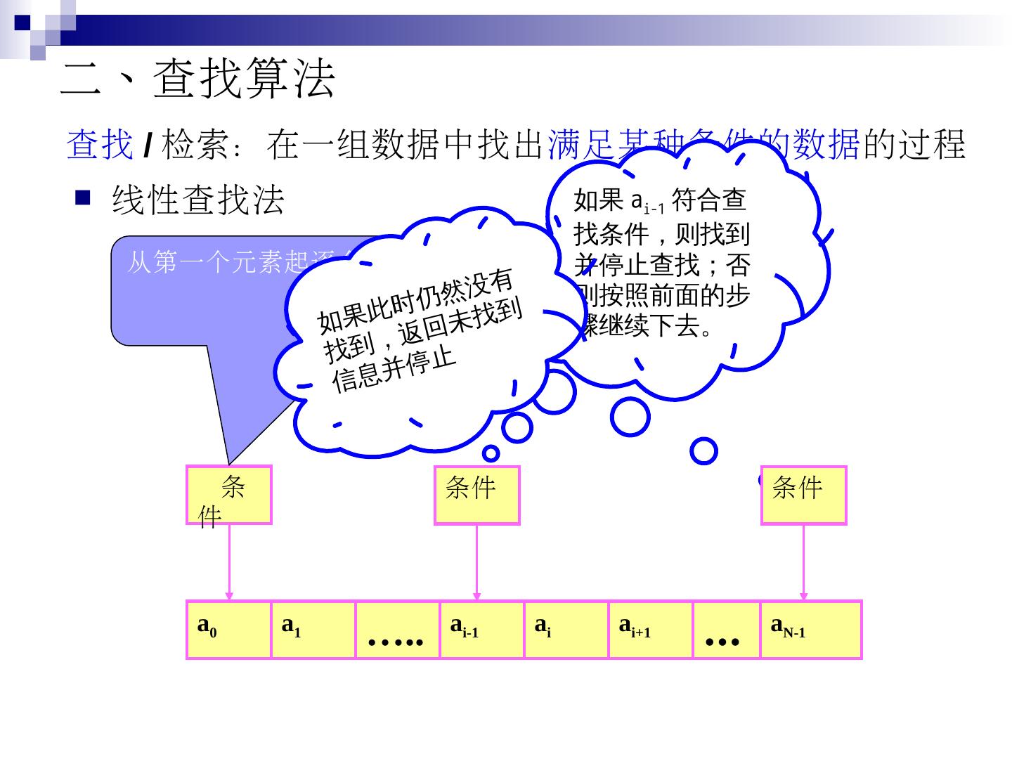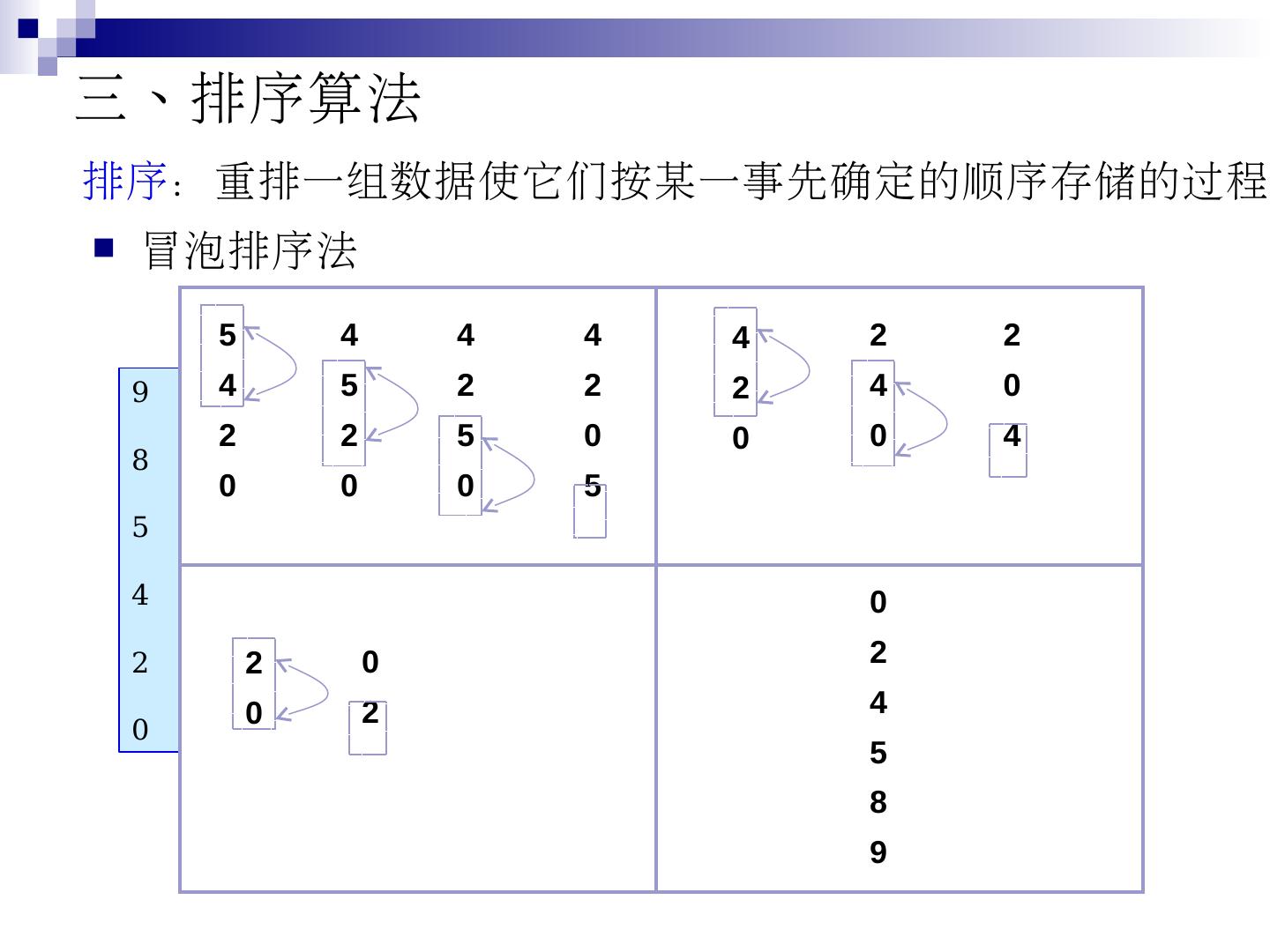 Topic4 查找/排序. 学习目标. 了解算法效率的度量方法和大O记法; 掌握简单的线性查找法和二分查找法; 掌握简单的选择排序法和冒泡排序法; 了解分而治之 ..... 排序:重排一组数据使它们按某一事先确定的顺序存储的过程 ... Example: selection sort */.