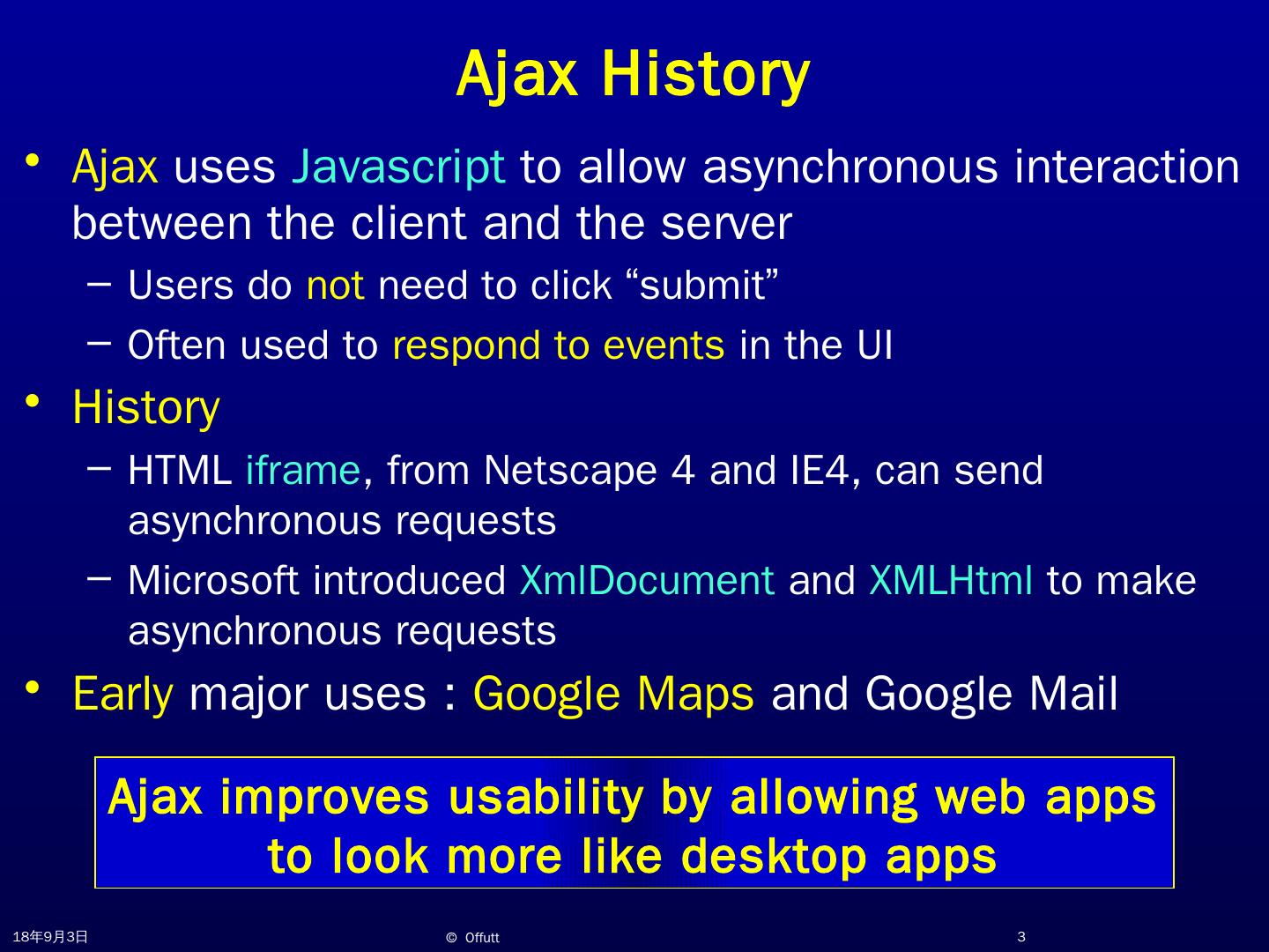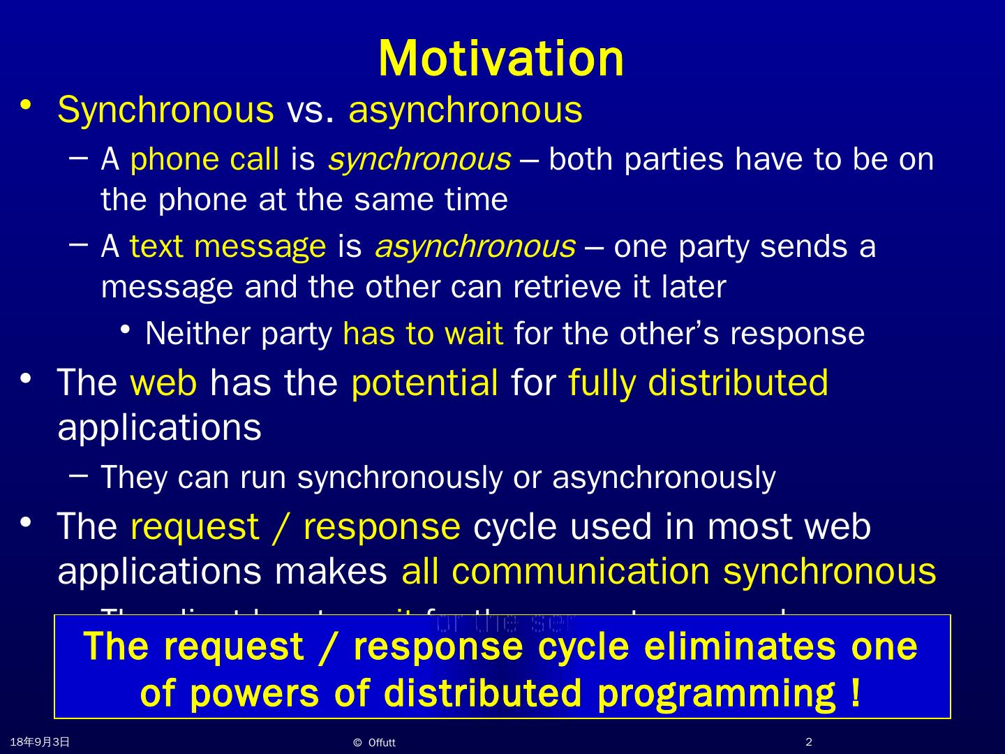 With Ajax. Jeff Offutt. http://www.cs.gmu.edu/~offutt/. SWE 432. Design and Implementation of Software for the Web. Motivation. Synchronous vs. asynchronous.