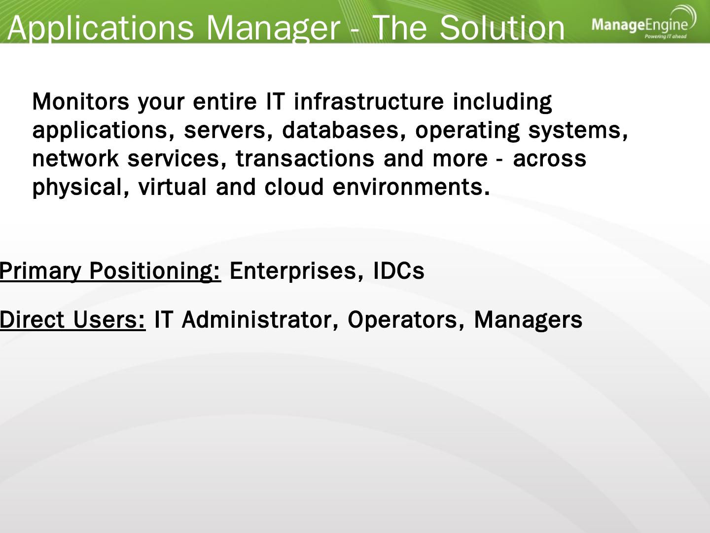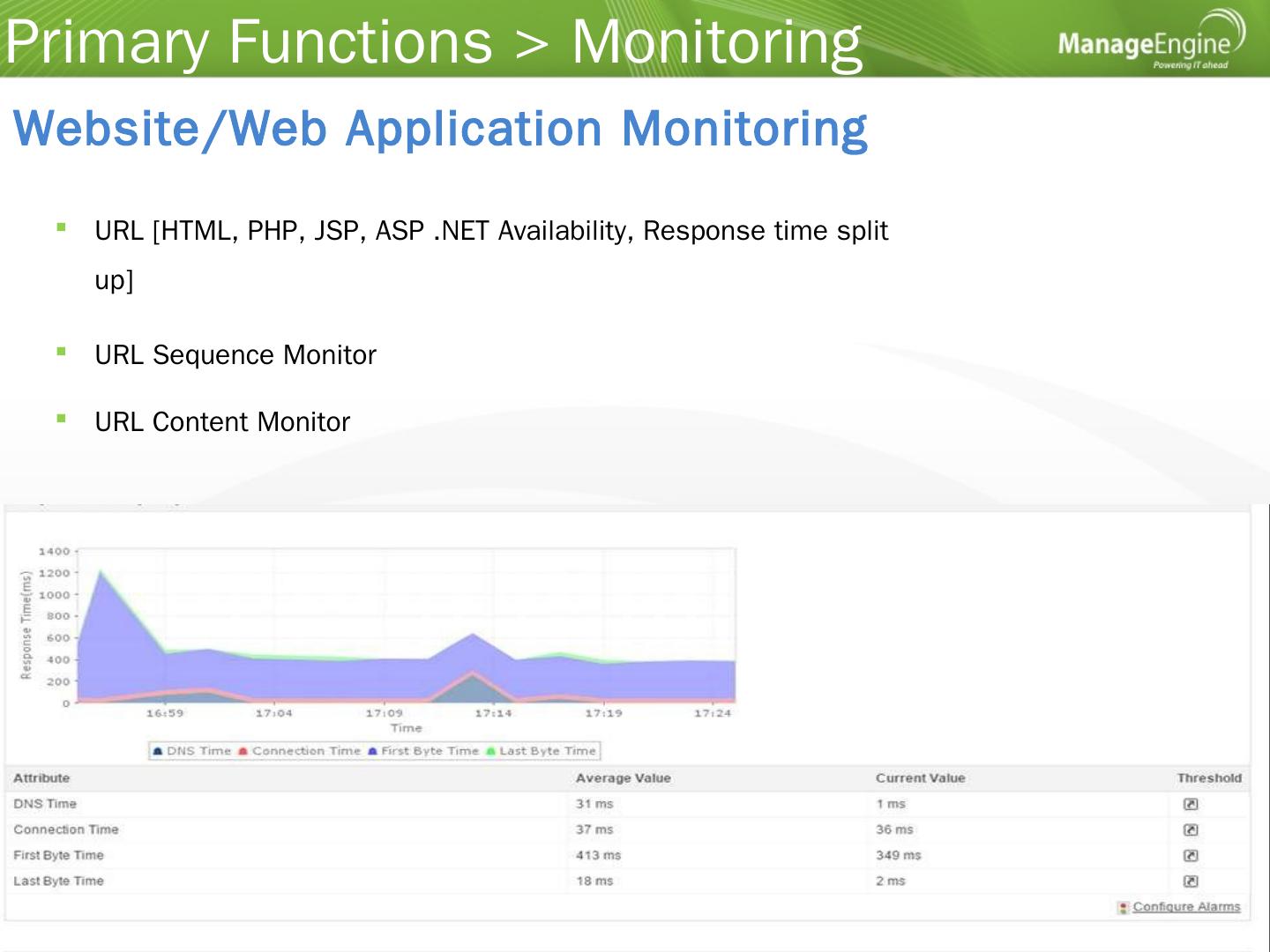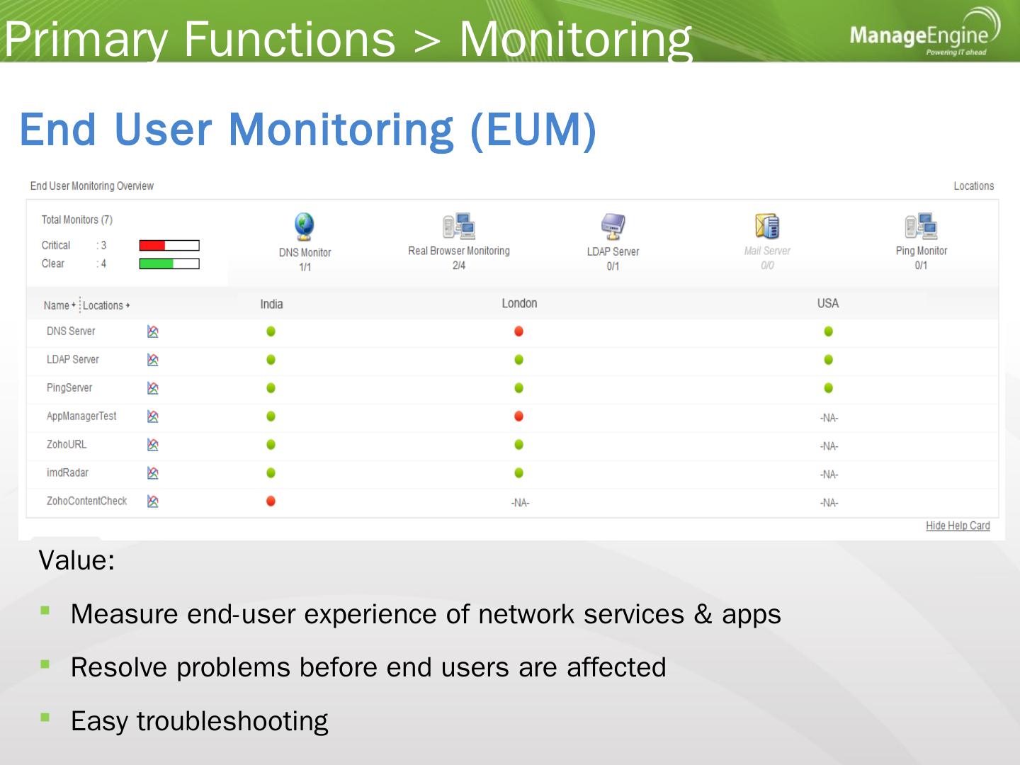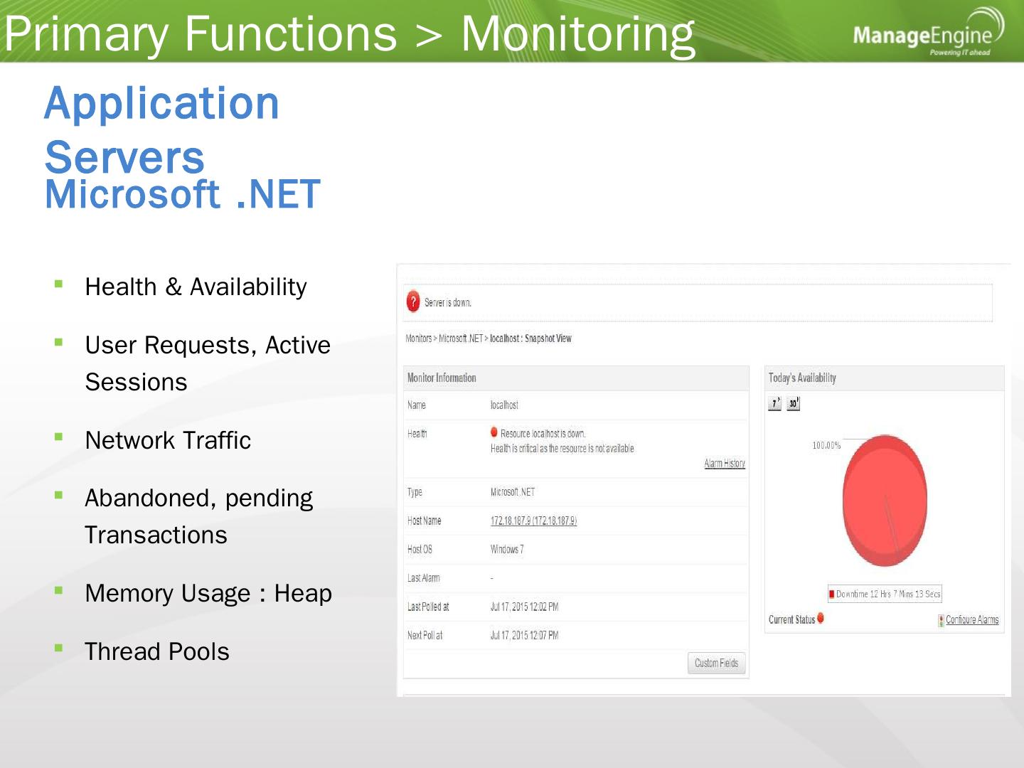 Java, Ruby on Rails, .Net. Primary Functions > Monitoring. Web Transactions. Java, Ruby on Rails, .Net. Apdex scores; Transaction tracing; Metrics from URL to ...