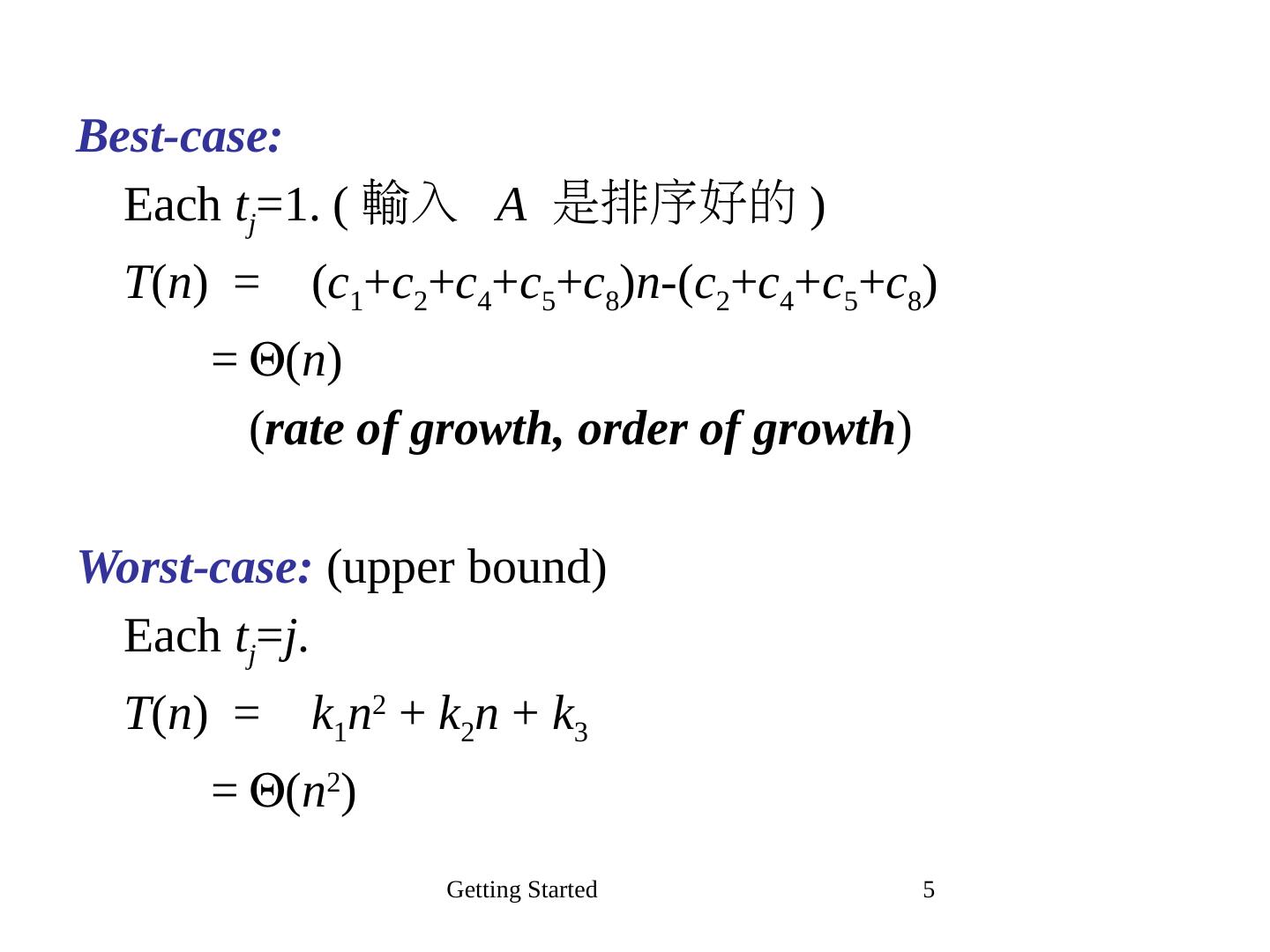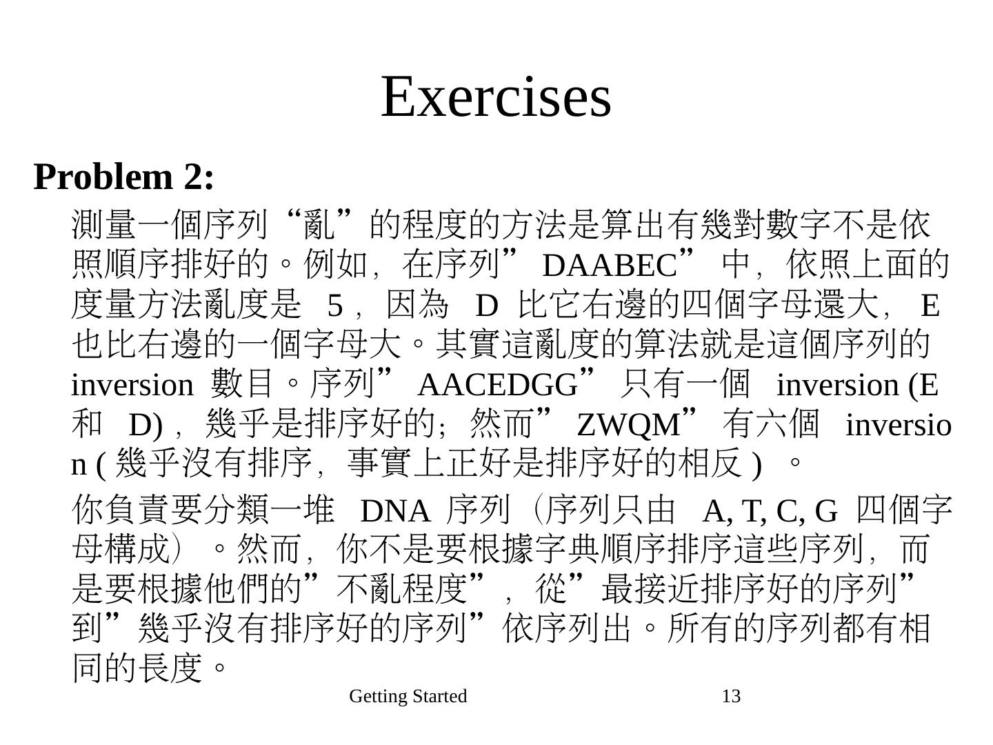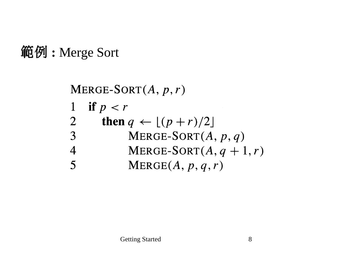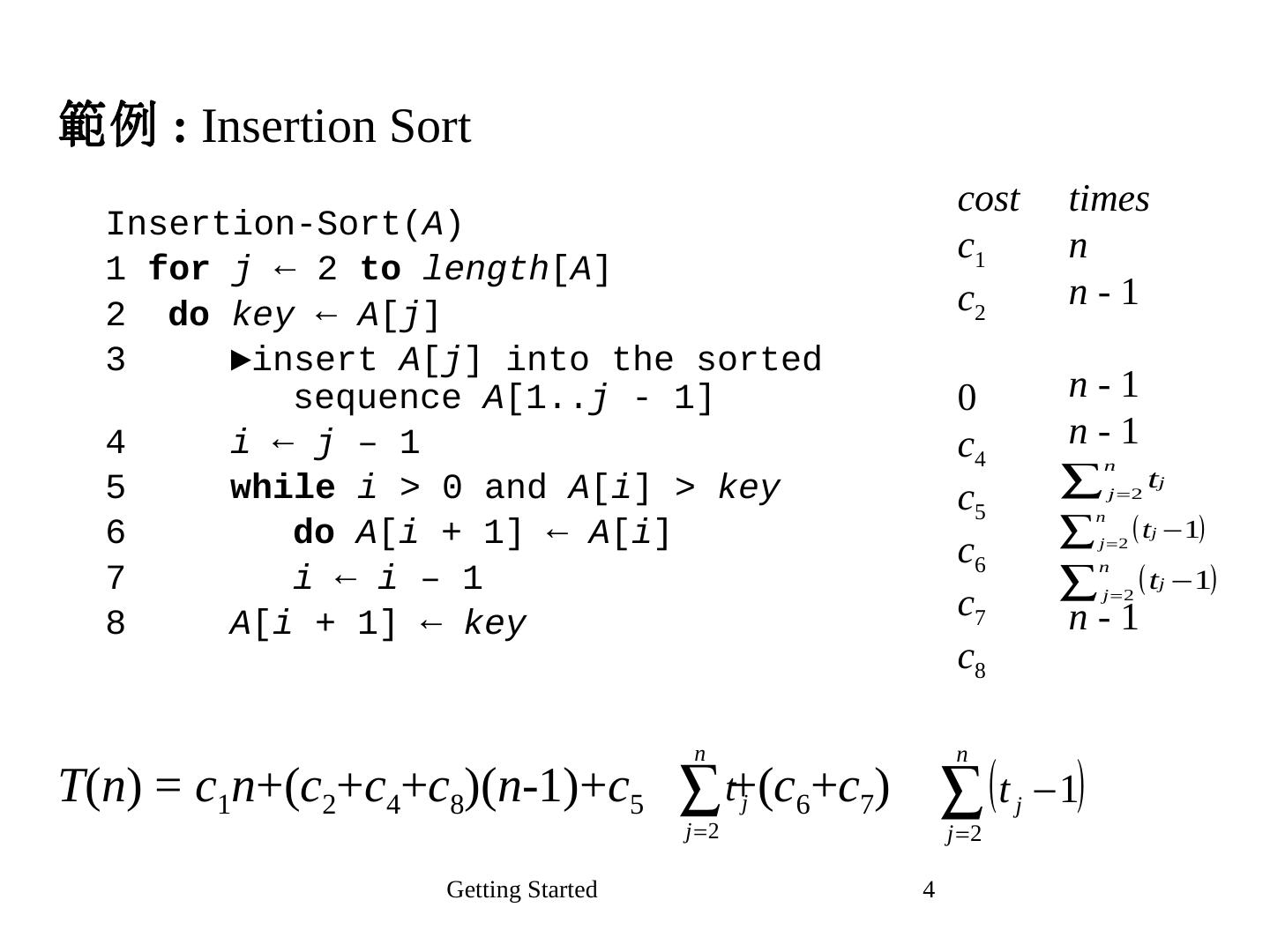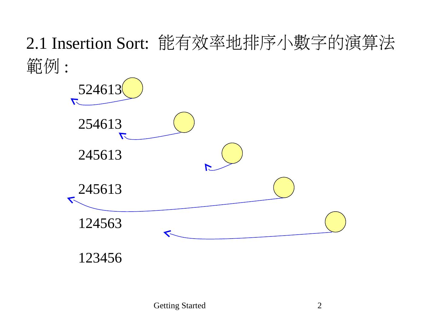 2.1 Insertion Sort: 能有效率地排序小數字的演算法. 範例: 524613 ... 範例: Insertion Sort. Insertion-Sort(A) .... 其實這亂度的算法就是這個序列的inversion 數目。