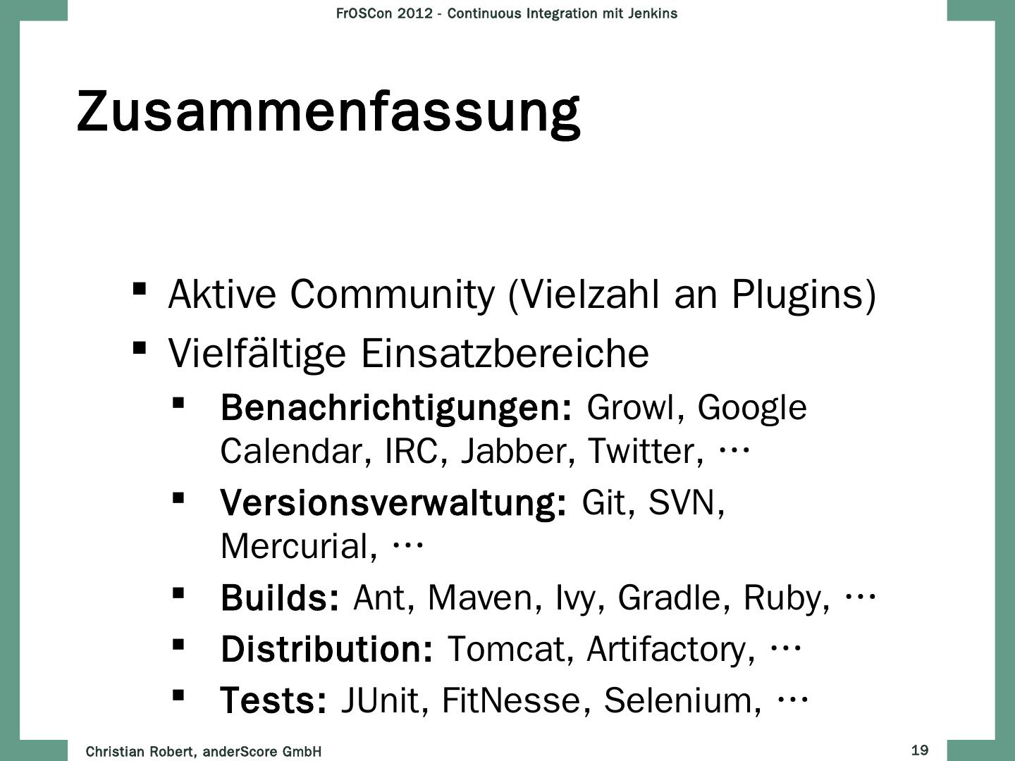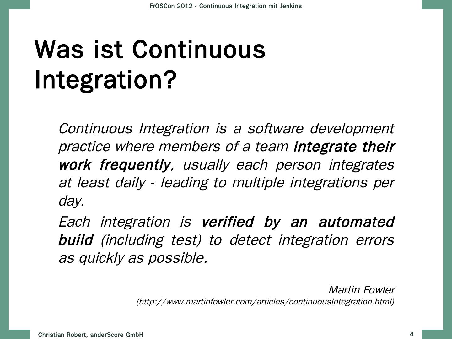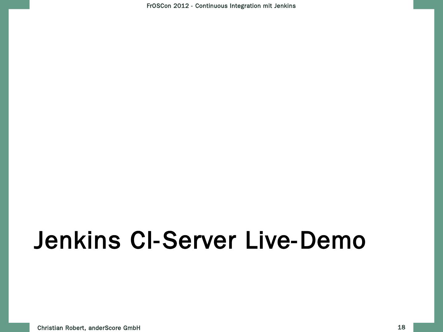 mit Jenkins. Christian Robert anderScore GmbH. Senior Software Engineer Frankenwerft 35 christian.robert@anderScore.com 50677 Köln www.anderScore.