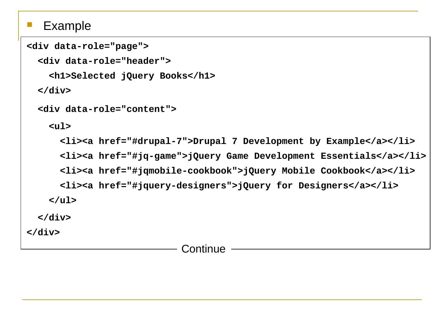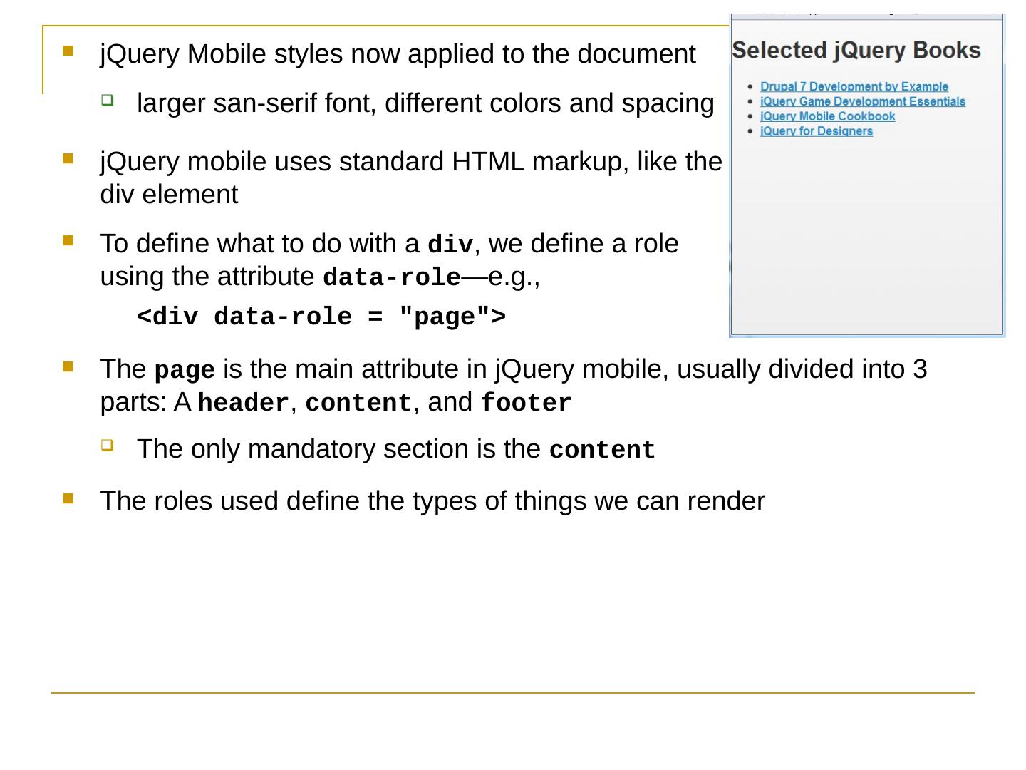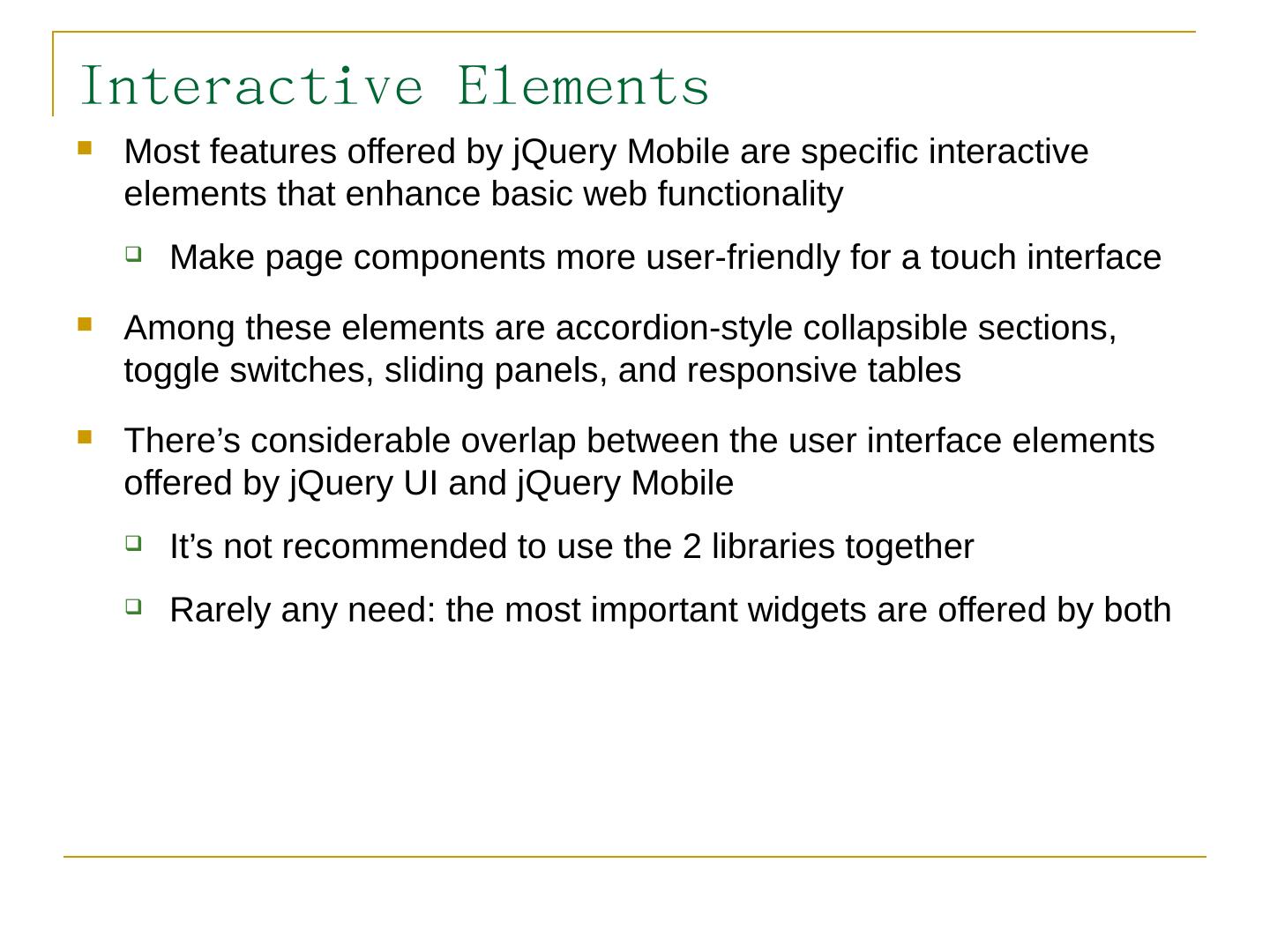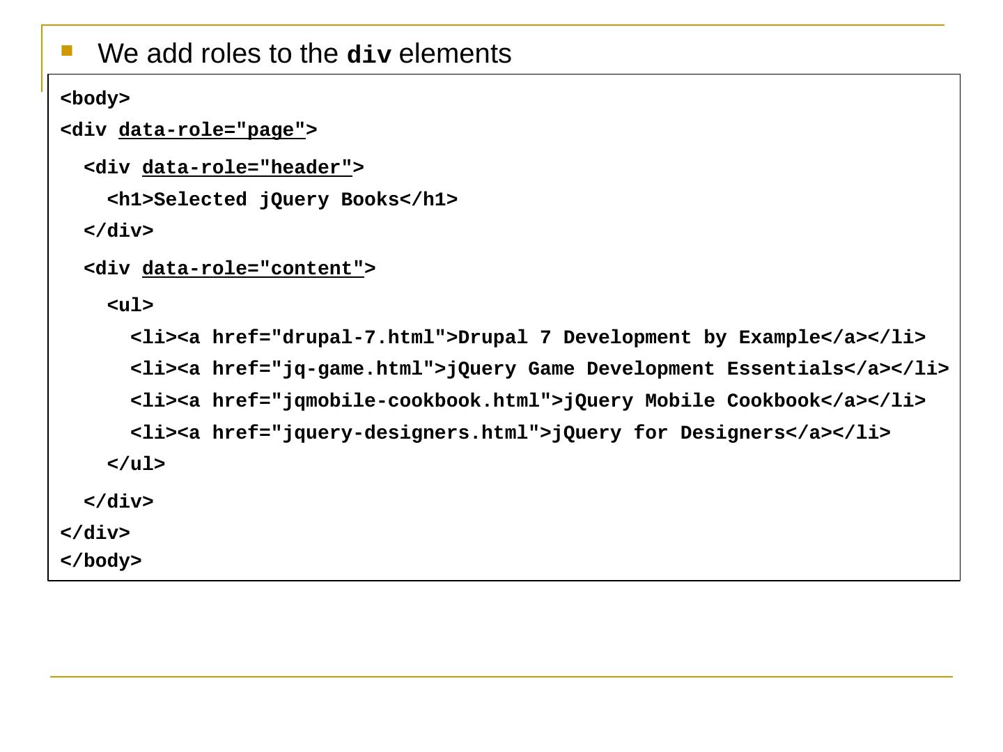 Like jQuery UI, jQuery Mobile consists of a suite of related components that can be used a la carte but work together seamlessly; The framework provides.