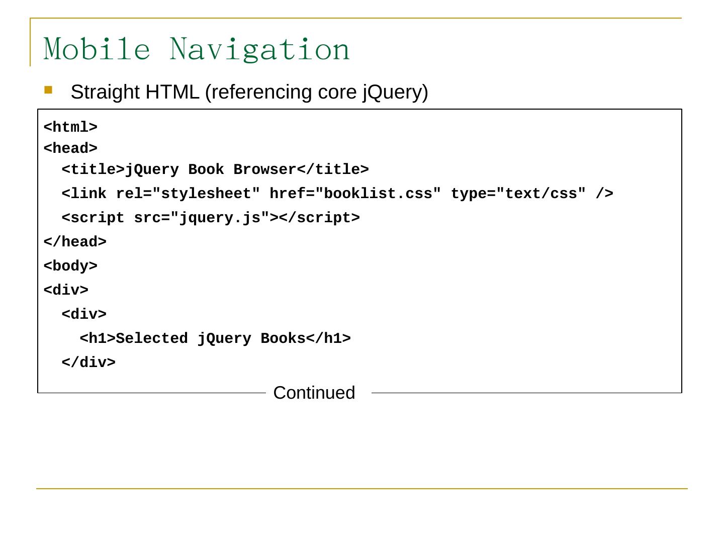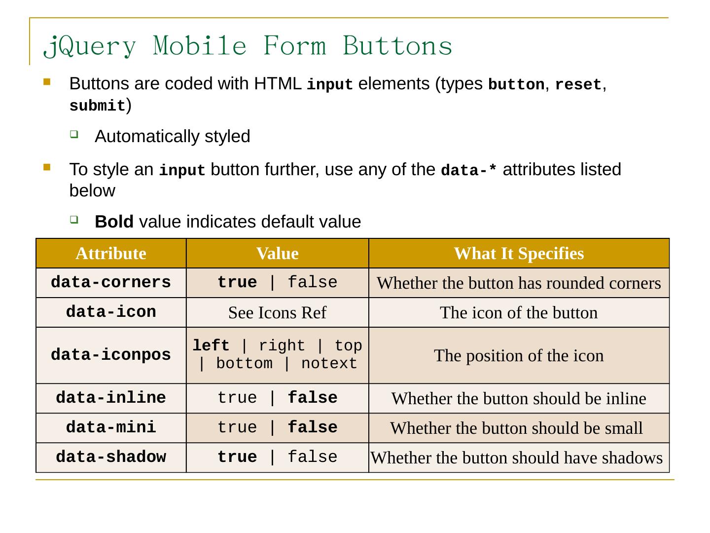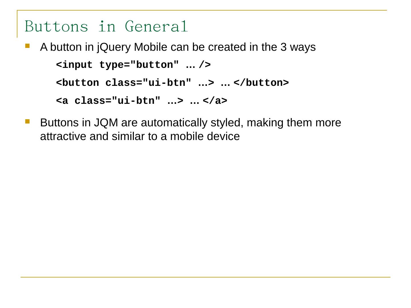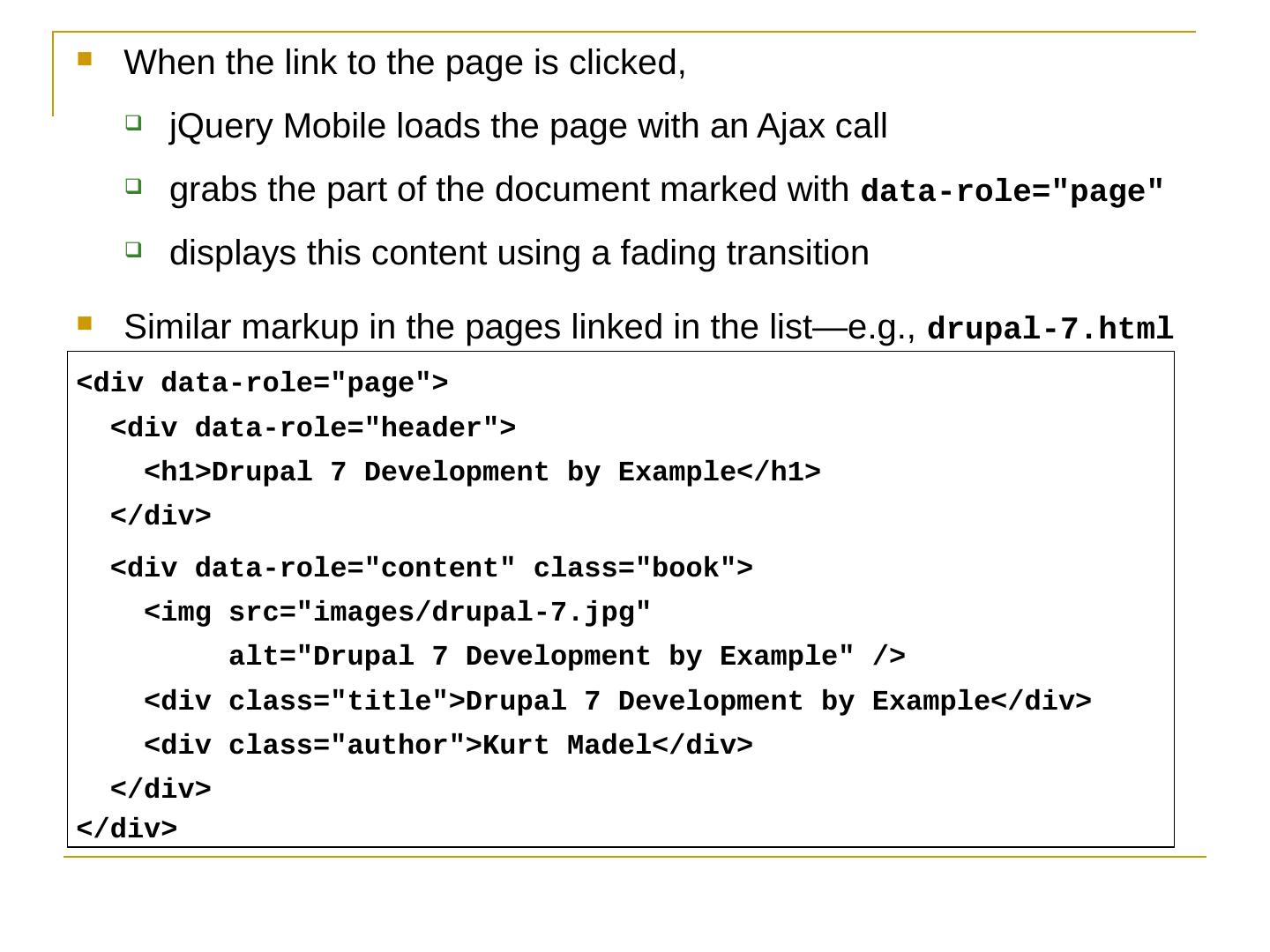 Like jQuery UI, jQuery Mobile consists of a suite of related components that can be used a la carte but work together seamlessly; The framework provides.