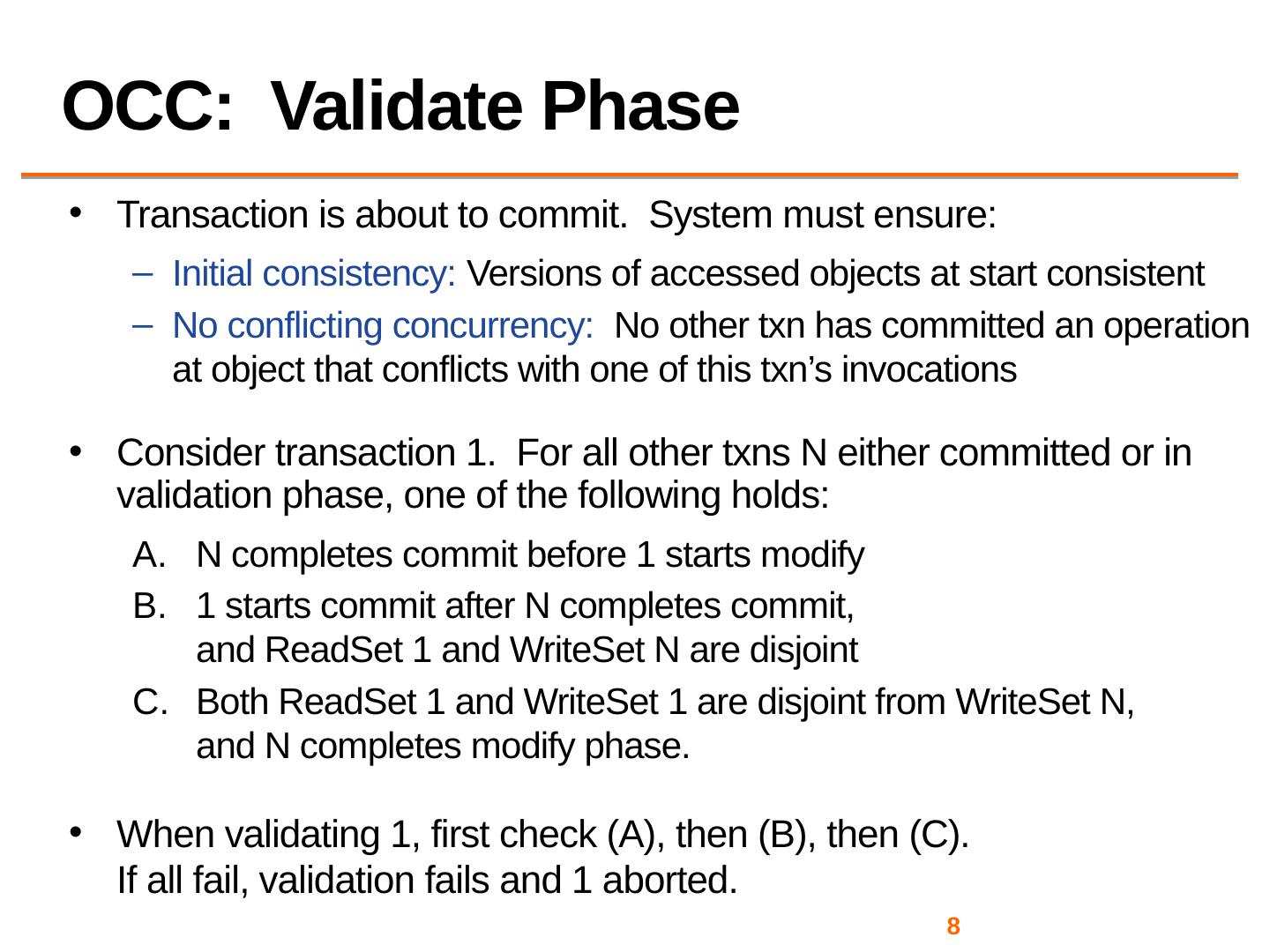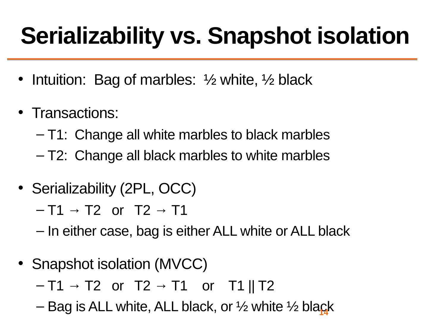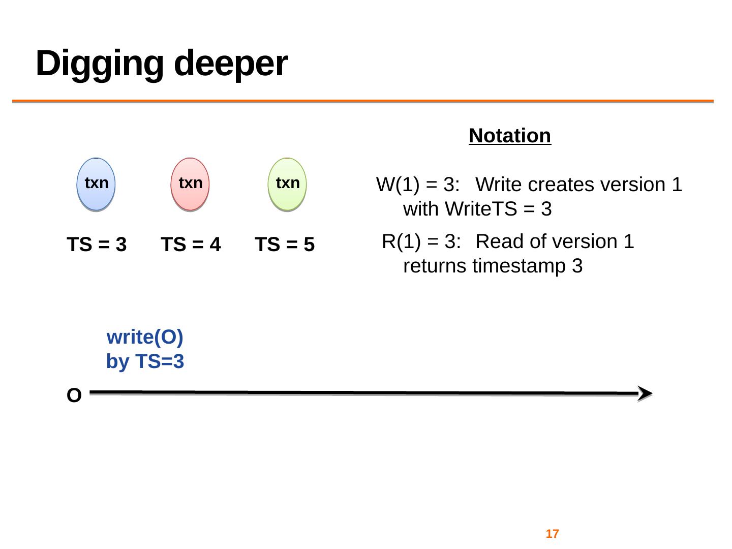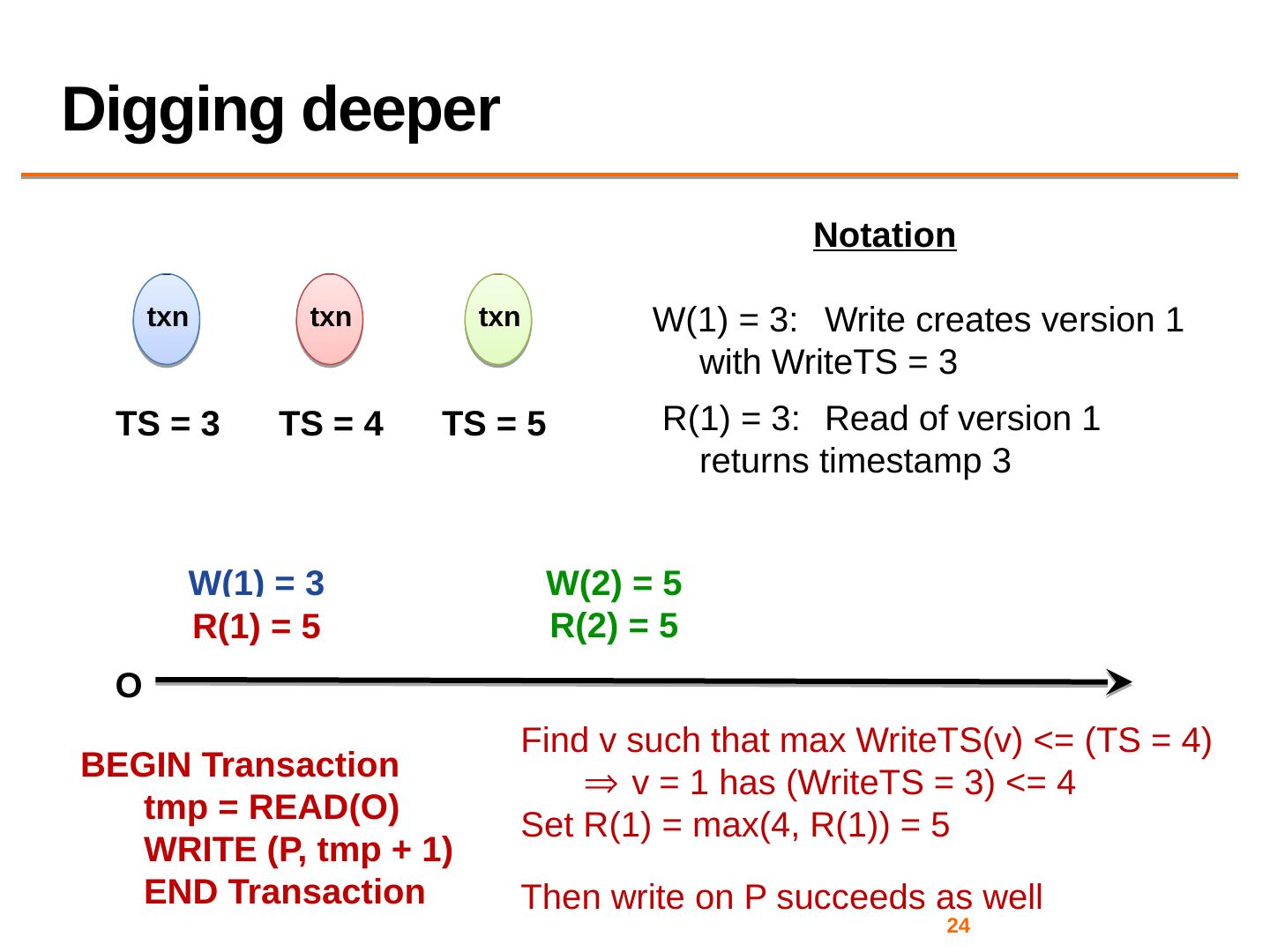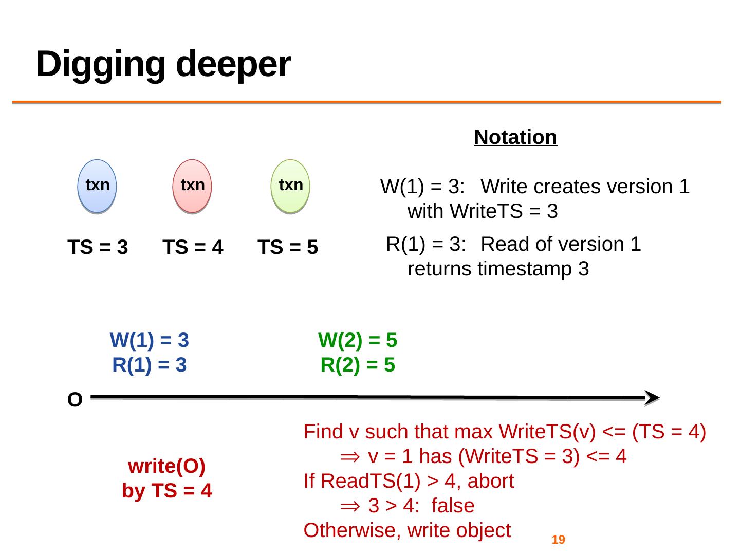 Prior example of MVCC: 11. Multi-version concurrency control. Maintain multiple versions of objects, each with own timestamp. Allocate correct version to reads.