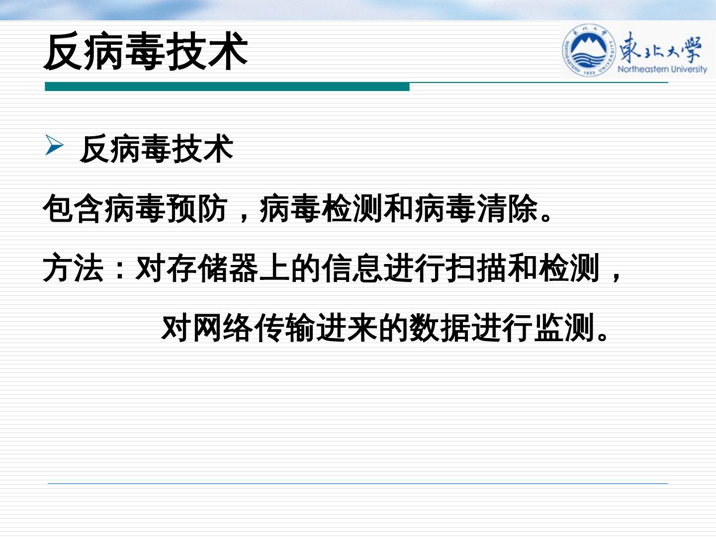 18 .认证技术 认证技术 目前计算机中一般采用基于密码的认证技术; 人的生理特征参数的保密性很好,但实现起 来比较困难; 基于智能卡的认证技术是目前比较成熟的技 术。