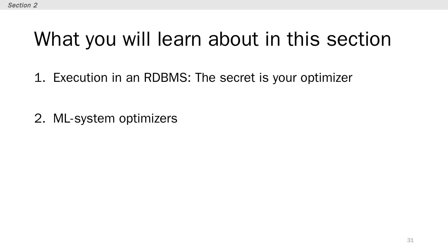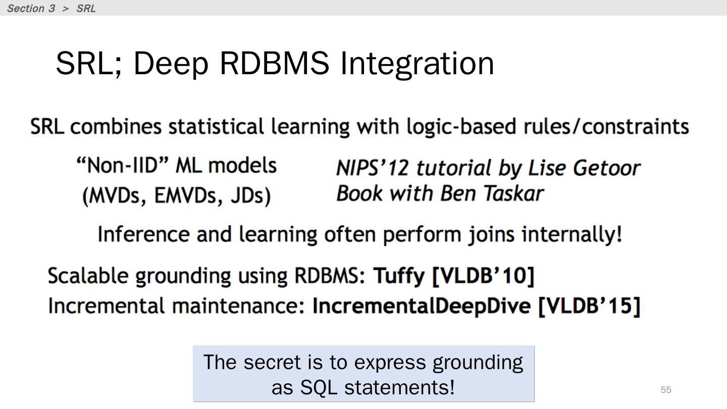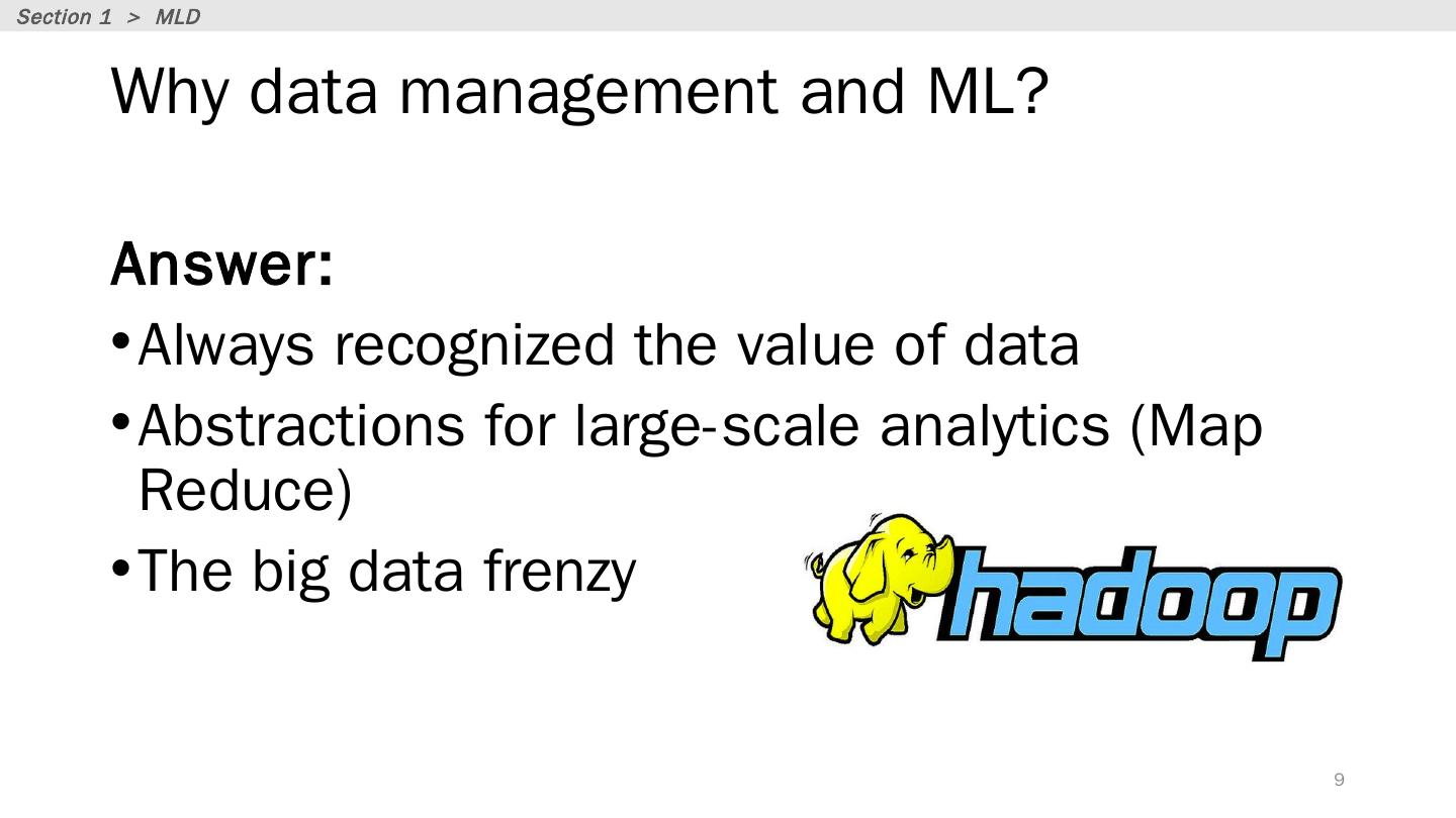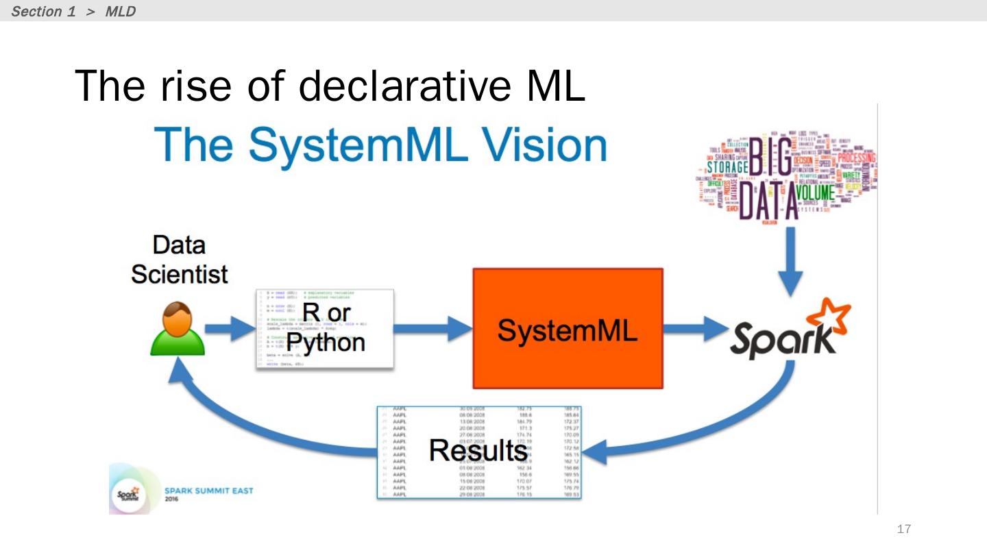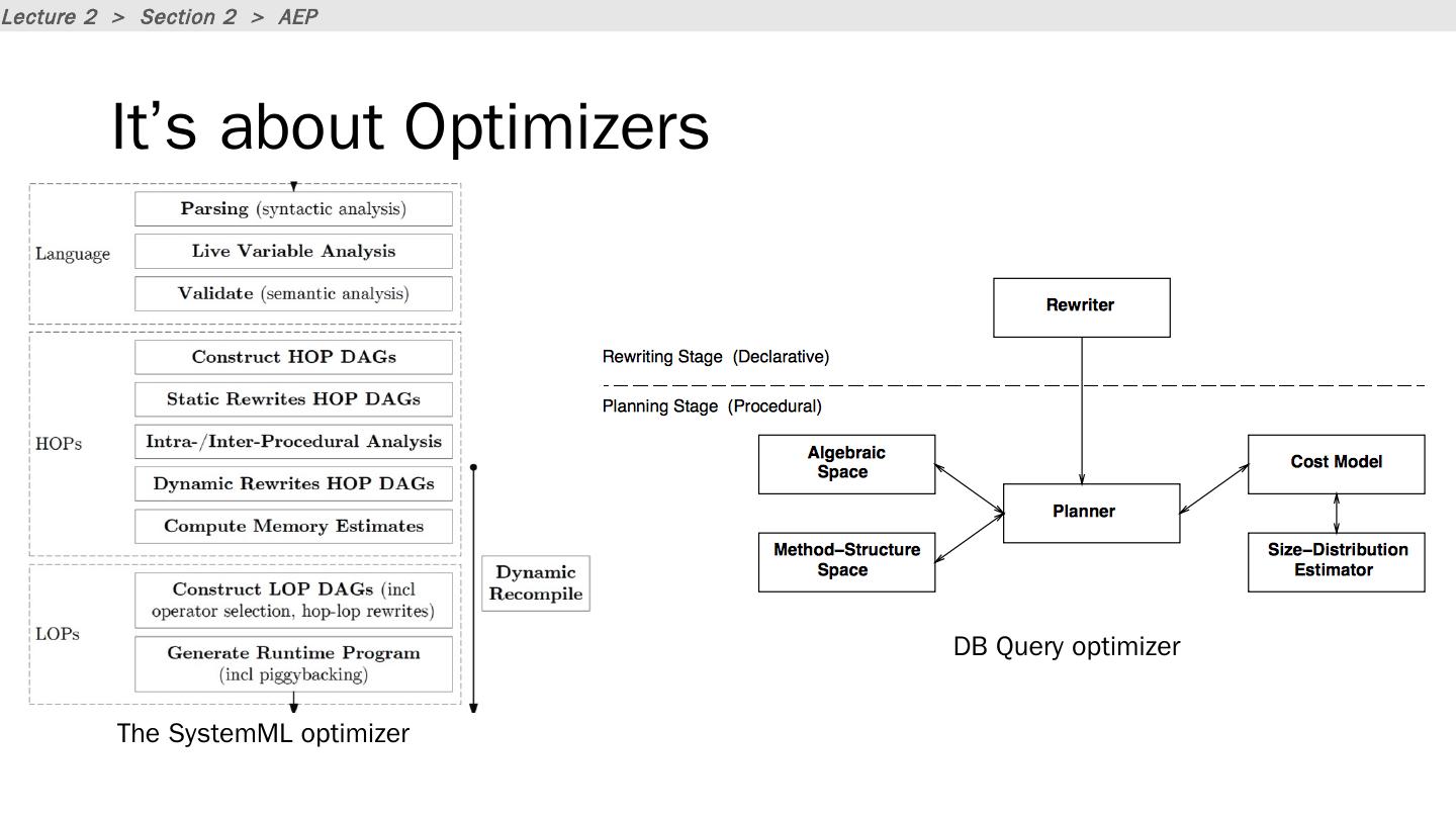Slides reused from: SystemML Talk @ Spark Summit 2016 Kumar et al. @ SIGMOD 2017, Domingos @ CIKM 2013. Announcements. Waiting list: we are at ...