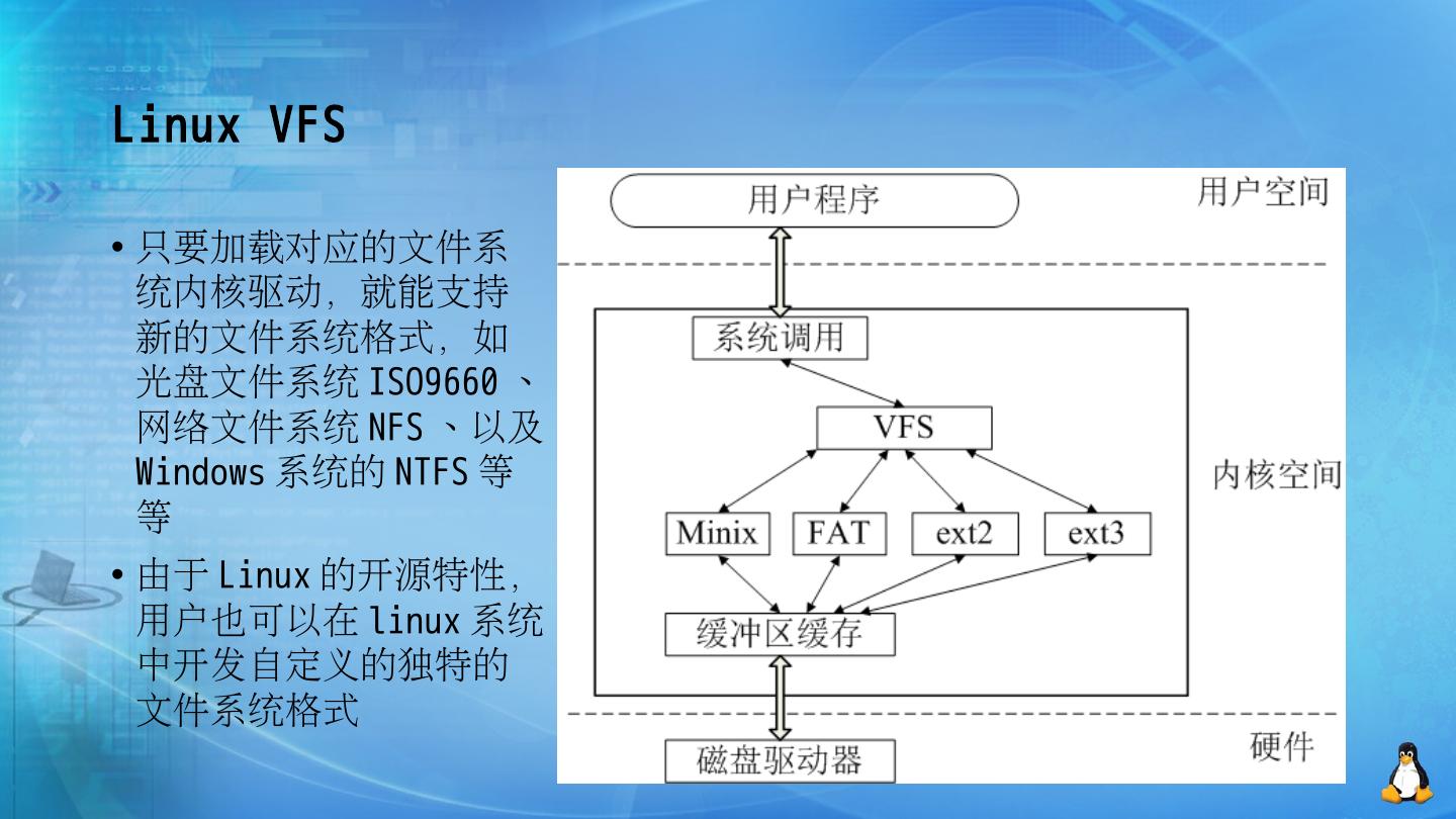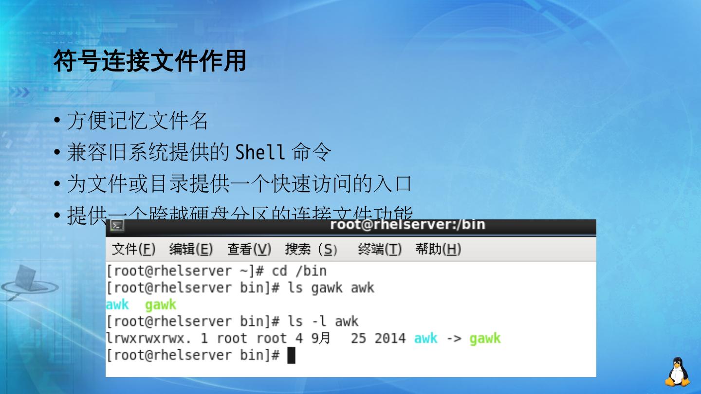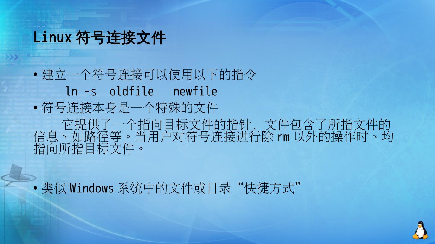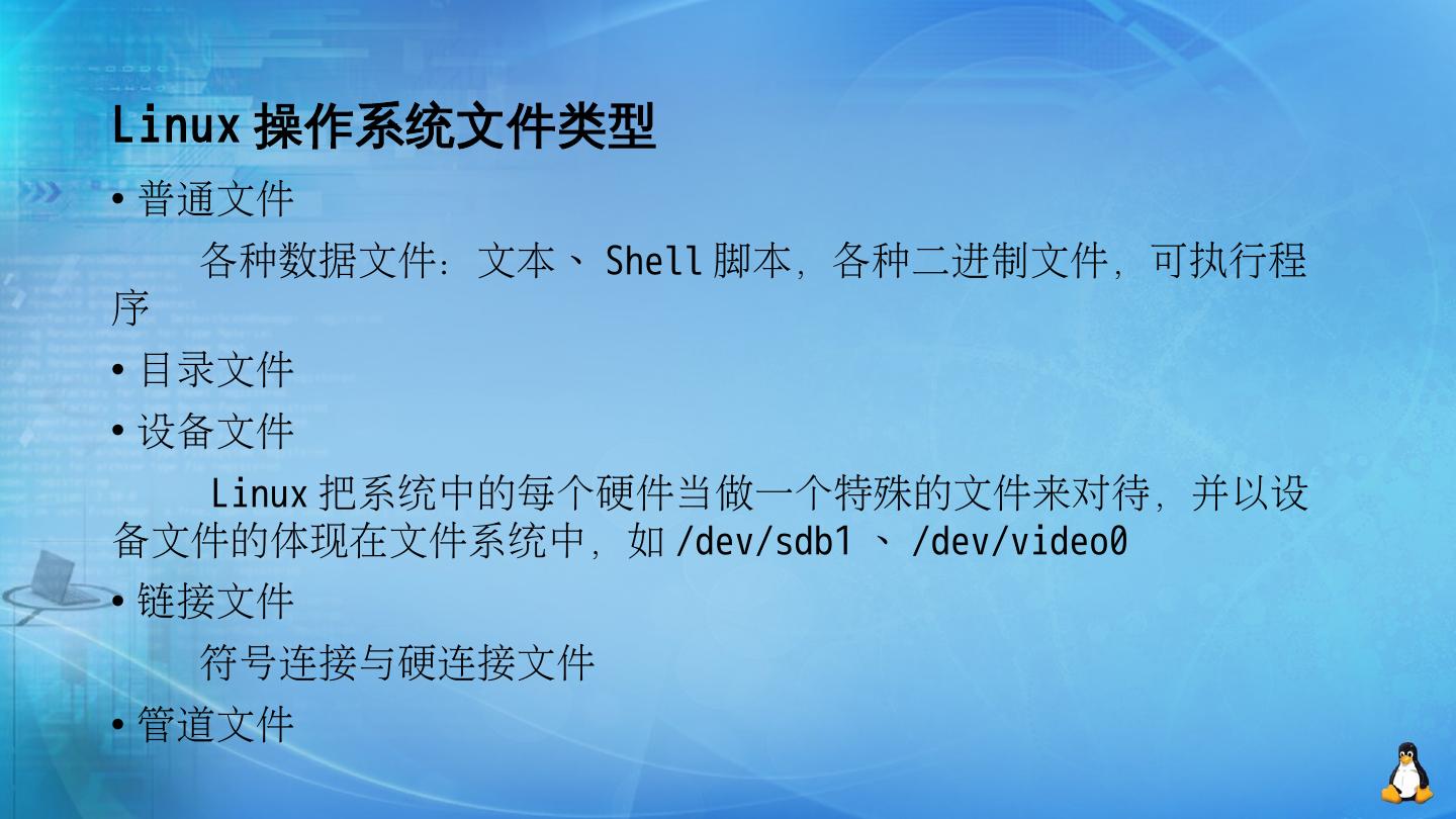 Linux 文件系统-ext文件系统特点. 主讲教师:张美平. 主要内容. Linux文件类型. ext文件系统中的inode与硬连接文件. Linux符号连接文件. Linux通过vfs支持多种文件 ...