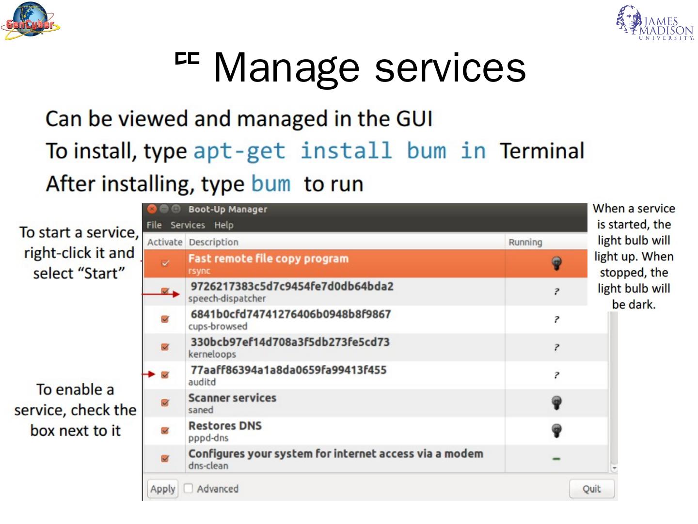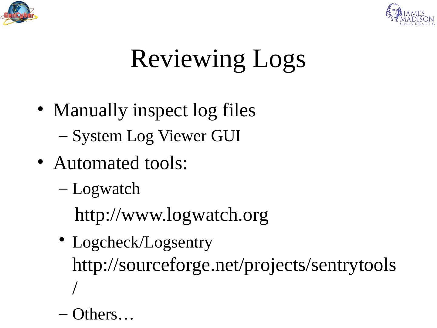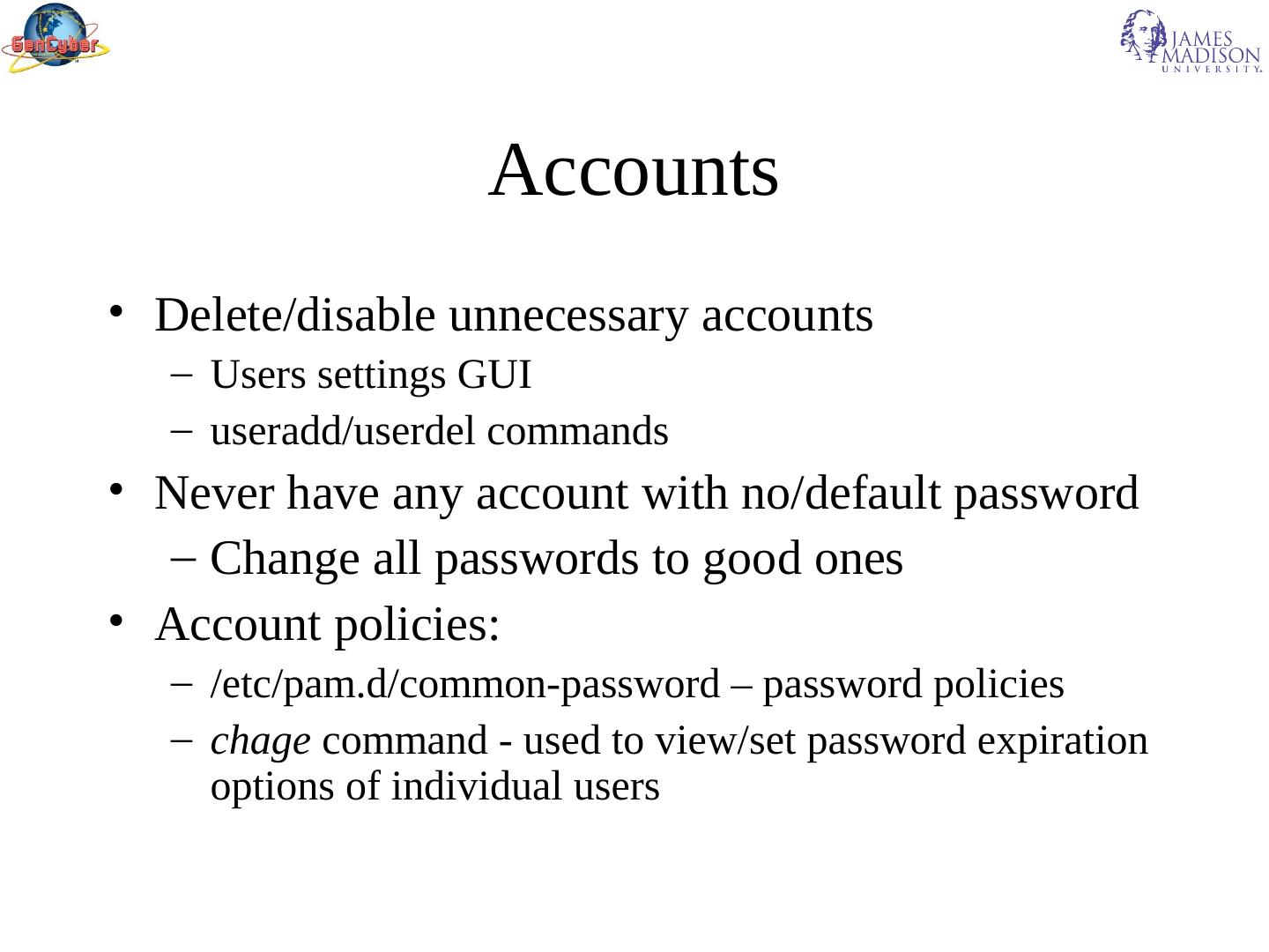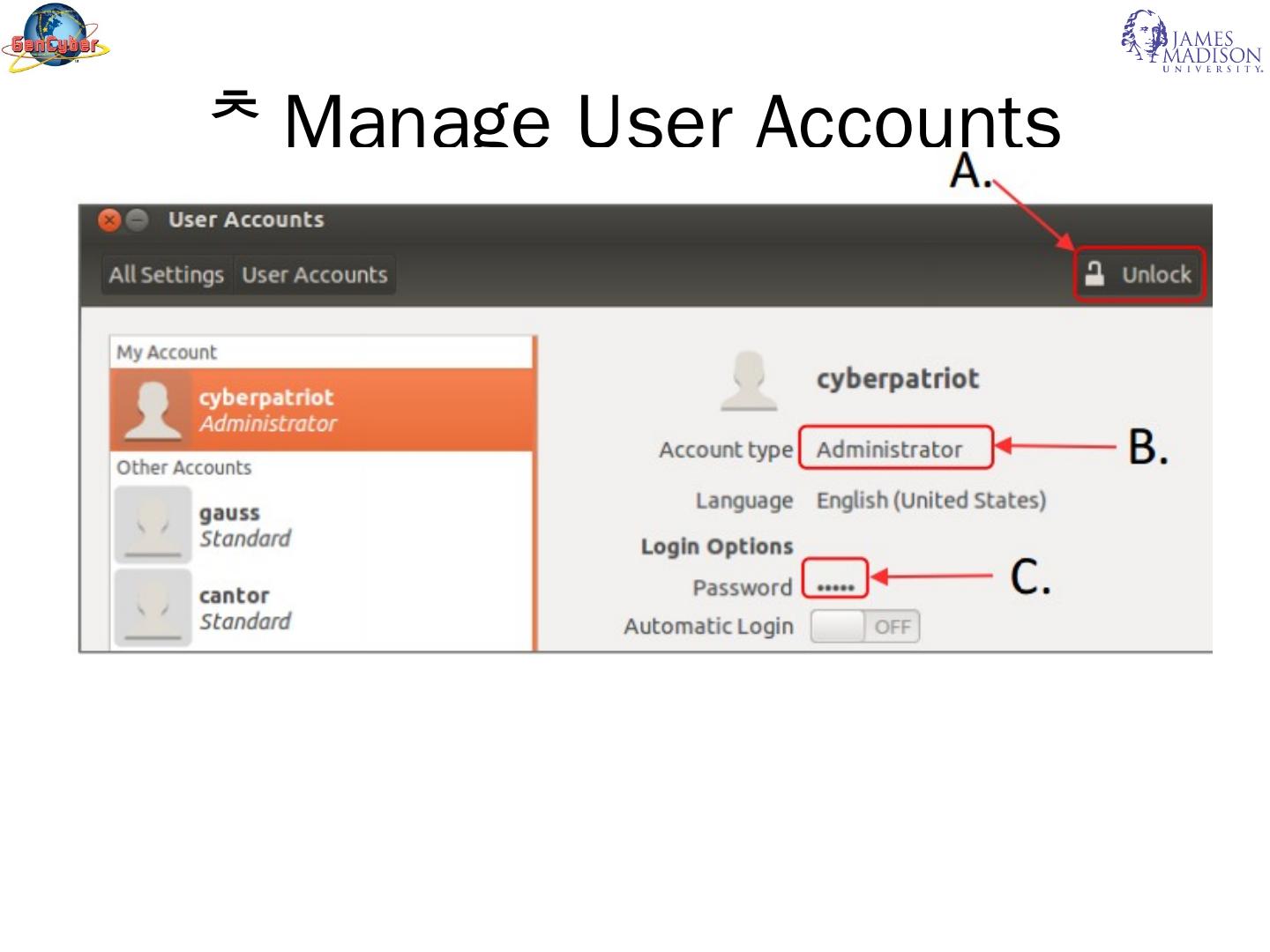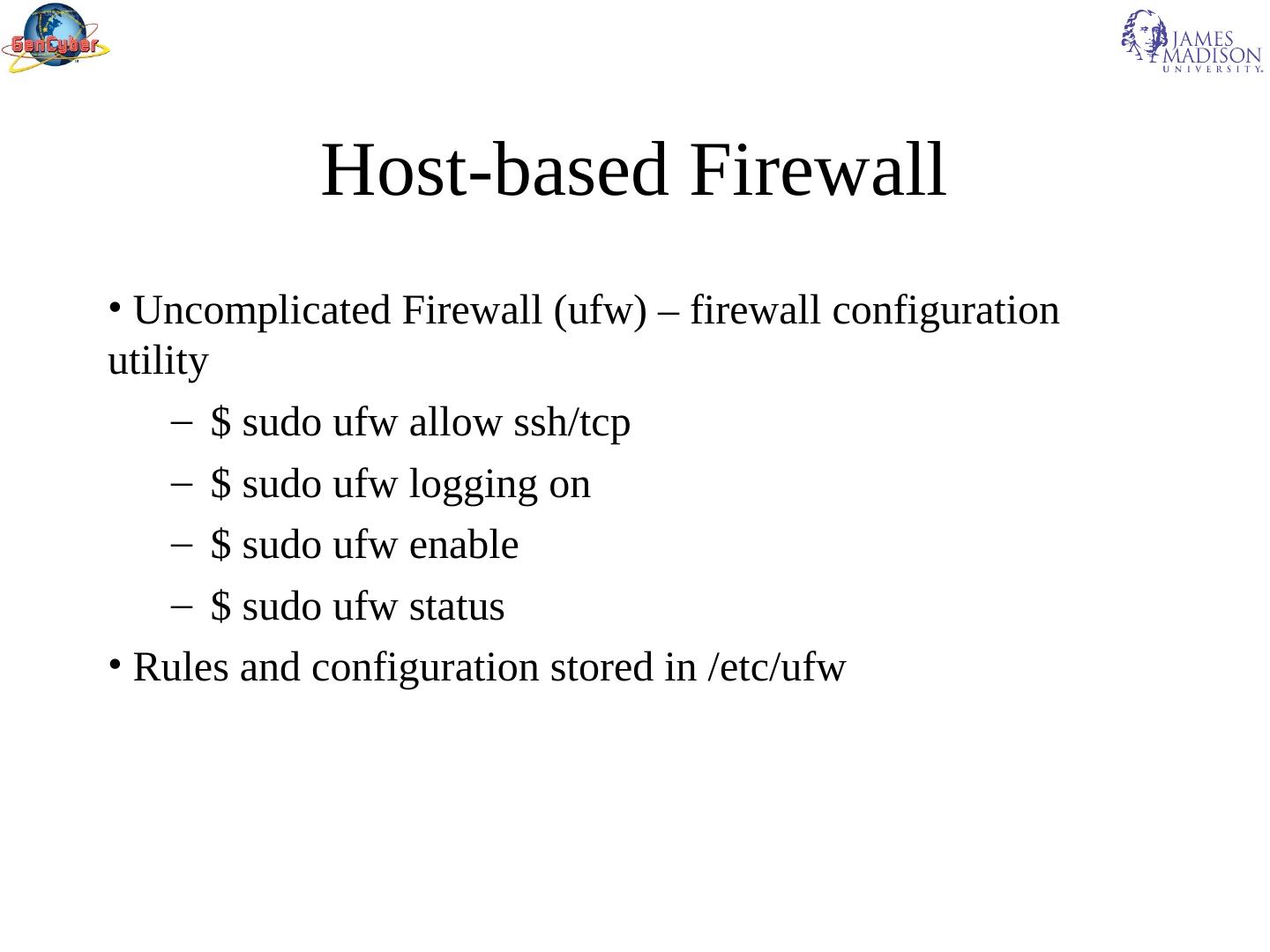 Applications. Linux. Ubuntu Security. Some common OS security topics. Manage user accounts; OS update; Enable firewall; Disable guest account; Monitor logs ...