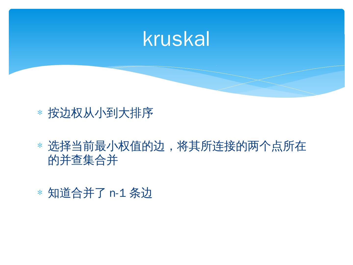 通过删掉图中的边来得到一棵树. 树:n个节点,n-1条边. 删去m-(n-1)条边. 最小生成树. 生成树. 按边权从小到大排序. 选择当前最小权值的边,将其所连接的两个点所在 ...