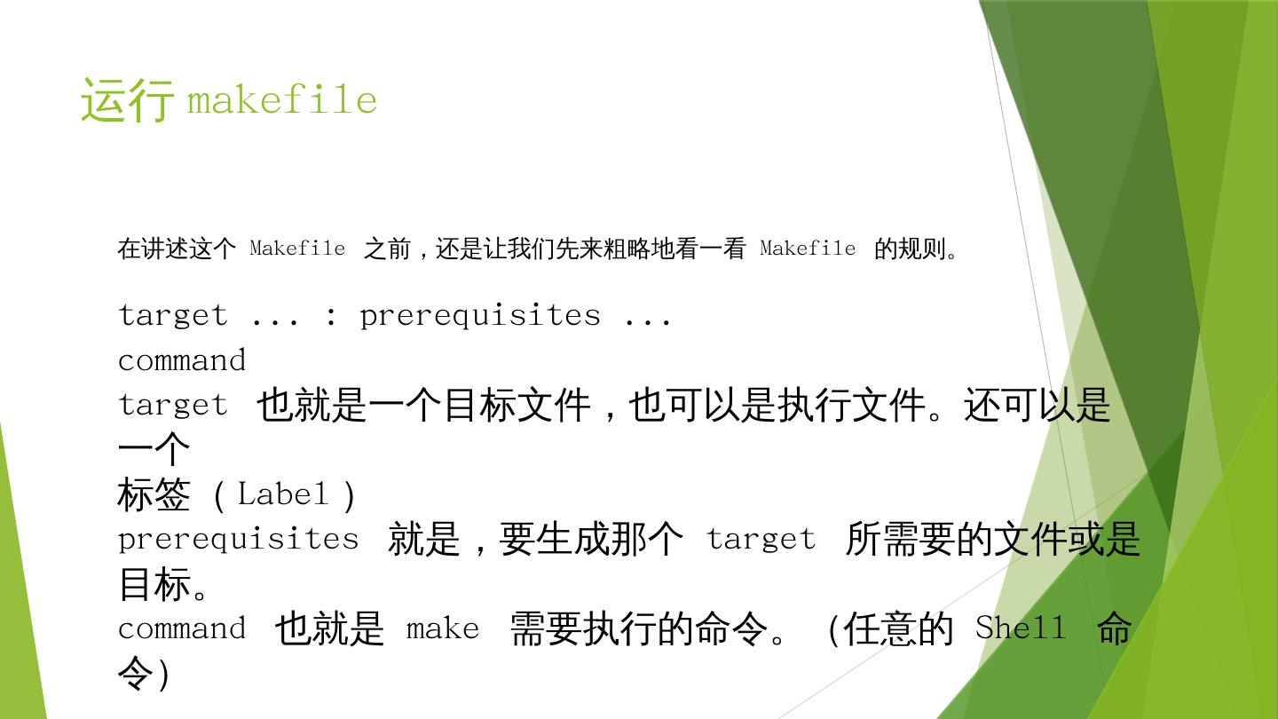 makefile关系到了整个工程的编译规则。一个工程中的源文件不计数,其按类型、功能、模块分别放在若干个目录中,makefile定义了一系列的规则来指定,哪些文件 ...