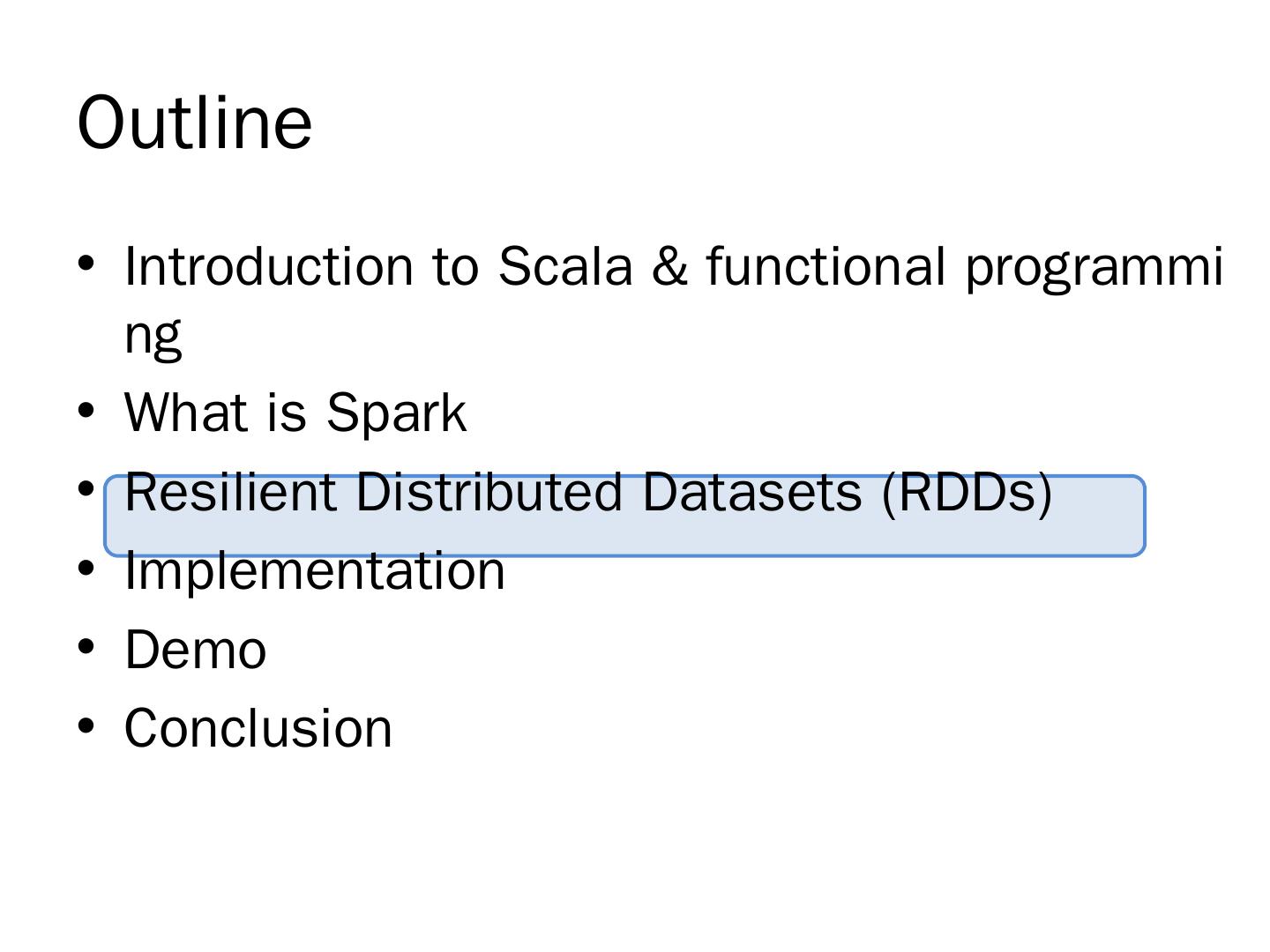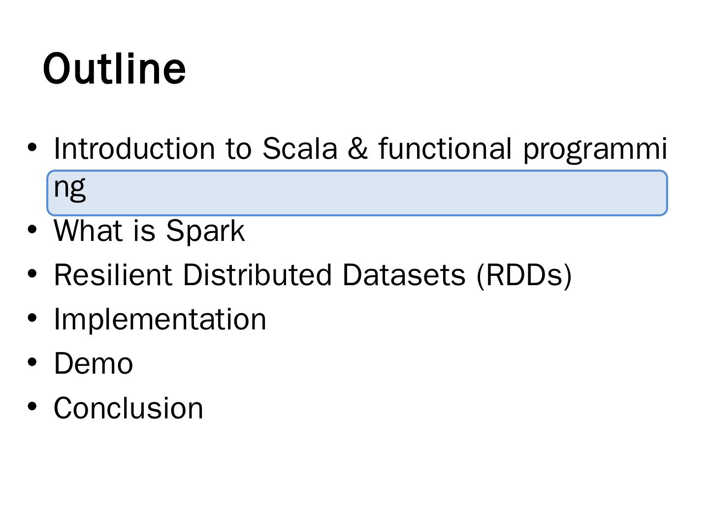 Integrate into Scala programming language. >> Allow interactive use from Scala interpreter. Background. Most current cluster programming ...