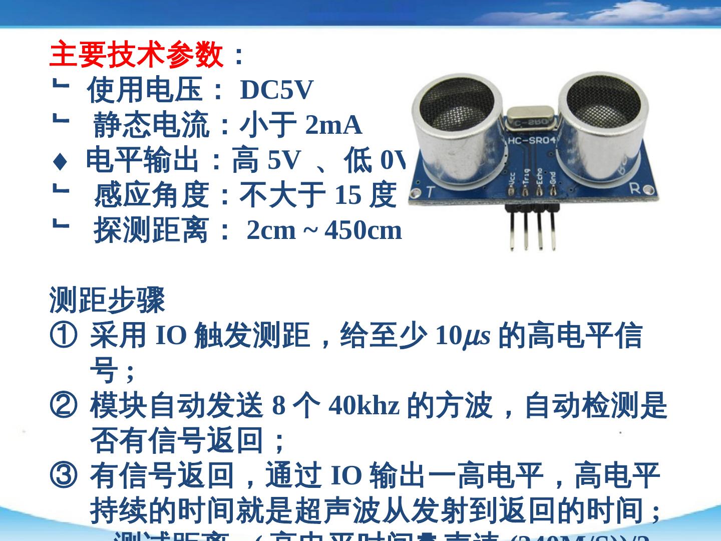 DMA LCD控制器 ... DMA:12通道DMA控制器,支持的外设包括:定时 ..... 知,测量声波在发射后遇到障碍物反射回来的时间,计算出的实际距离。