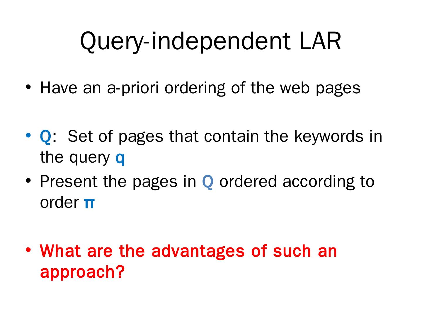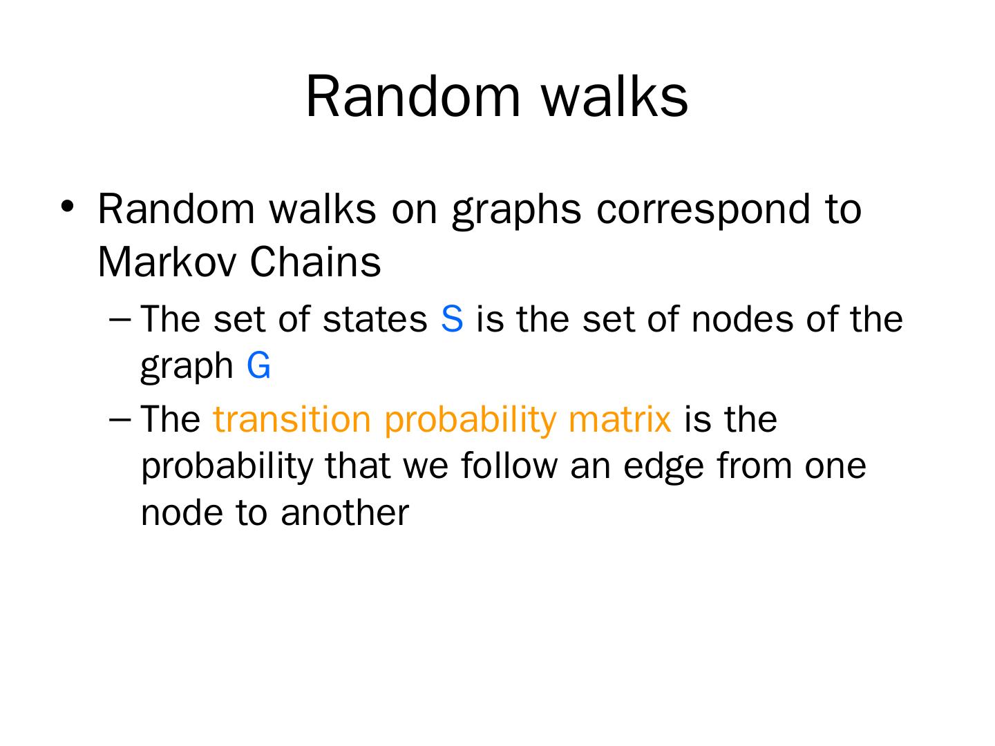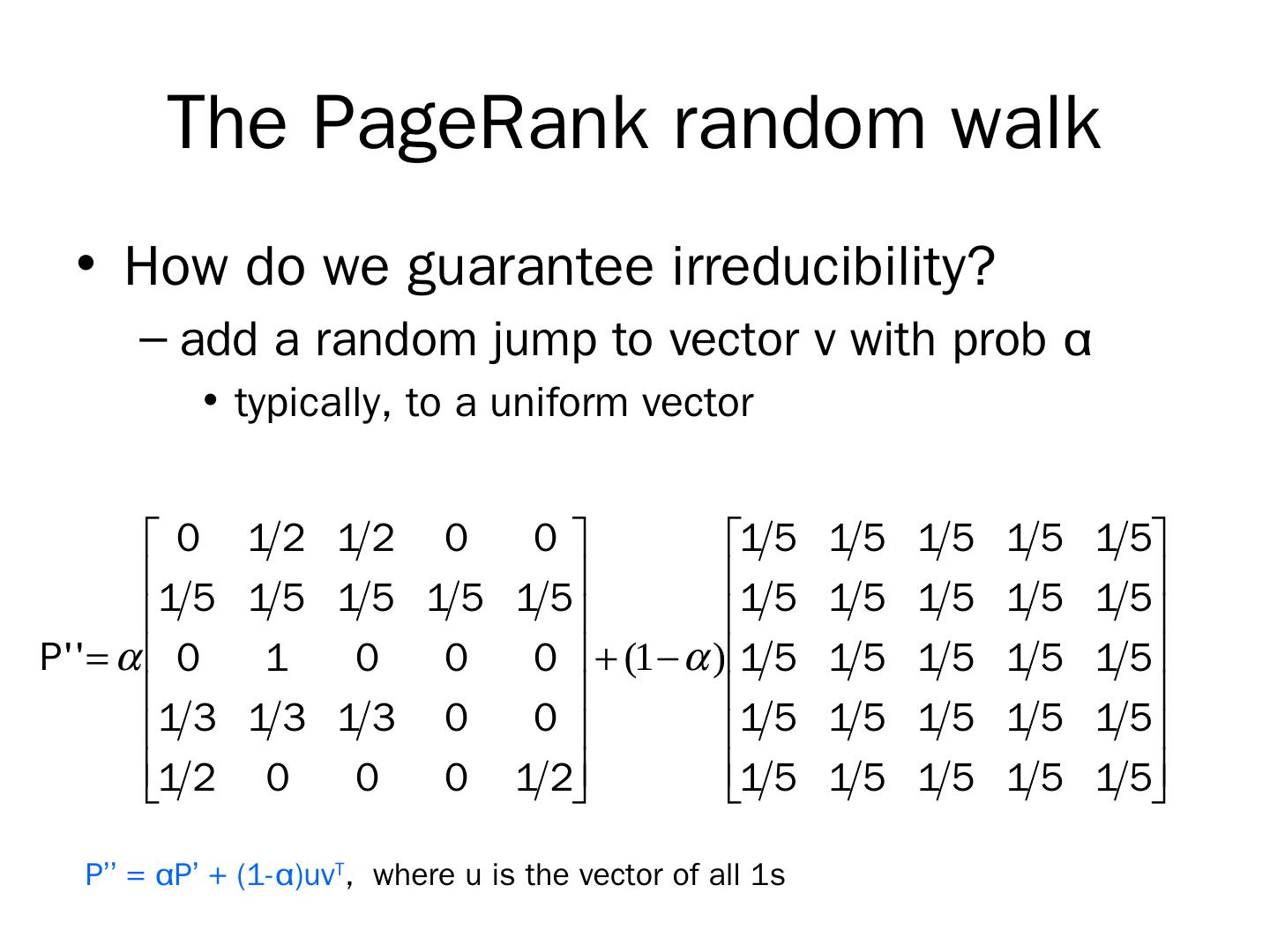 PageRank algorithm [BP98]. Good authorities should be pointed by good authorities; Random walk on the web graph. pick a page at random; with probability 1- ...