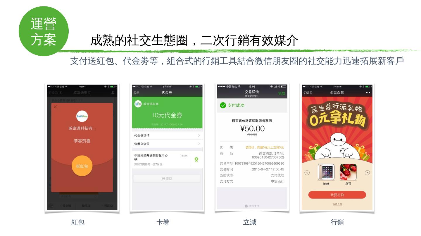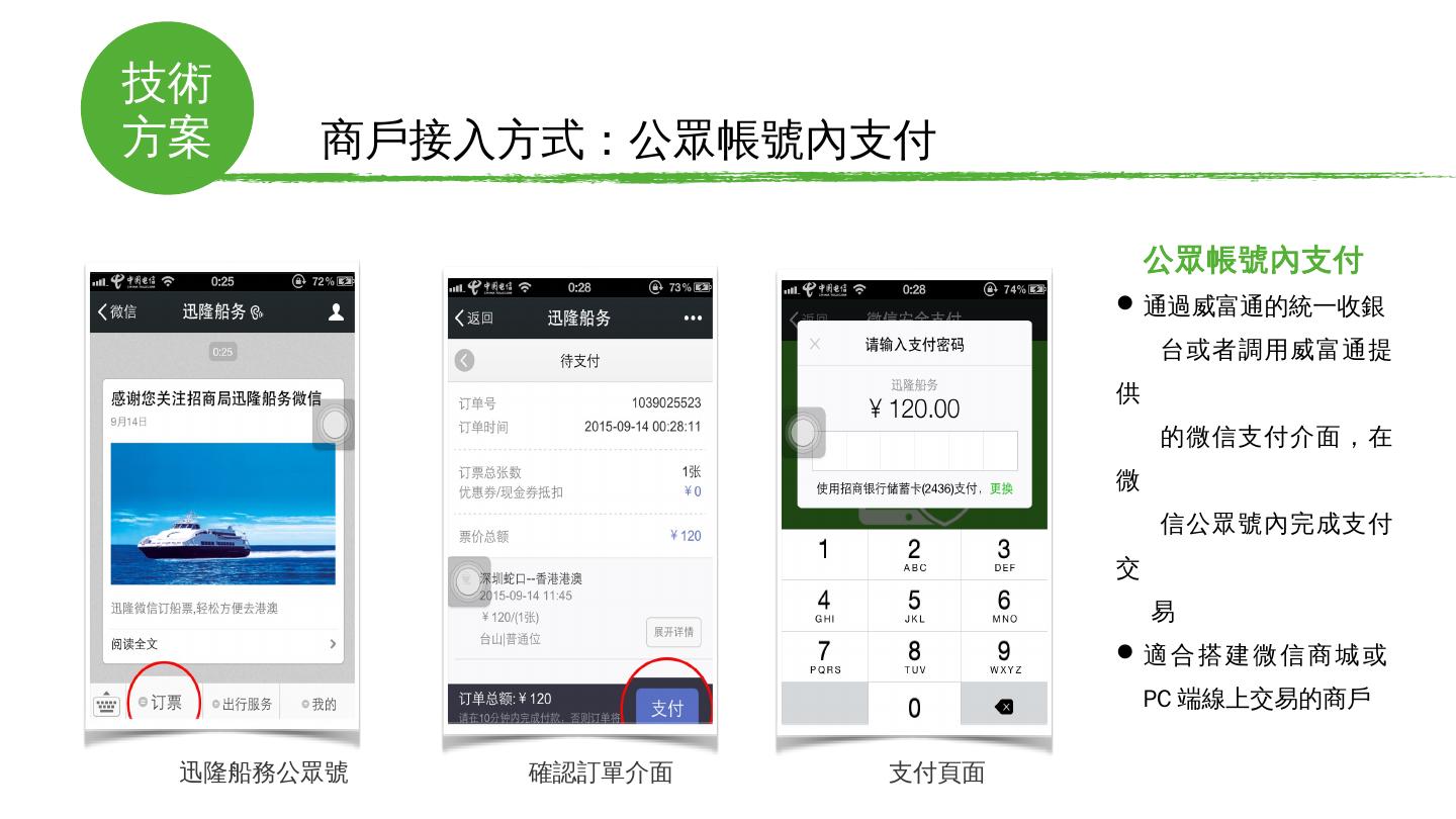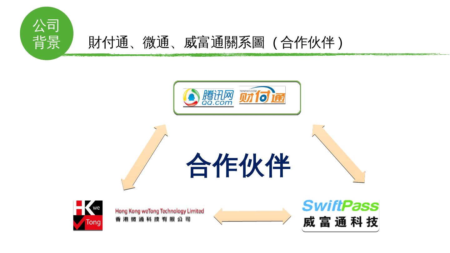 境外微信支付解決方案. 微通. 龐大的用戶導流入口. 手機微信用戶超12億. 微信日登陸用戶5.7億. 微信支付綁卡用戶4億. 項目. 背景. 微信國內外取得驚人成功——國民 ...