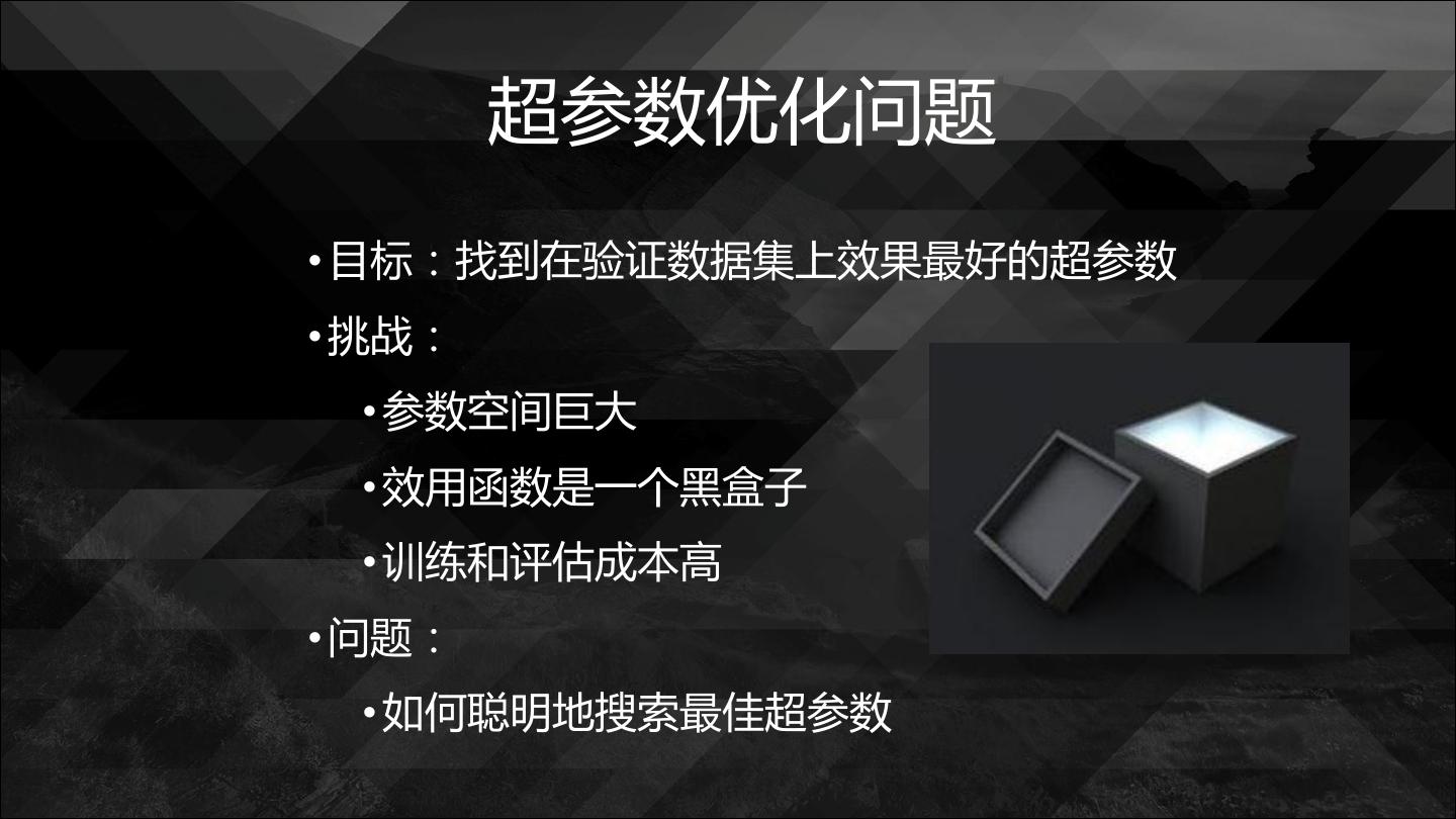 2 . 议题 1 2 3 4 PART ONE PART TWO PART THREE PART FOUR 缘起 超参数优化 自动化建模 试验和展望