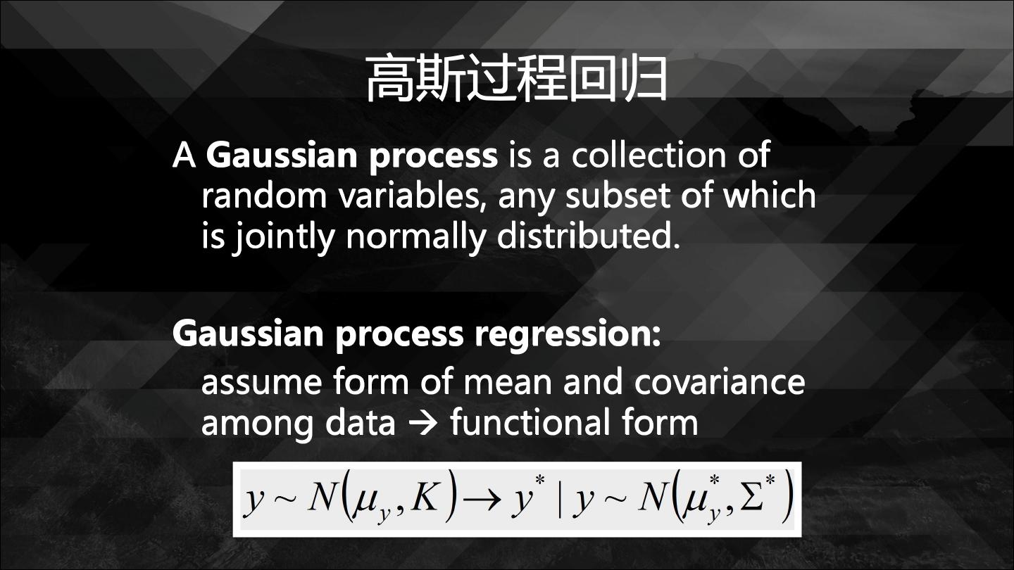 16 . 高斯过程回归 A Gaussian process is a collection of random variables, any subset of which is jointly normally distributed. Gaussian process regression: assume form of mean and covariance among data functional form