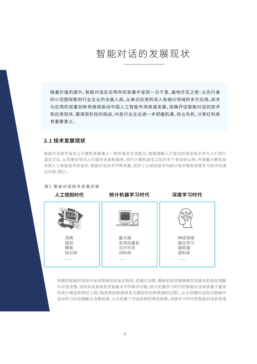 8 . 兰腊㼆霢涸〄㾝梡朐 ꥥ满⟟⧩涸䲿⼮兰腊㼆霢㖈鵛⚙䎃涸〄㾝⚥ッ梡♧傈⼪ꅽծ麑㖑䒓蔄⛓⸷➢⯓遤罏 涸㼭薴㔵䱲程ⵌ遤⚌⟱⚌涸ⰌⰆ㽷➢⽀挿䎾欽ⵌ帿Ⰶぐ絈ⴔ곭㚖涸㢴倰䎾欽կ䪮助 ♸䎾欽涸ꅾ倝㼜絩絯끮⸓⚥㕂➃䊨兰腊䋑㖞넞鸟〄㾝կⲥ烁霉⠮兰腊㼆霢涸䪮助 ㄤ䎾欽梡朐ծ⾦幡梡媯涸䮋䧶㼆ぐ遤⚌⟱⚌鵳♧姿䪾䳣劼麁ծ䫟⽑⯓劼ծⴔ❧紤ⵄⰨ 剣ꅾ銳䠑⛐կ 䪮助〄㾝梡朐 兰腊㼆霢䪮助傋㖈雮雦皾劼Ⱘ㢊⫸➃♧呋涸露鎊❜崨腊⸂腊㢿椚鍒➃⟌〄ⴀ涸露鎊䭷⟁䎇♸➃⟌鵳遤 露鎊❜✽➢罜刿㥩㖑⚹➃⟌䲿⣘⥌䜂ㄤ剪⸉կ梡➿雦皾劼霣欰⛓た涸⼱⚡㢴⚆紬⟄勻⠶ꥥ满雦皾劼䪮 助ㄤ➃䊨兰腊䪮助涸鵳姿兰腊㼆霢䪮助♶倗〄㾝絑⾎✫➢錞ⴭ䪮助ぢ絡雦䪮助ⱄⵌ帿䏞㷖⛴䪮助涸怵 ⻊⼮紩㕃կ 图2 智能对话技术发展历程 ➃䊨錞ⴭ傞➿ 絡雦劼㐼㷖⛴傞➿ 帿䏞㷖⛴傞➿ ELIZA 霒Ⱙ 剒㣐支 牟絑緸絞 錞ⴭ 佅䭯ぢꆀ劼 䔂⻊㷖⛴ 垷匣 끩㼷〳㣗 畮ⵌ畮 濼霋䎽 霒俱䎽 露俱䎽 傍劍涸兰腊㼆霢䪮助ꅷ欽皍⽀涸〄䒭錞ⴭ⽰鸑鵂霒Ⱙծ垷匣ㄤ錞ⴭ瘝瘻殜㹊梡㛇劥涸露鎊椚鍒 ♸㼆霢Ɀ瘻鵳罜㹊梡Ⱘ剣ⴲ姿兰腊宐䎂涸翜㣔⸆腊կ絡雦劼㐼㷖⛴傞➿涸兰腊㼆霢禹絡㛇✵㢕勇 涸絡雦垷㘗ㄤ暵䖄䊨玐䭷䪾⾲㨤侨䰘鲮」⚹垷㘗涸雲絅侨䰘涸鵂玐➢㣐錞垷㼆霢叻岤侨䰘⚥ 荈⸓㷖⛴㼆霢椚鍒♸Ɀ瘻錞䖒㣐㣐佖㊤✫㼆霢禹絡涸邍梡佪卓կ帿䏞㷖⛴傞➿涸兰腊㼆霢禹絡⦶ 8