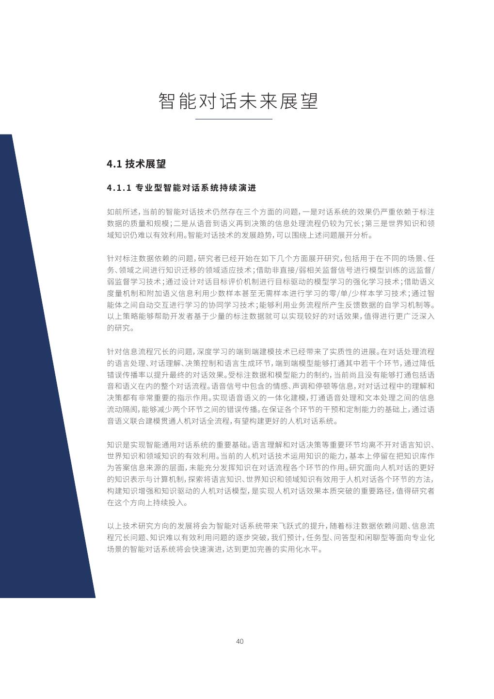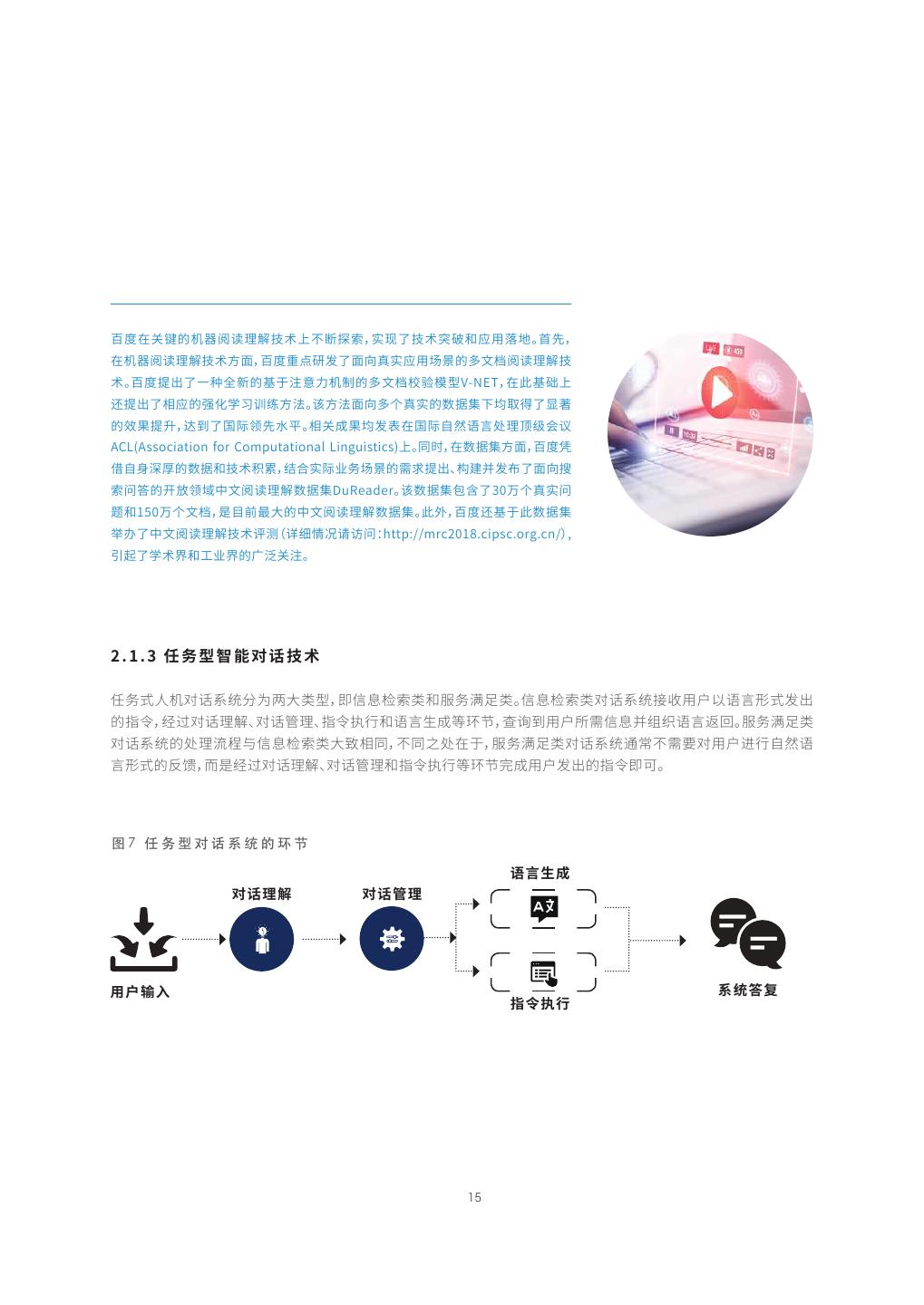 14 . 瘷㘗兰腊㼆霢䪮助 㛇✵唬程⼐ꂁ涸瘷䪮助 㛇✵唬程⼐ꂁ涸瘷䪮助鸑鵂露⛐⼐ꂁ涸倰䒭➢絛㹁涸瘷侨䰘꧋⚥䪪ⴀ剒湱⡃涸곿䎇絛ⴀ瘷呩կ鵯猫倰䒭皍 ⽀剣佪ꛏ㼆곿ㄤ瘷呩湱㼆㔿㹁涸⚌⸉㖞兞鸑䌢腊㢿㹊梡鳅㥩涸㼆霢佪卓կ 图5 检索匹配问答技术的语义匹配流程 ⼐ꂁ䖤ⴔ 涰䏞灇〄✫輑ざ㢴猫瘻殜涸〳ꂁ縨涸唬程⼐ꂁ㼆霢禹絡կⰨ⡤ 㖑霪禹絡㹊梡✫⺫䭍⦝䱗程䒸ծ露⛐程䒸㖈ⰻ涸㢴猫程䒸倰 䒭䎇䲿⣘✫抳崞涸➃䊨䎁곫劼ⵖկ霪禹絡鵮䲿⣘✫㢴猫⼐ꂁ雦 ⼐ꂁ㽻 皾瘻殜⣘鷥䭊⢪欽⺫䭍㛇✵㶶暵䖄涸湱⡃䏞⼐ꂁ瘻殜ծ㛇✵ %//涸露⛐湱⡃䏞⼐ꂁ瘻殜⟄⿺輑ざ㶶ㄤ%//瘝㢴絶䏞暵 䖄涸湱⡃䏞⼐ꂁ瘻殜կ暵ⵆ㖑露⛐程䒸ㄤ露⛐⼐ꂁ㖲歋⚁꡶涸 邍爙㽻 邍爙㽻 露⛐湱⡃䏞⼐ꂁ牟絑緸絞䲿⣘佅䭯Ⱘ⡤霼撑涸露⛐⼐ #08$//3// #08$//3// ꂁ畎蒜涸䲽鶣կ〥㢪霪禹絡鵮佅䭯ꂁ縨⻊ծ䳃⟝⻊涸霃雦垷䒭 剣⸔✵䒓〄罏䘯鸟匬䒊ㄤ㹁ⵖ鷓欽✵暵㹁⚌⸉㖞兞涸瘷禹 鳕Ⰶ㽻 鳕Ⰶ㽻 絡կ湡霪禹絡䊺絑㖈㢴⚡ꅾ銳⚌⸉㖞兞⚥蜦䖤䧭⸆䎾欽կ 㛇✵ꢓ靀椚鍒涸瘷䪮助 图6 基于阅读理解的对话技术流程框架 㛇✵ꢓ靀椚鍒%PDVNFOU 6OEFSTUBOEJOH%6涸瘷 곿 䪮助傋㖈㔵絗絛㹁眜畎俒咓ⰻ㺂㸤䧭瘷⟣⸉կⰨ⡤罜 곿椚鍒 鎊霪䪮助ぢ絛㹁涸♧眜䧴蕯䎁眜俒咓㼆✵欽䨪㼆霢 ⚥䲿ⴀ涸♸俒咓湱Ⱒ涸곿絛ⴀ姻烁涸㔐瘷կ霪䪮助⚺ 銳鸑鵂곿椚鍒ծ媯衅䱗䎸ㄤ劼㐼ꢓ靀椚鍒瘝Ⳝ⚡⚺銳 䪮助崨玐㹊梡կ 媯衅䱗䎸 欽䨪 㖈 㛇✵ꢓ靀椚鍒涸瘷䪮助⚥雮劼㐼腊㢿ꢓ靀荈搬露 鎊俒劥搬た㔐瘷湱Ⱒ곿涸劼㐼ꢓ靀椚鍒僽呍䗱⛲僽 瘷呩 劼㐼ꢓ靀椚鍒 䲿⼮㛇✵ꢓ靀椚鍒涸㼆霢佪卓涸Ⱒꝶկ 14
