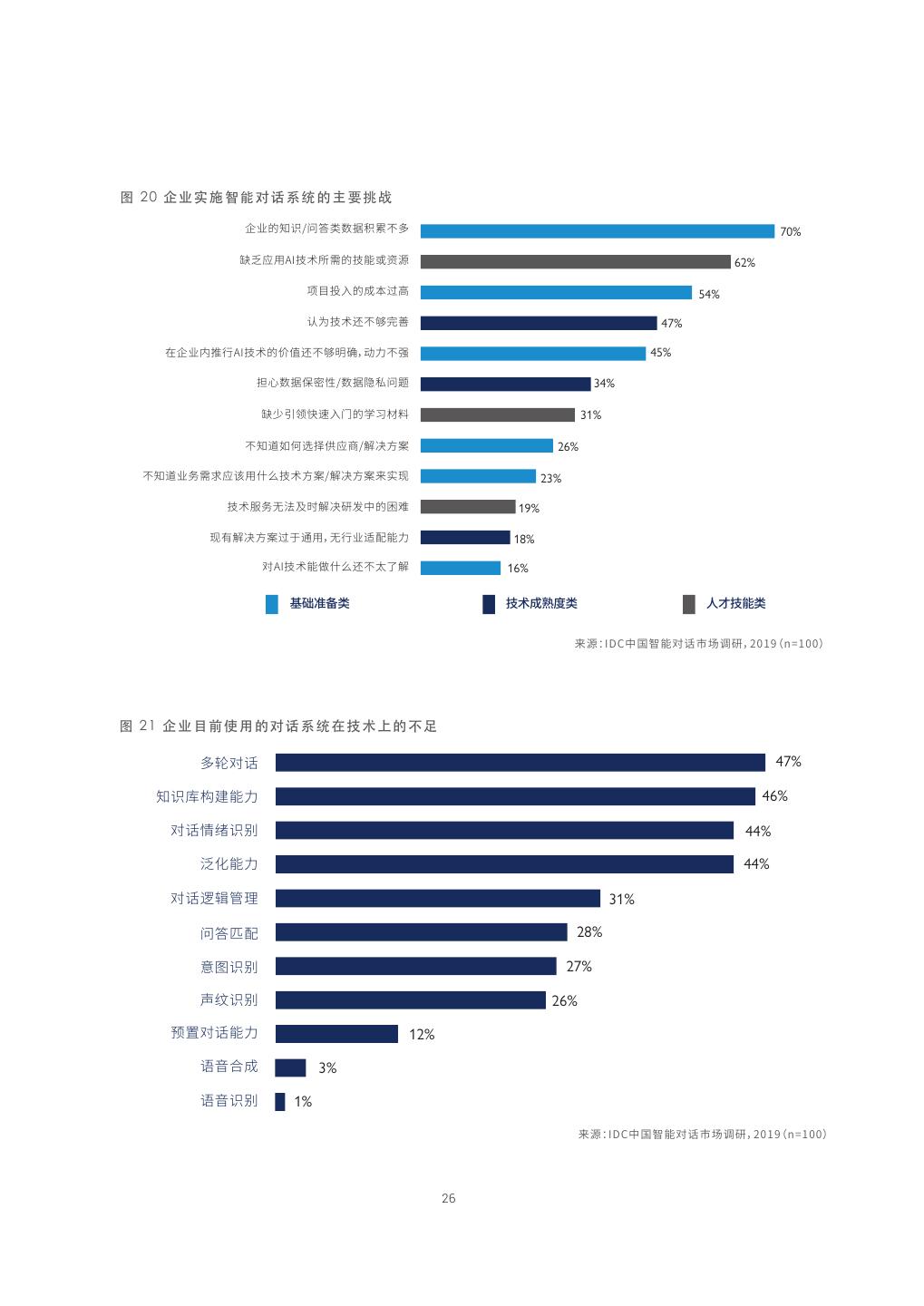 26 .图 20 企 业 实 施 智 能 对 话 系 统 的 主 要 挑 战 ⟱⚌涸濼霋瘷碫侨䰘獤稡♶㢴 70% 緃⛘䎾欽"*䪮助䨾涸䪮腊䧴餴彂 62% 고湡䫏Ⰶ涸䧭劥鵂넞 54% 雩⚹䪮助鵮♶㢿㸤㊤ 47% 㖈⟱⚌ⰻ䲀遤"*䪮助涸⟟⧩鵮♶㢿僈烁⸓⸂♶䔂 45% 䬐䗱侨䰘⥂㺙䚍侨䰘ꥧ猙곿 34% 緃㼱䒸곭䘯鸟Ⰶ꡶涸㷖⛴勞俱 31% ♶濼麤㥵⡦鷥䭊⣘䎾㉁鍒Ɀ倰呩 26% ♶濼麤⚌⸉宠䎾霪欽➊⛎䪮助倰呩鍒Ɀ倰呩勻㹊梡 23% 䪮助剪⸉偽岁⿺傞鍒Ɀ灇〄⚥涸㔮ꦼ 19% 梡剣鍒Ɀ倰呩鵂✵鸑欽偽遤⚌鷓ꂁ腊⸂ 18% 㼆"*䪮助腊⨞➊⛎鵮♶㣖✫鍒 16% 㛇炄ⲥ㢊碫 䪮助䧭擿䏞碫 ➃䩞䪮腊碫 勻彂*%$⚥㕂兰腊㼆霢䋑㖞靈灇O 图 21 企 业 目 前 使 用 的 对 话 系 统 在 技 术 上 的不足 㢴鲰㼆霢 47% 濼霋䎽匬䒊腊⸂ 46% 㼆霢䞔絬霋ⵆ 44% 岌⻊腊⸂ 44% 㼆霢鹤鳓盗椚 31% 瘷⼐ꂁ 28% 䠑㕃霋ⵆ 27% 㡮紻霋ⵆ 26% 곫縨㼆霢腊⸂ 12% 露갉ざ䧭 3% 露갉霋ⵆ 1% 勻彂*%$⚥㕂兰腊㼆霢䋑㖞靈灇O 26