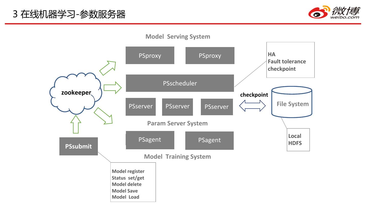 14 . u Model Serving System PSproxy PSproxy HA Fault tolerance checkpoint PSscheduler zookeeper checkpoint PSserver PSserver PSserver File System Param Server System Local PSagent PSagent HDFS PSsubmit Model Training System Model register Status set/get Model delete Model Save Model Load