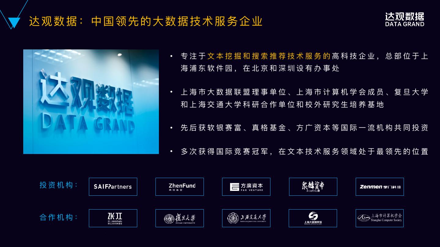 3 .1 THE FIRST 达观数据 专 业 的 ⼤大 数 据 技 术 服 务 企 业
