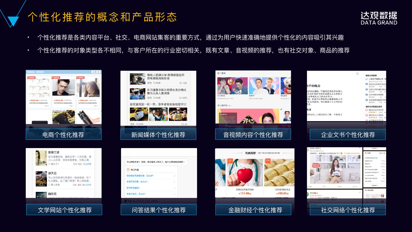 1 .达观数据 个性化推荐引擎建设⽅方案 中国领先的⽂文本搜索推荐技术服务商