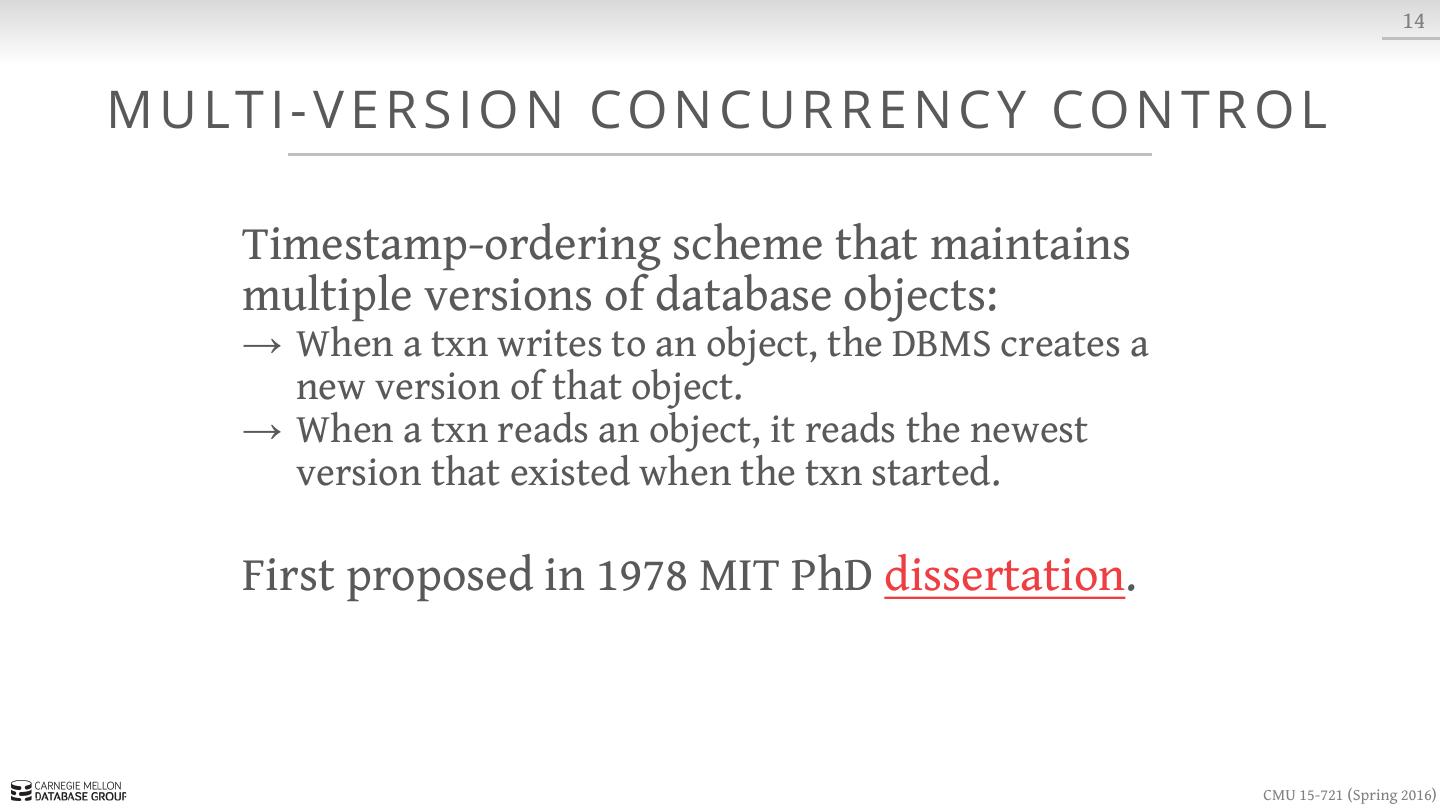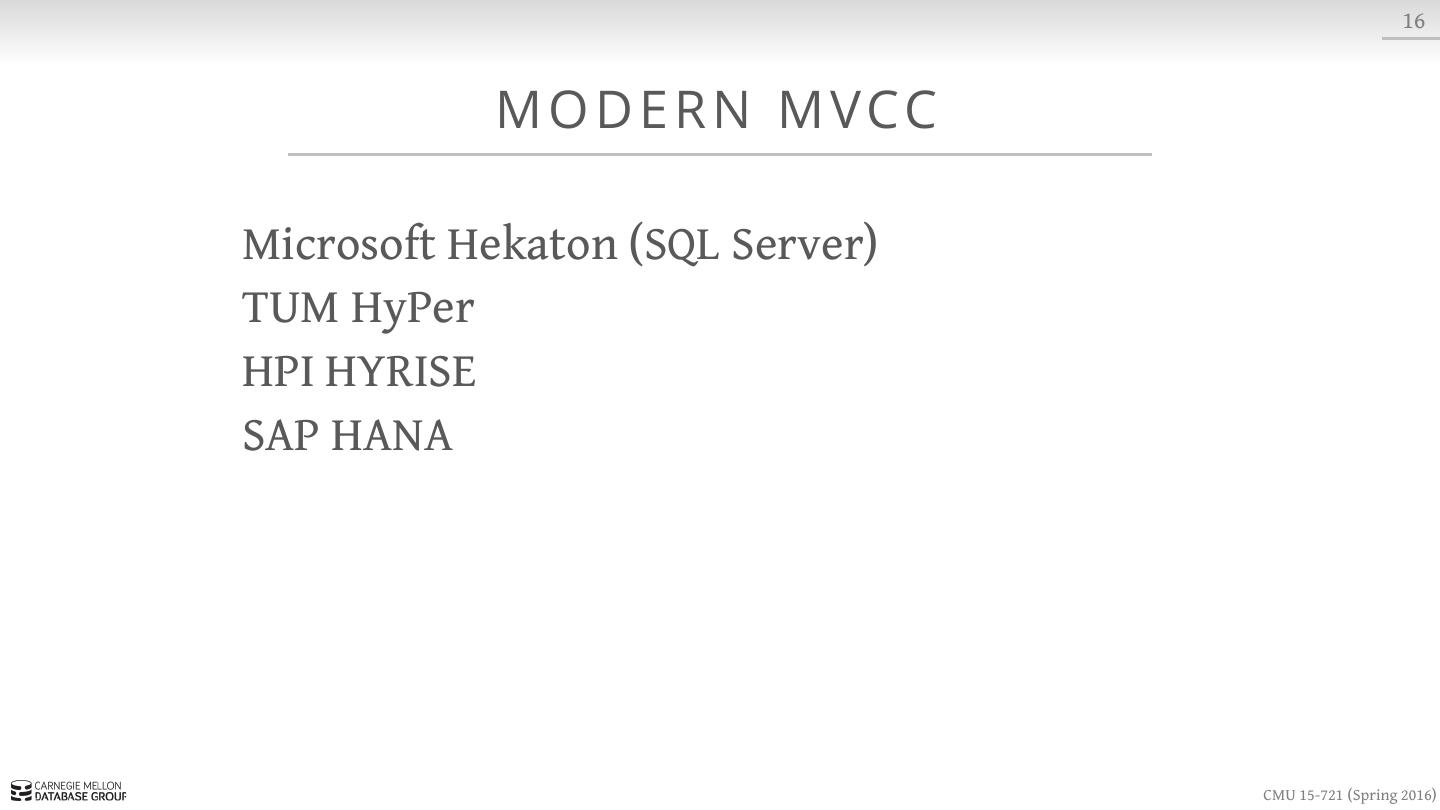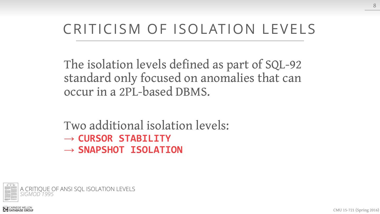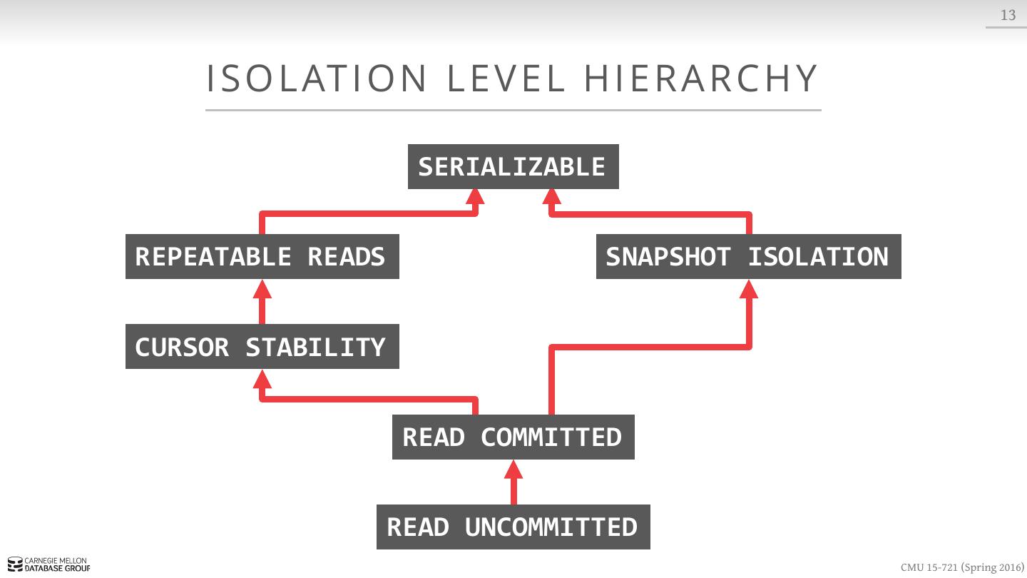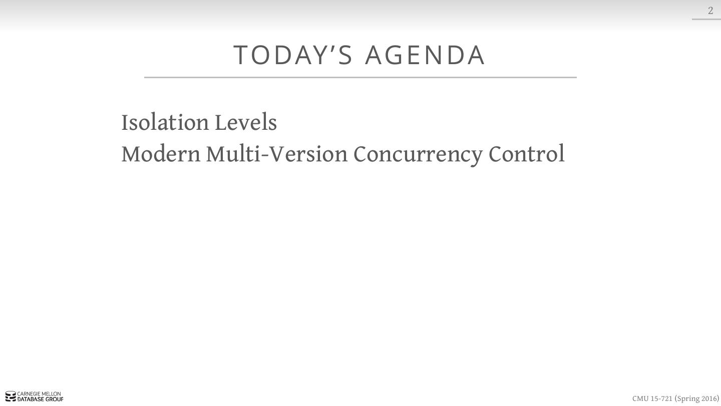 2 . 2 TO DAY ’ S AG E N DA Isolation Levels Modern Multi-Version Concurrency Control CMU 15-721 (Spring 2016)