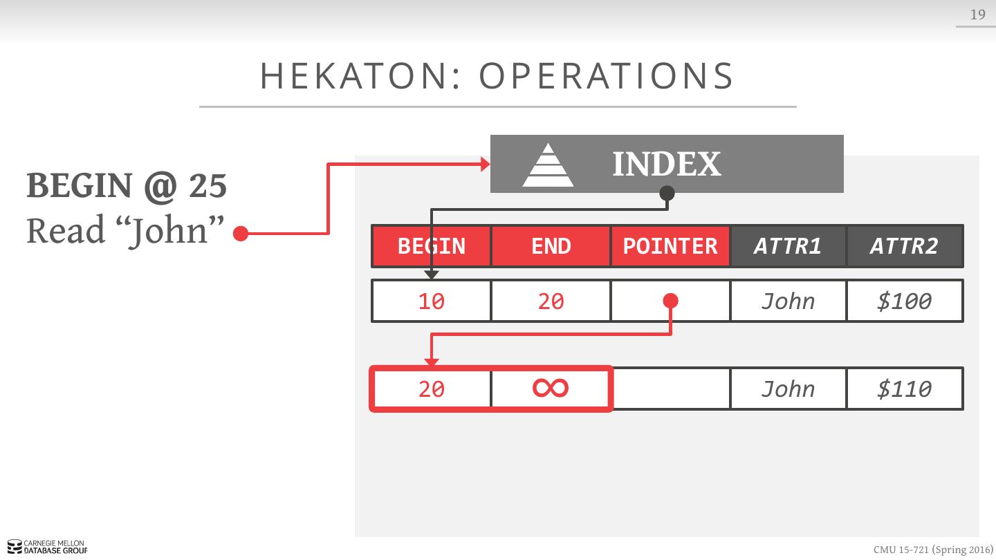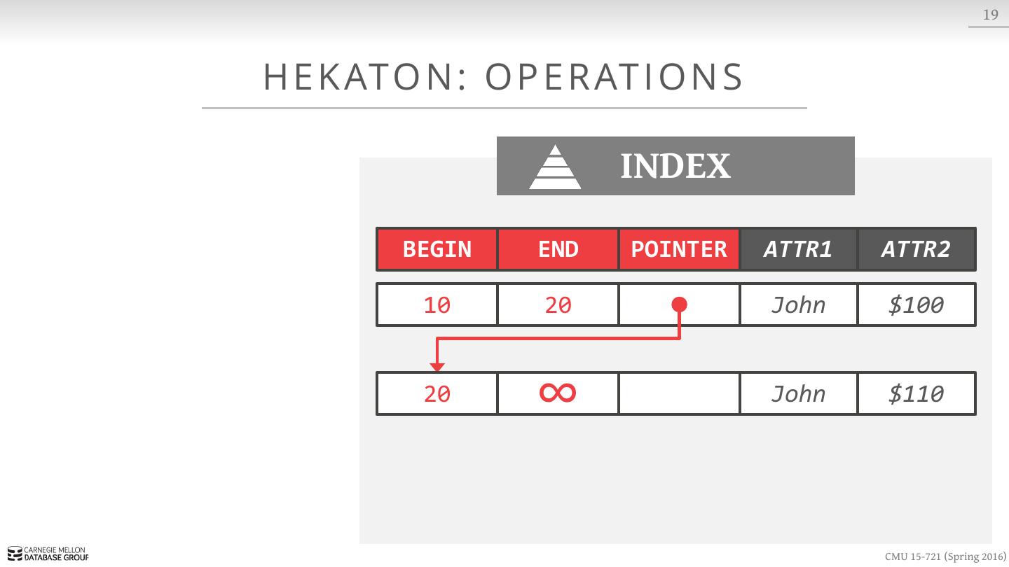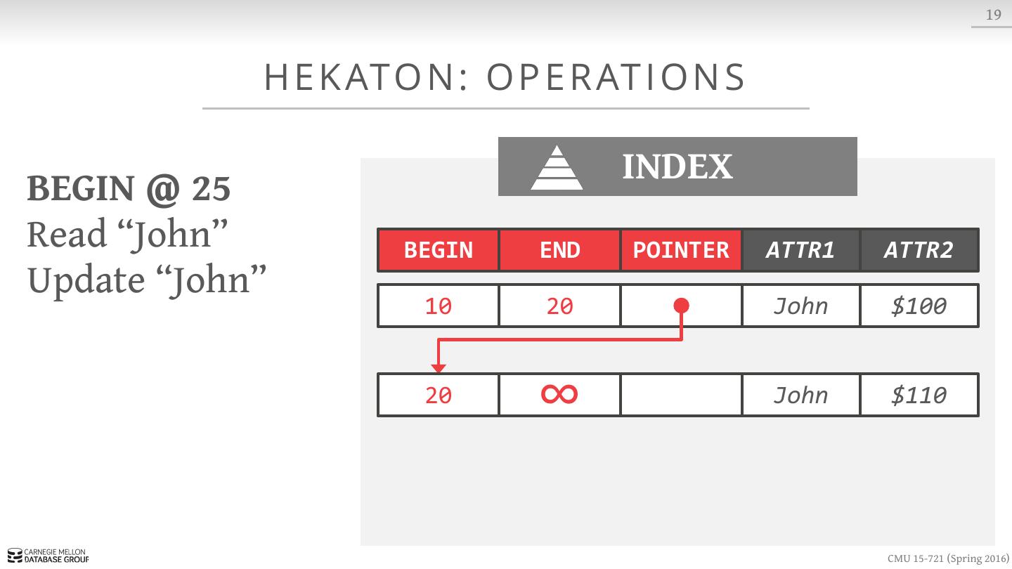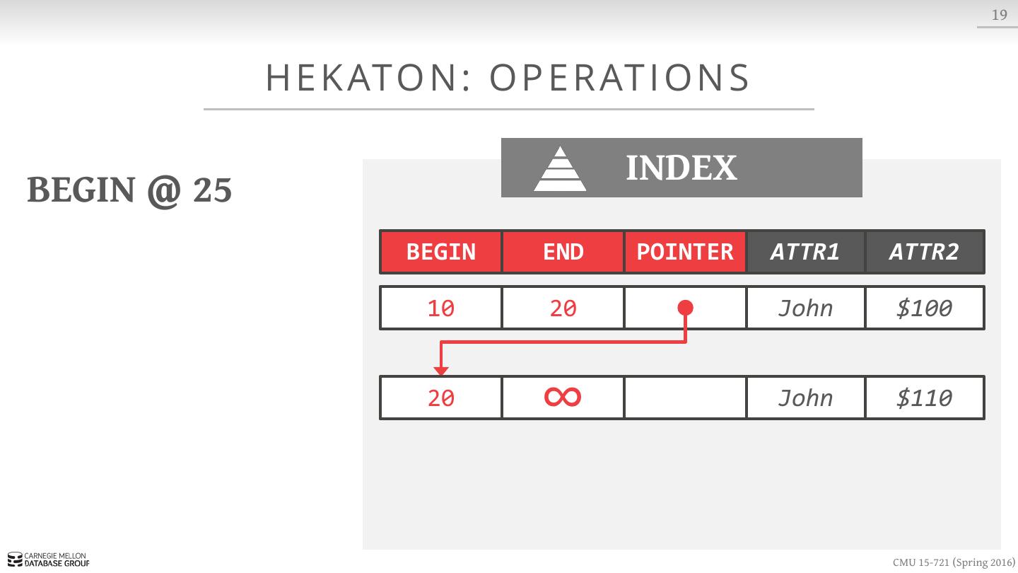 18 . 10 LO S T U P DAT E A N O M A LY Txn #1 Txn #2’s write to A will be lost even COMMIT BEGIN • • • though it commits READ(A) WRITE(A) after Txn #1. Txn #2 A cursor lock on A would prevent this problem (but not COMMIT BEGIN • • • • • • • • always). WRITE(A) CMU 15-721 (Spring 2016)