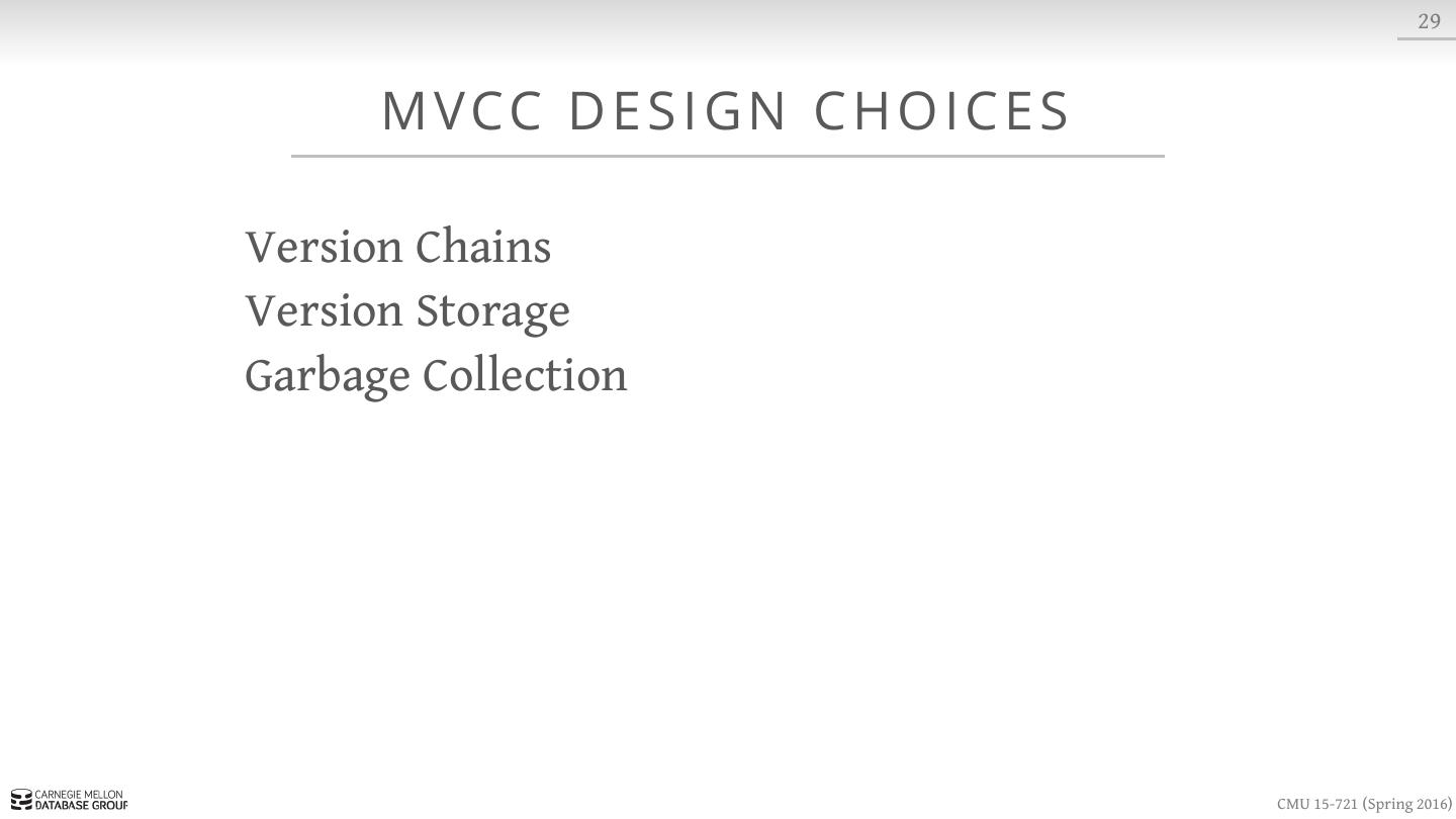 28 . 12 W R I T E S K E W A N O M A LY Txn #1 Change white marbles to black. Txn #2 Change black marbles to white. CMU 15-721 (Spring 2016)