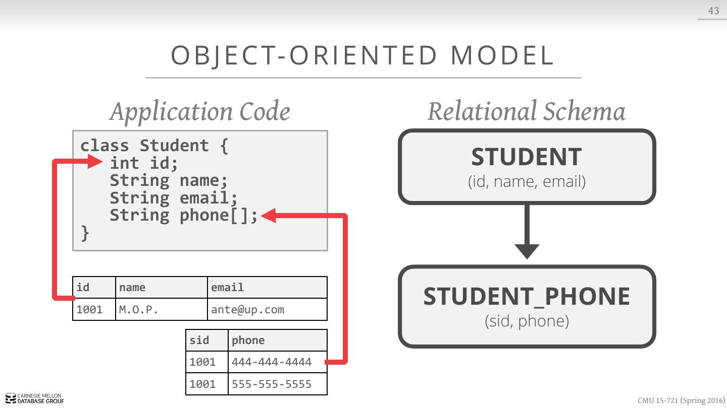 15 . 11 OFFICE HOURS Immediately after class in my office: → Mon/Wed: 1:30 – 2:30 → Gates-Hillman Center 9019 Things that we can talk about: → Issues on implementing projects → Paper clarifications/discussion → Relationship advice CMU 15-721 (Spring 2016)