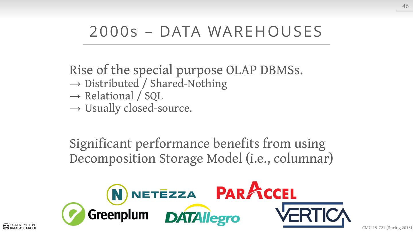 2 . 2 W H Y YO U S H O U L D TA K E T H I S CO U R S E CMU 15-721 (Spring 2016)