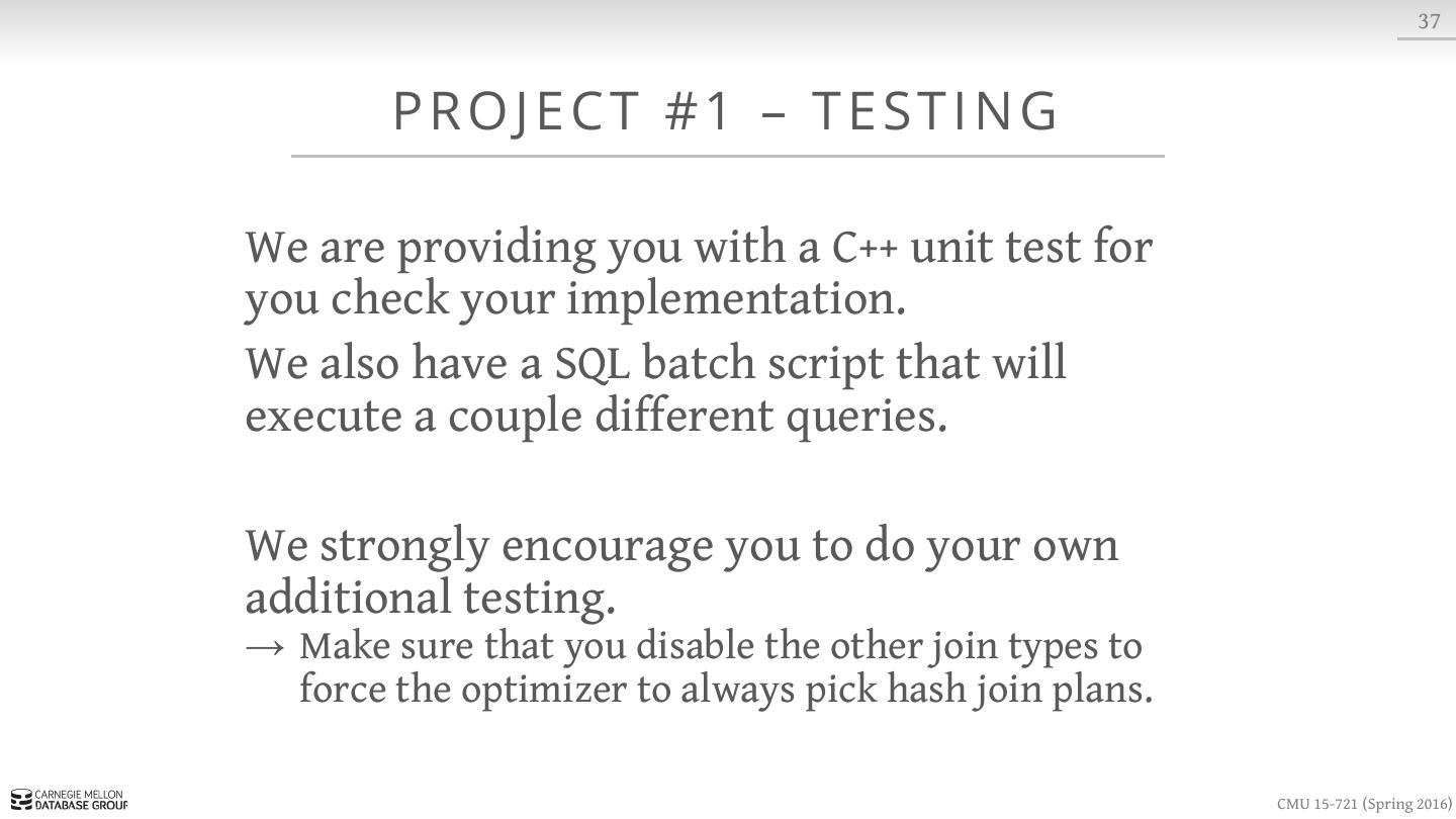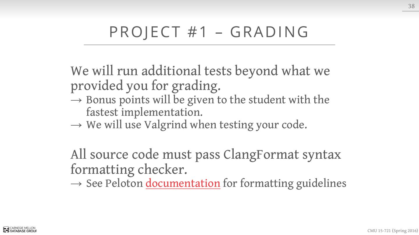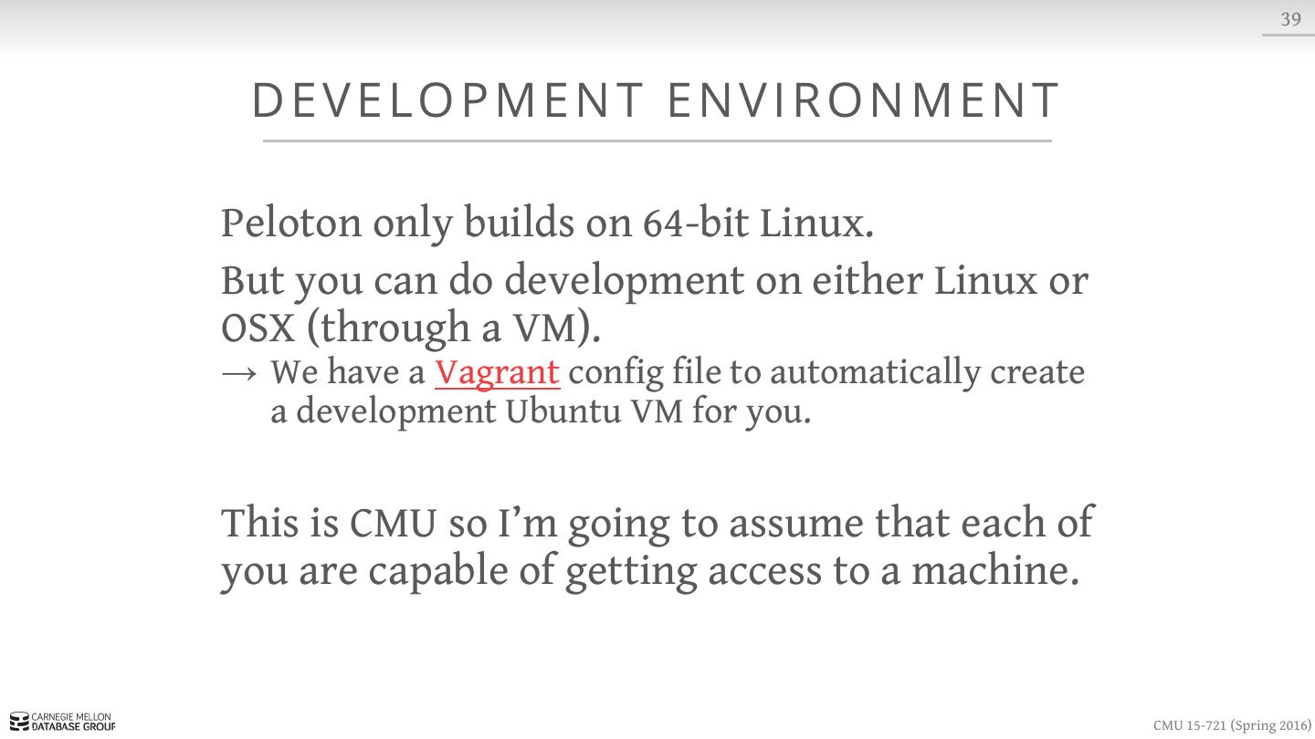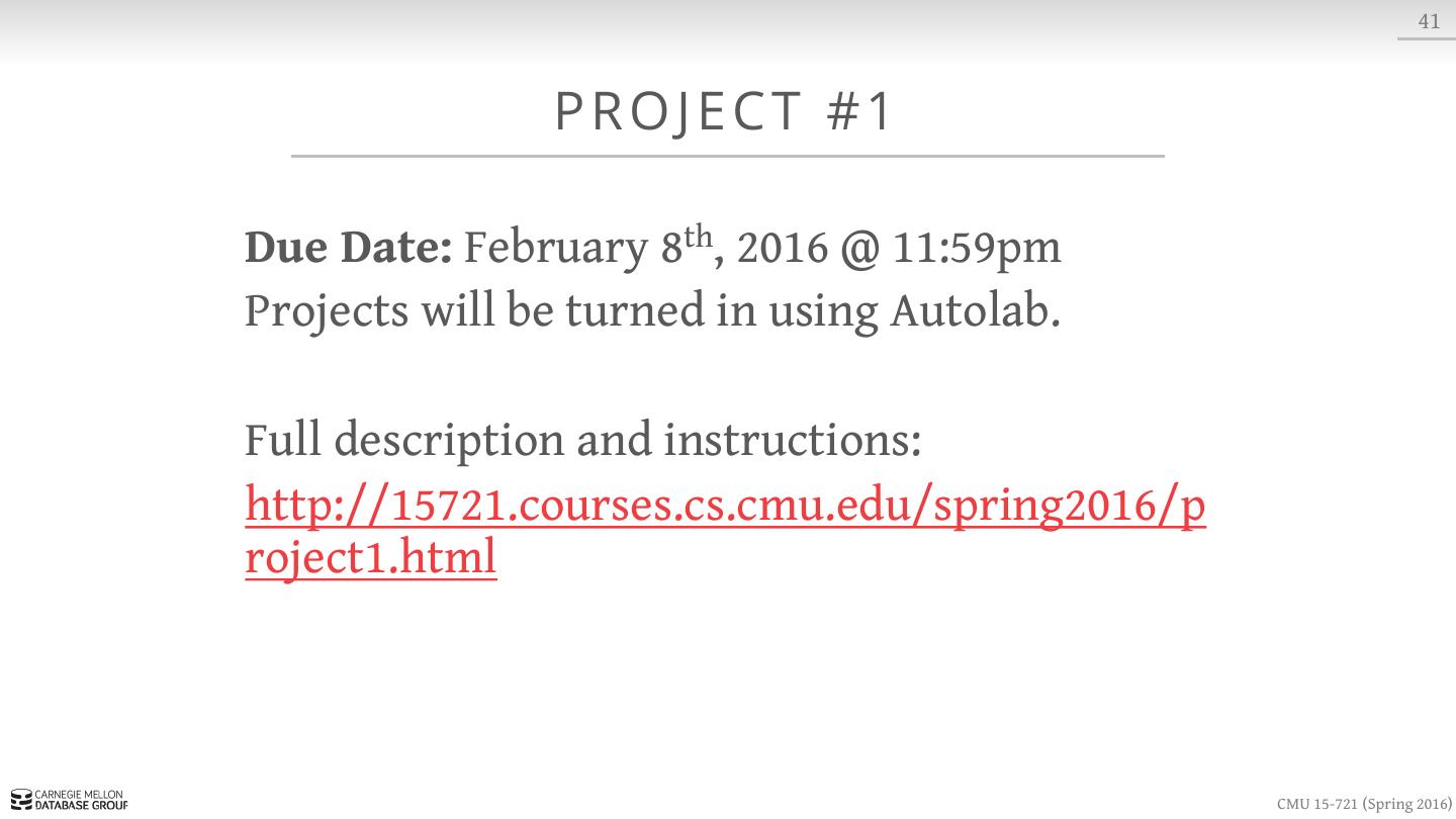 2 . 2 TO DAY ’ S AG E N DA Background In-Memory DBMS Architectures Historical Systems Peloton Overview Project #1 CMU 15-721 (Spring 2016)