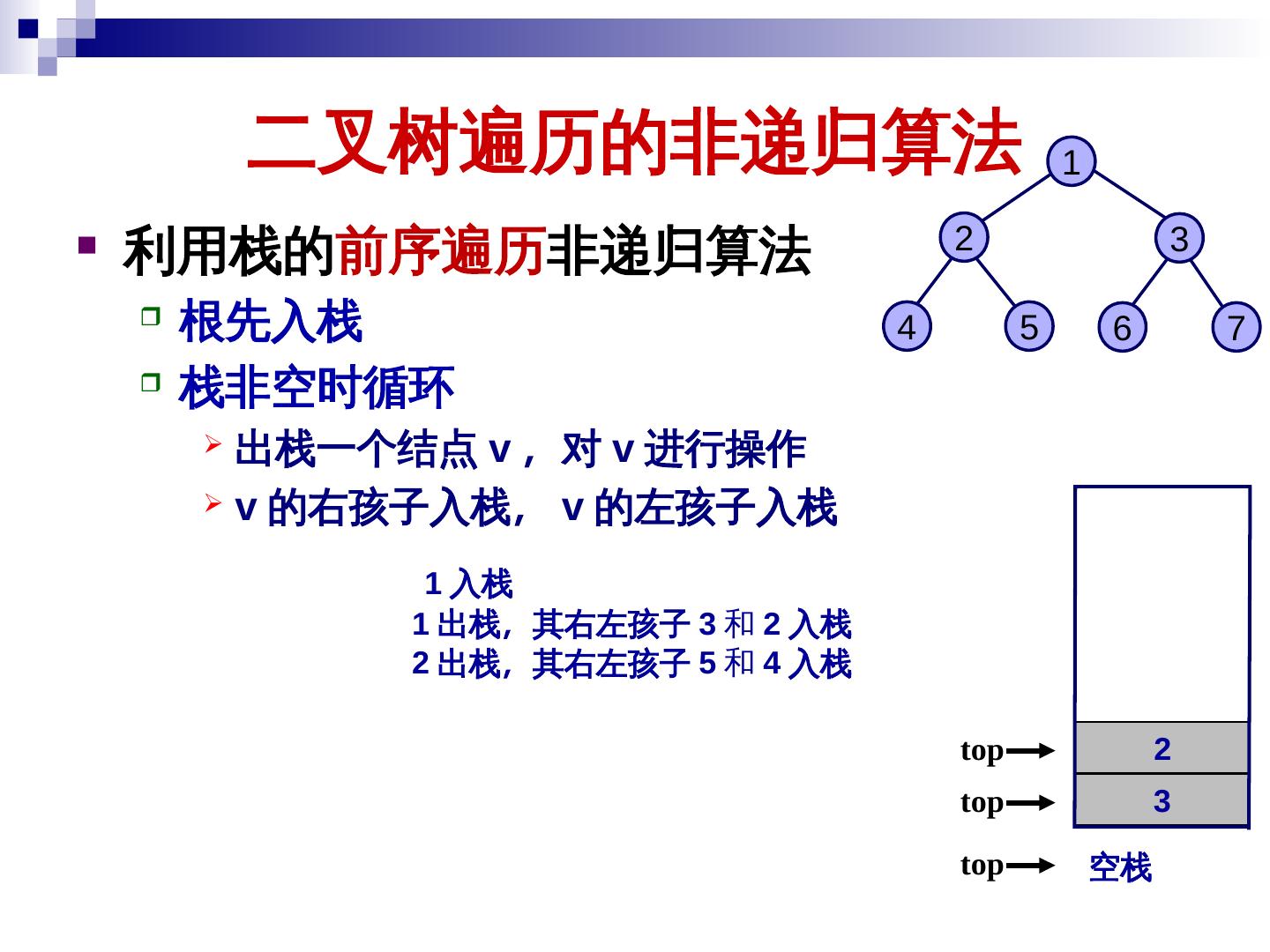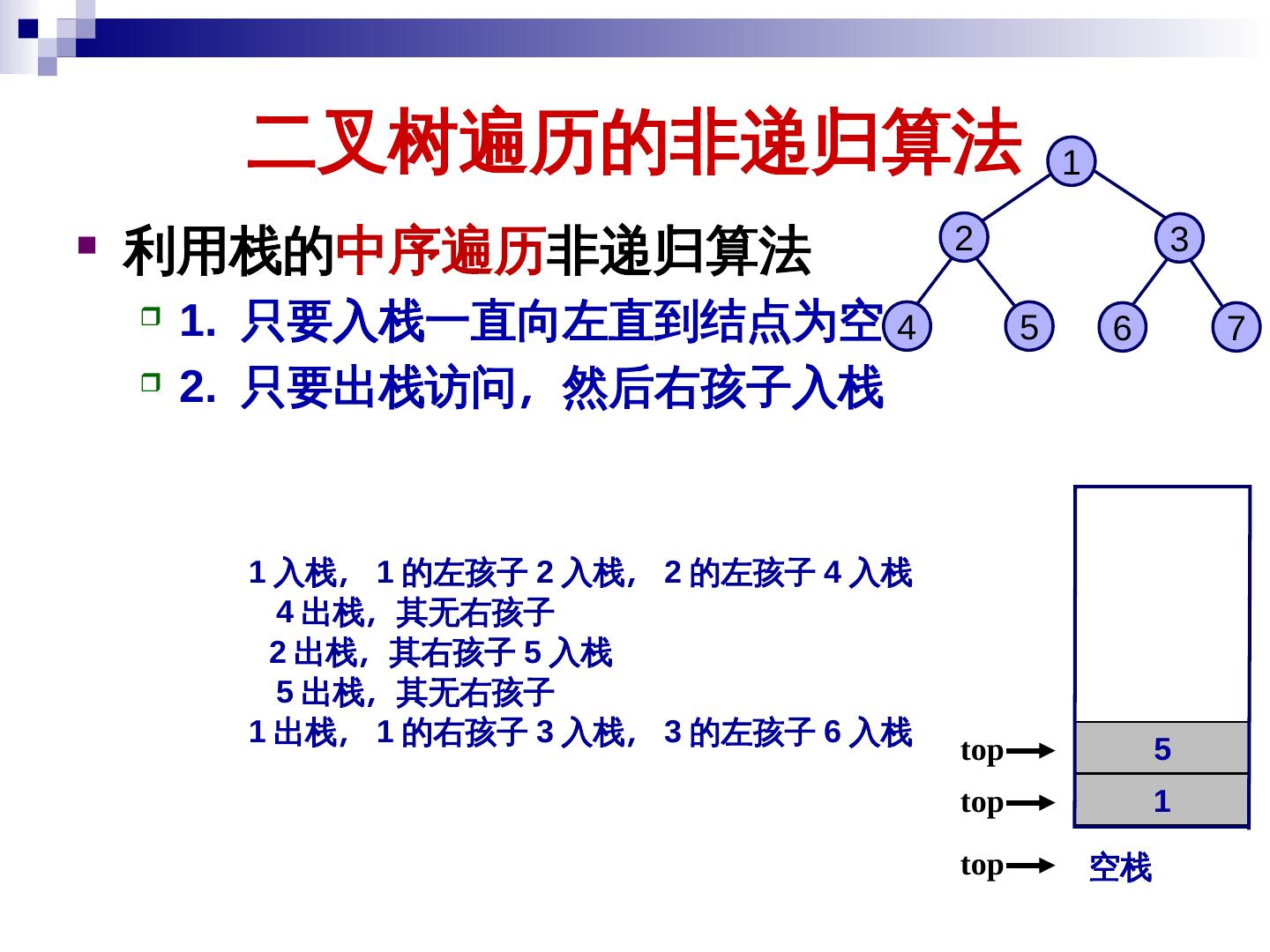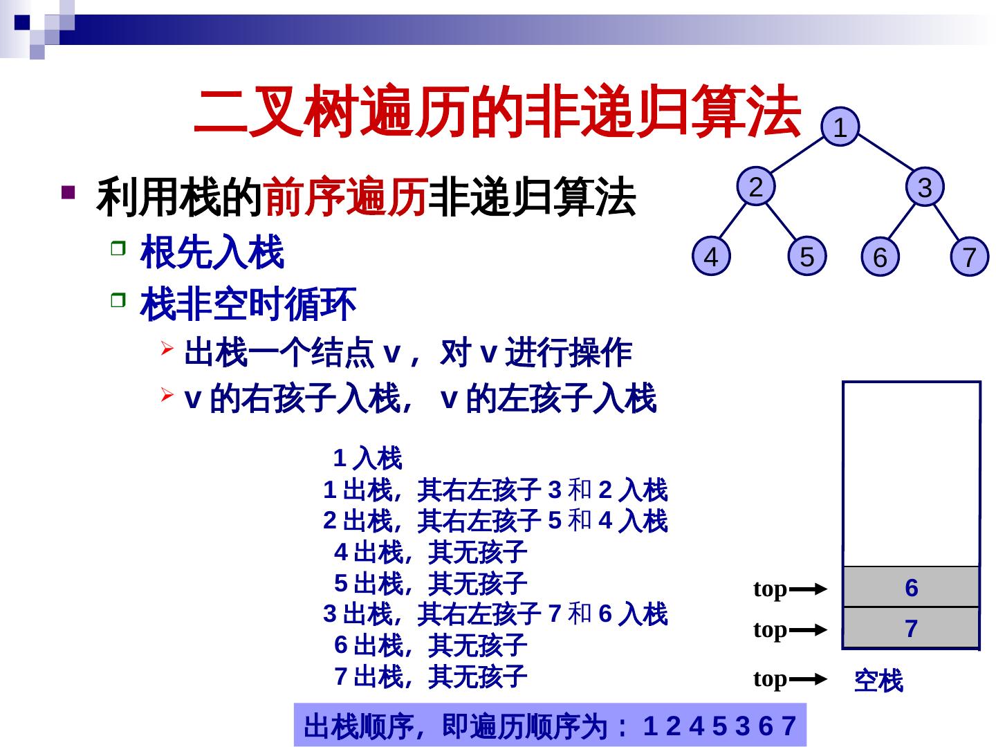 23 . 二叉树的遍历及其应用 三种遍历路线相同,其中每个集合也是一结果不同 前序遍历: – + a × b – c d / e f 中序遍历: a + b × c – d – e / f - 后序遍历: a b c d – × + e f / – + / a × e f b - c d 23