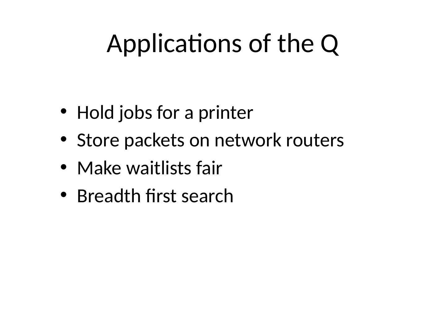 25 .Applications of the Q Hold jobs for a printer Store packets on network routers Make waitlists fair Breadth first search