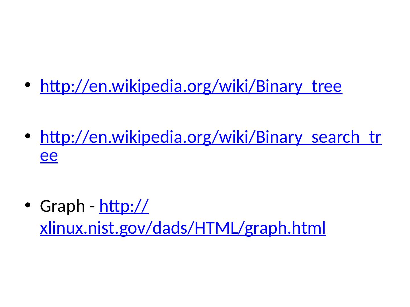 2 .http://en.wikipedia.org/wiki/Binary_tree http://en.wikipedia.org/wiki/Binary_search_tree Graph - http:// xlinux.nist.gov/dads/HTML/graph.html