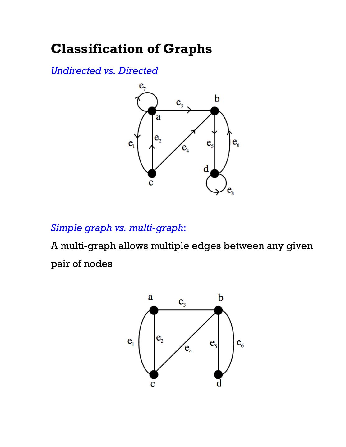 4 .Classification of Graphs Undirected vs. Directed Simple graph vs. multi-graph: A multi-graph allows multiple edges between any given pair of nodes