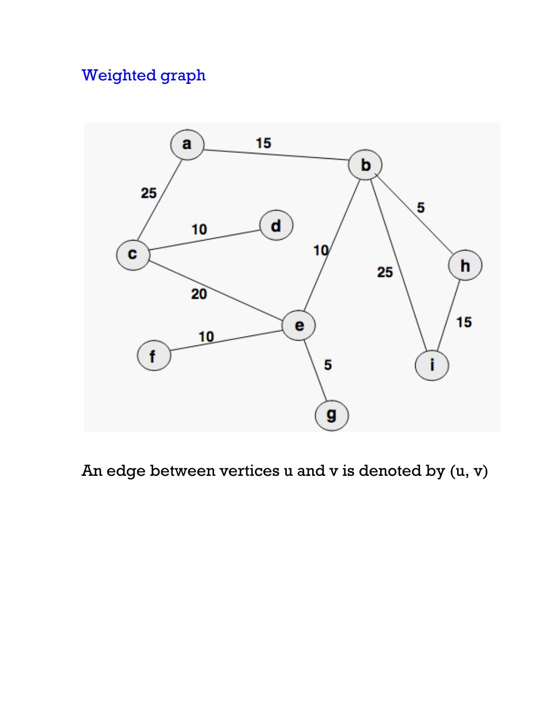 5 .Weighted graph An edge between vertices u and v is denoted by (u, v)
