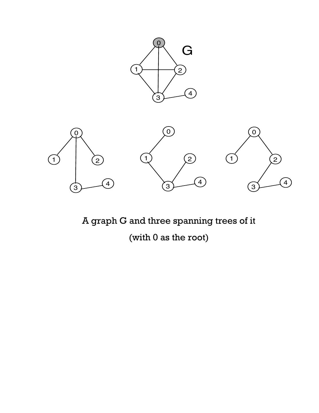 20 . 0 G 1 2 4 3 0 0 0 1 2 1 2 1 2 4 4 4 3 3 3 A graph G and three spanning trees of it (with 0 as the root)