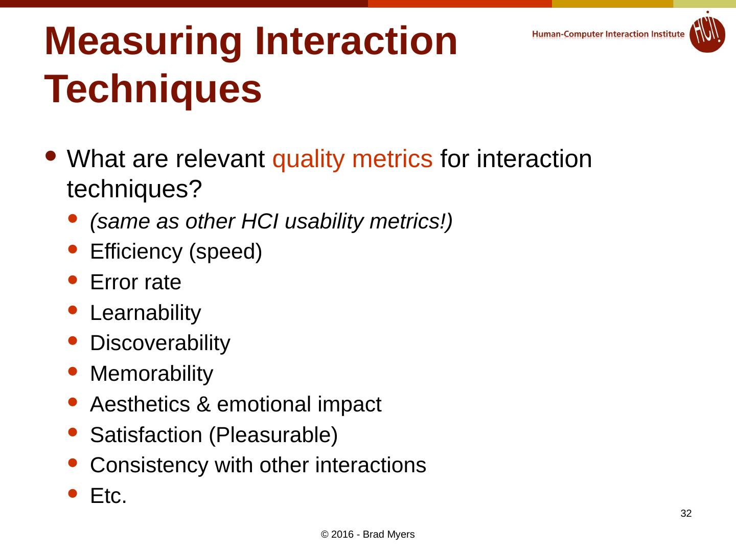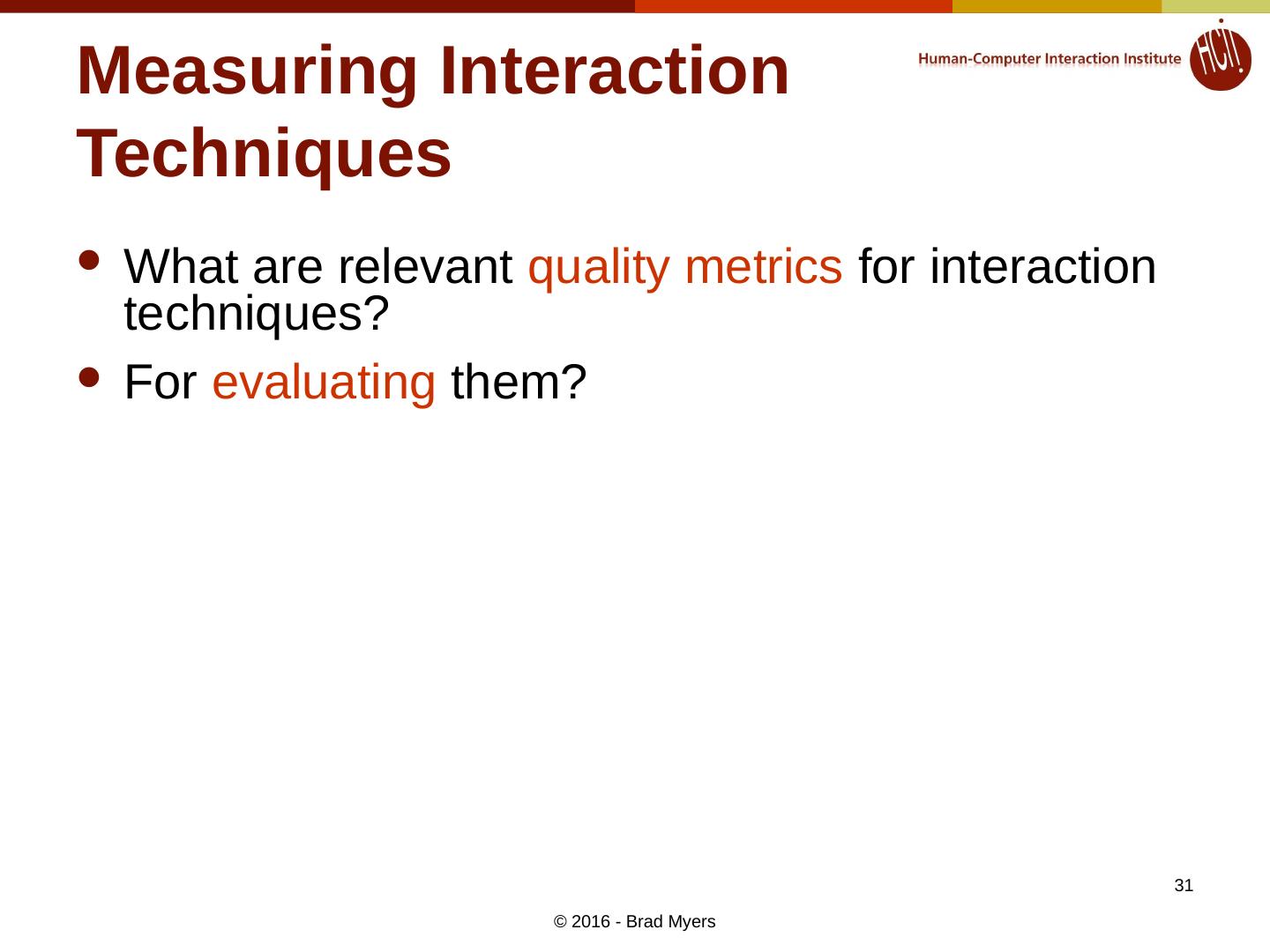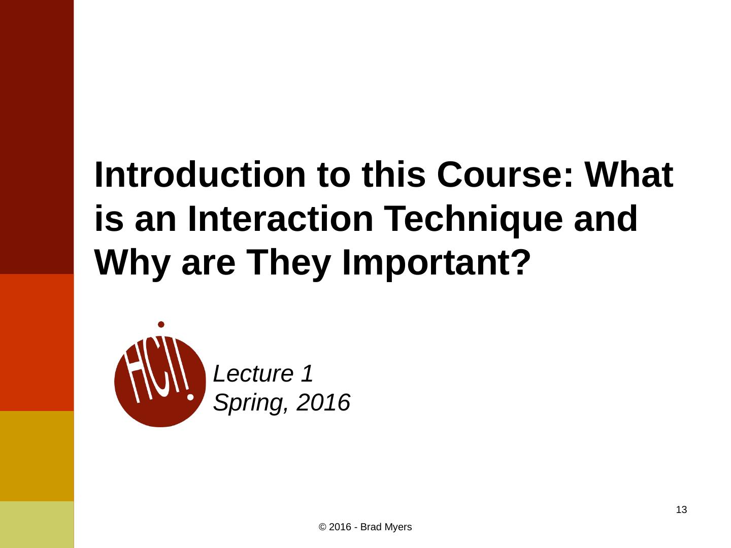 13 .Introduction to this Course: What is an Interaction Technique and Why are They Important? Lecture 1 Spring, 2016 13 © 2016 - Brad Myers