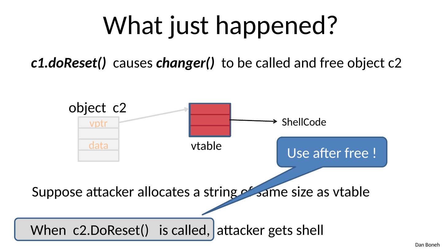 14 .Heap exploits: corrupting virtual tables Compiler generated function pointers (e.g. C++ code) After overflow of buf : vptr data Object T FP1 FP2 FP3 vtable method #1 method #2 method #3 vptr buf [256] data object T vtable NOP slide shell code