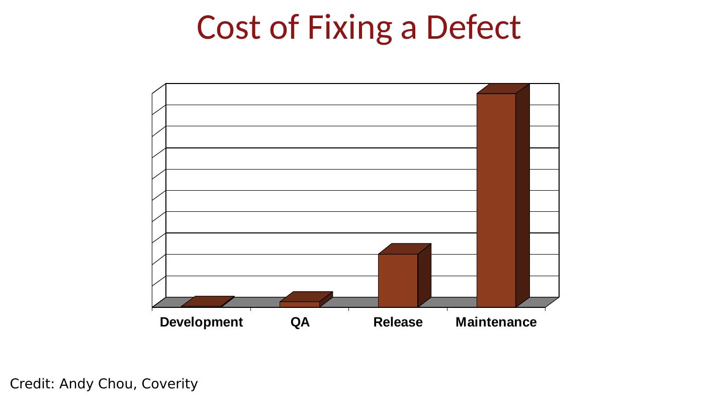 6 .Cost of Fixing a Defect Credit: Andy Chou, Coverity