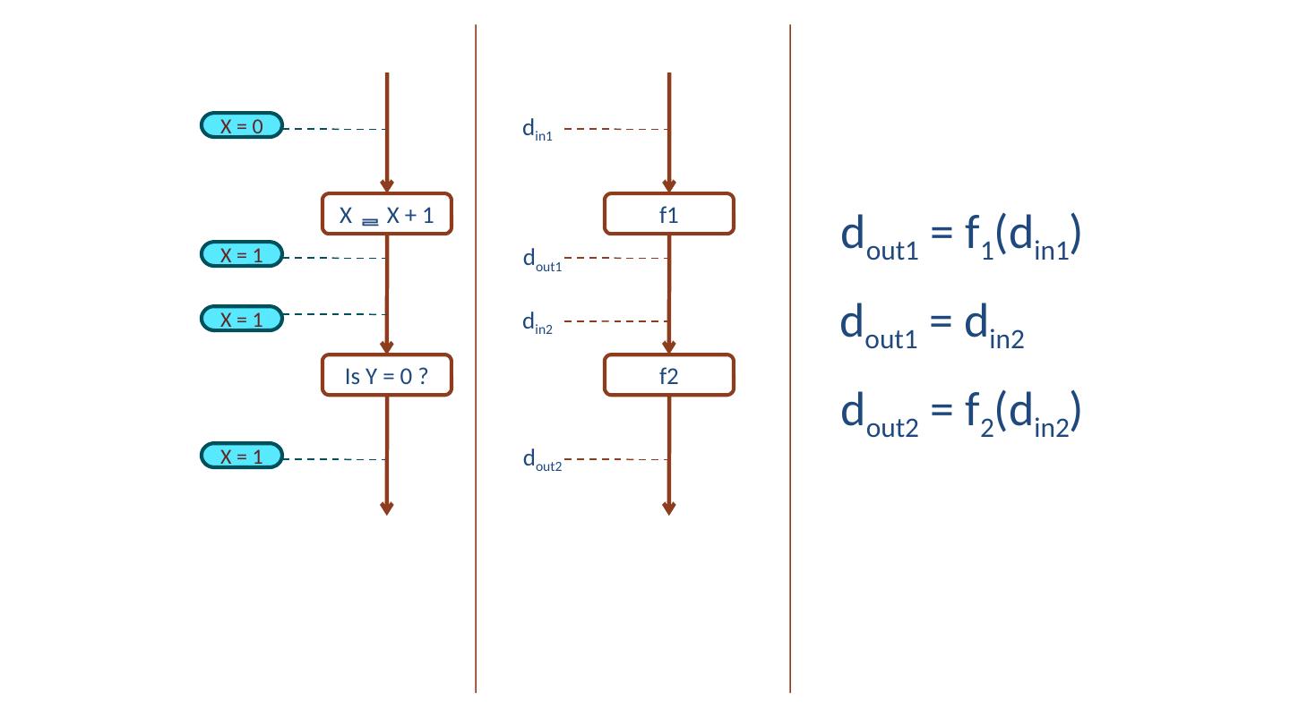 27 .X X + 1 f d in d out d out = f(d in ) X = 0 X = 1 dataflow elements transfer function dataflow equation
