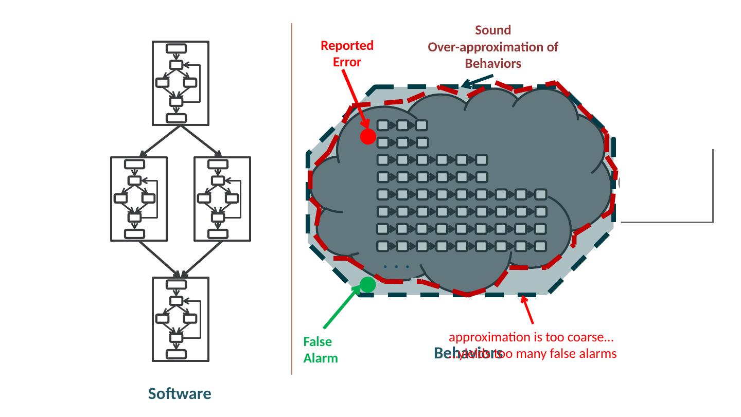 22 .Software . . . Behaviors Sound Over-approximation of Behaviors False Alarm Reported Error approximation is too coarse… …yields too many false alarms Modules