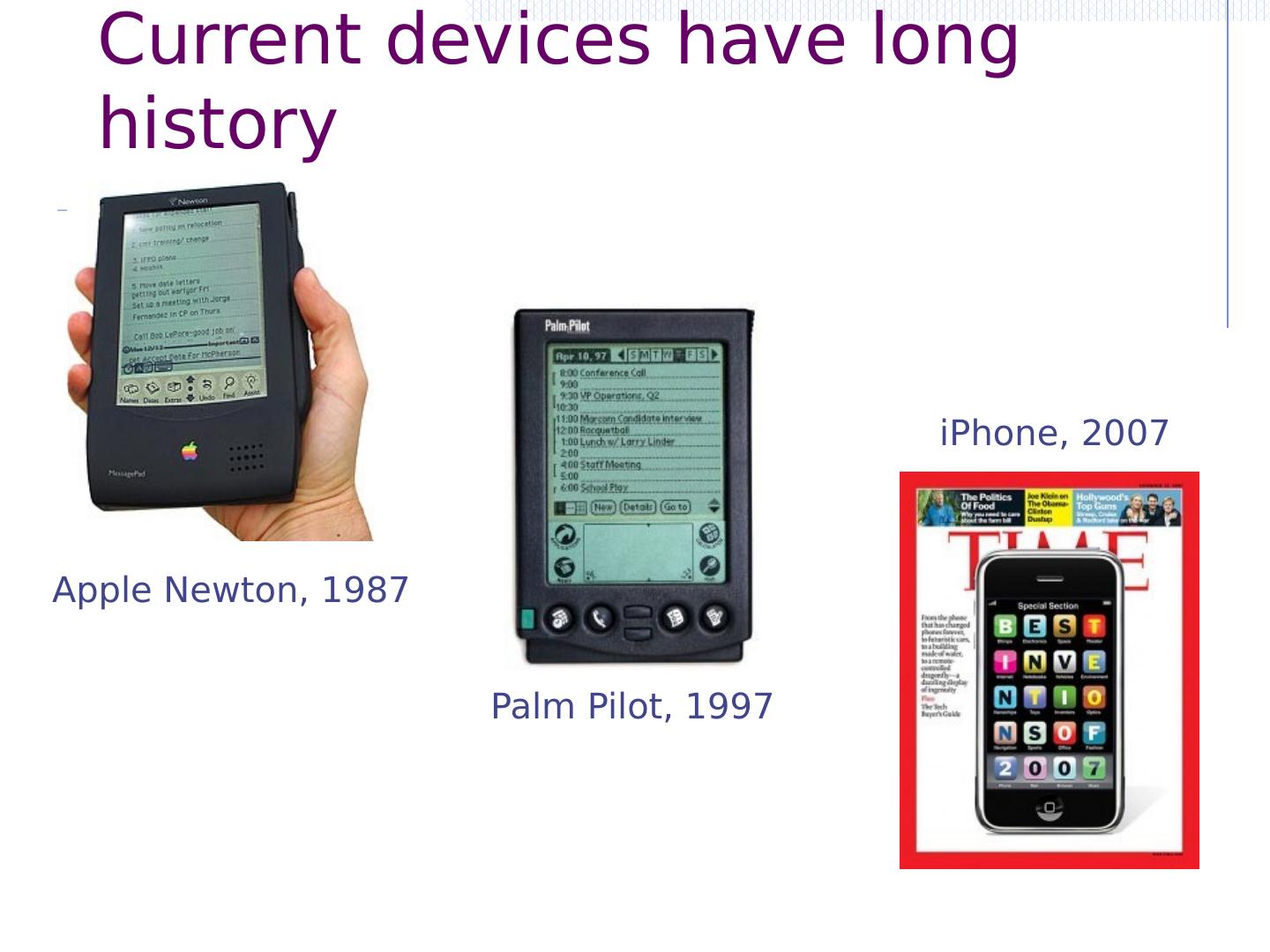 4 .Current devices have long history Apple Newton, 1987 Palm Pilot, 1997 iPhone, 2007