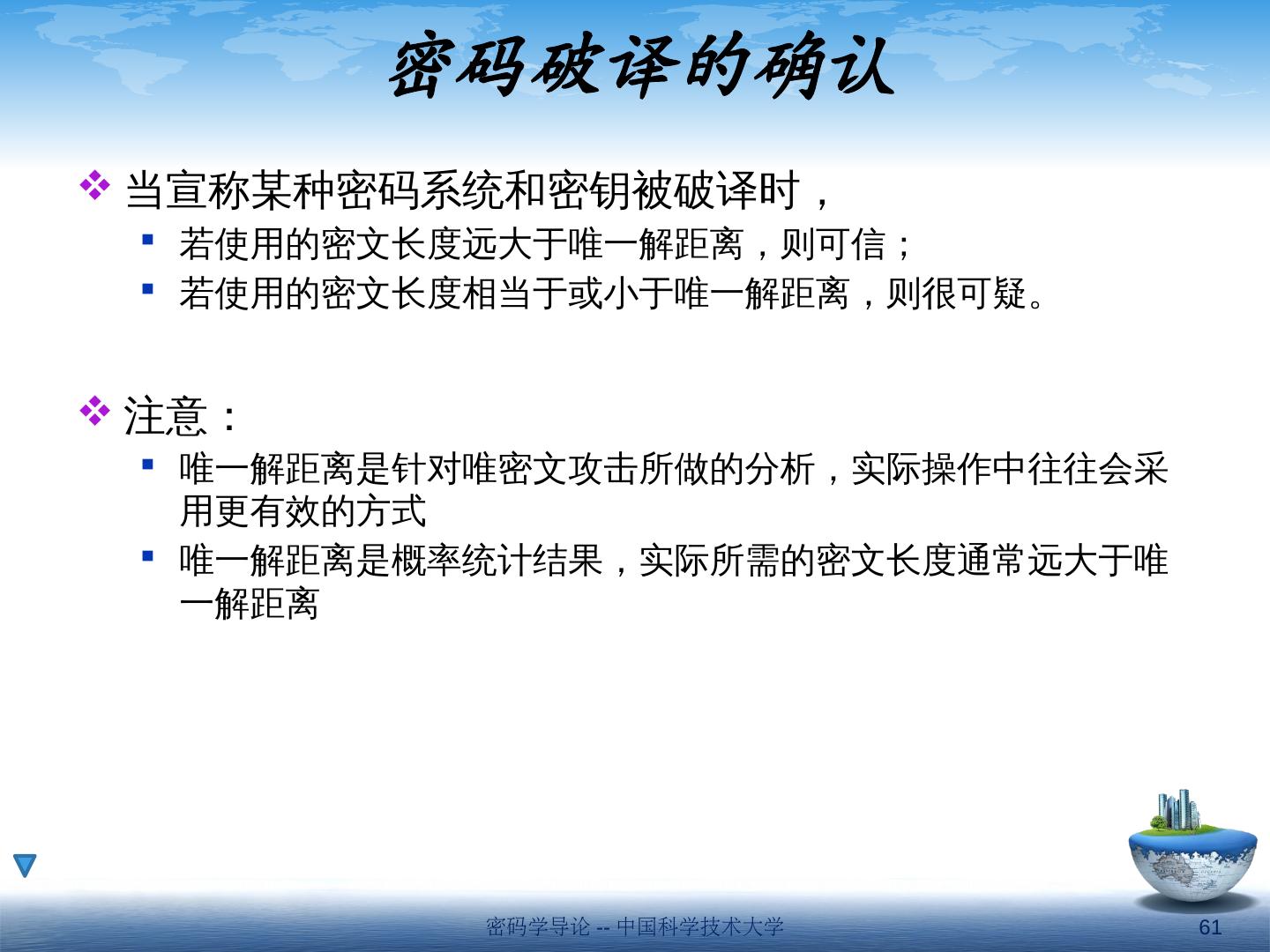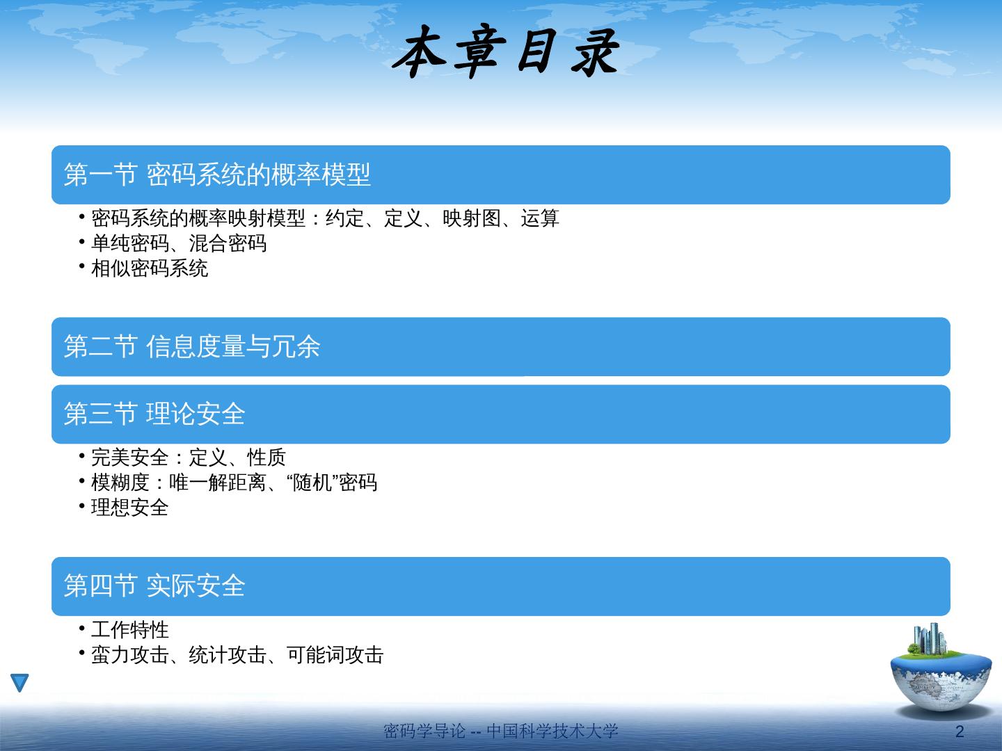 2 .本章目录 密码学导论 -- 中国科学技术大学 2