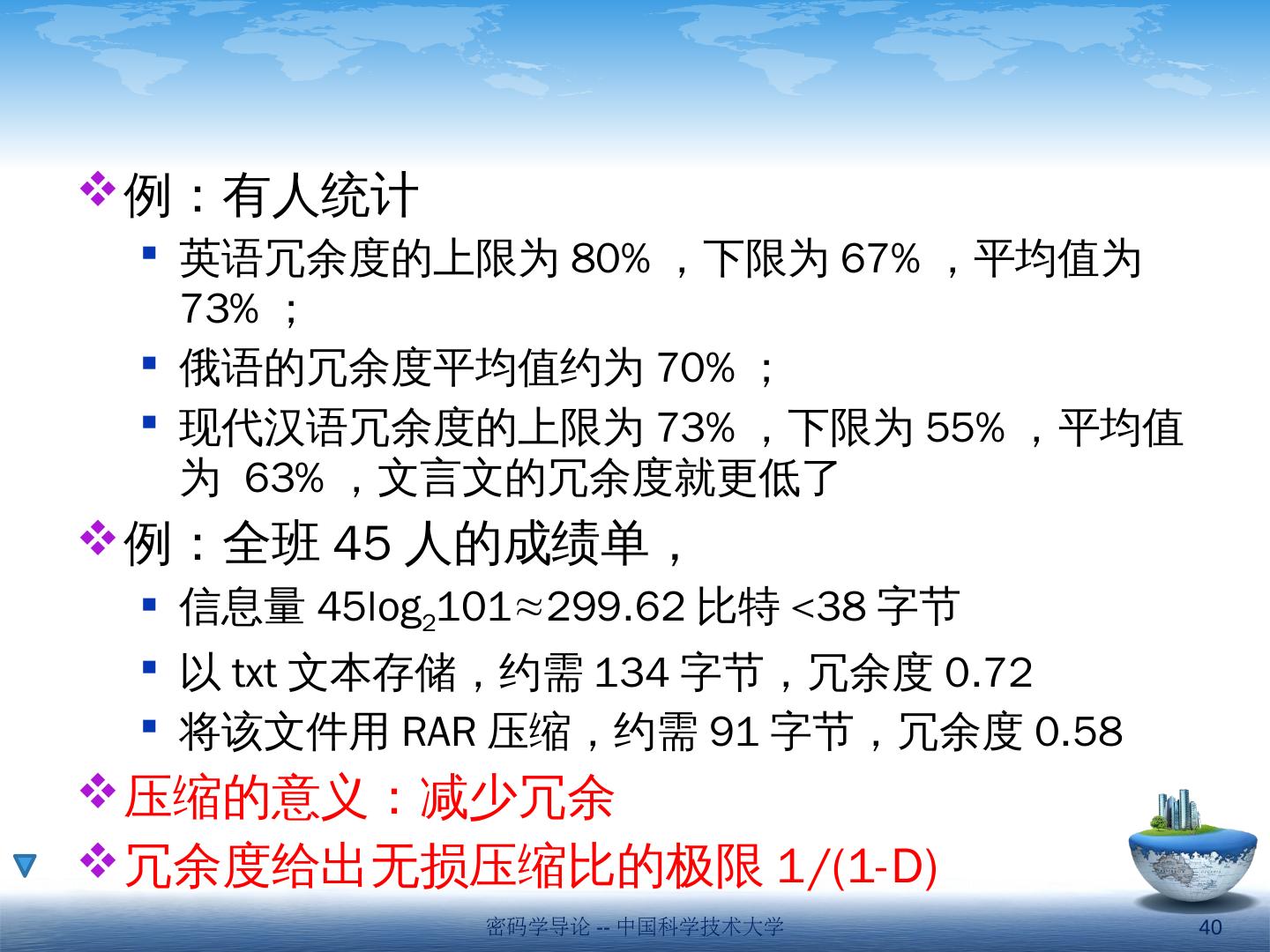 4 .第一节 密码系统的概率模型 密码学导论 -- 中国科学技术大学 4
