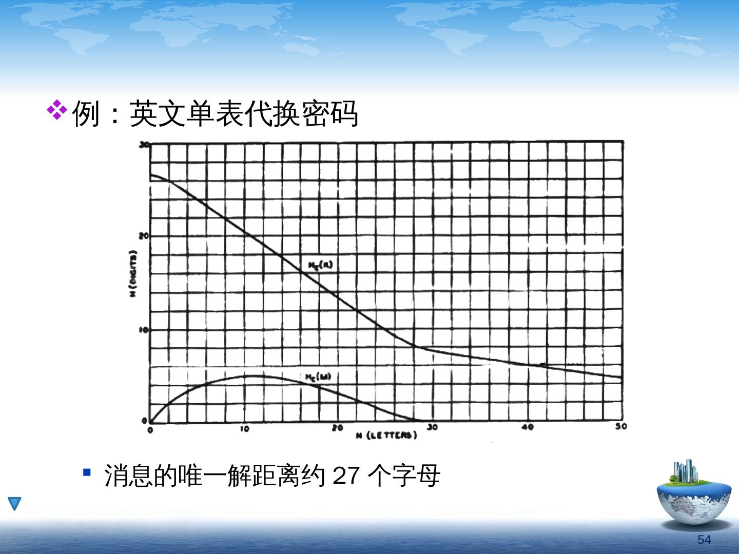 27 .剩余类集的例子: 周期为 d 的维吉尼亚密码是单纯密码系统。消息 c 与跟 c 周期性等差的明文属于同一剩余类。 假设 d=3 ,即指 m 1 -m 4 =c 1 -c 4 , m 2 -m 5 =c 2 -c 5 , m 3 -m 6 =c 3 -c 6 , m 4 -m 7 =c 4 -c 7 , … 周期 为 d 的置换密码是单纯密码系统。剩余类中元素的特征为:字符的移位不跨越长度为 d 的块;两个距离为 d 的字符在置换后距离仍为 d 。 25