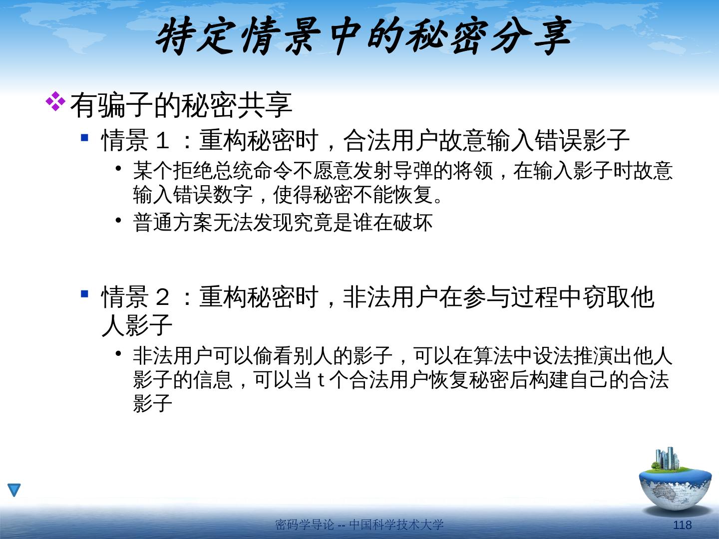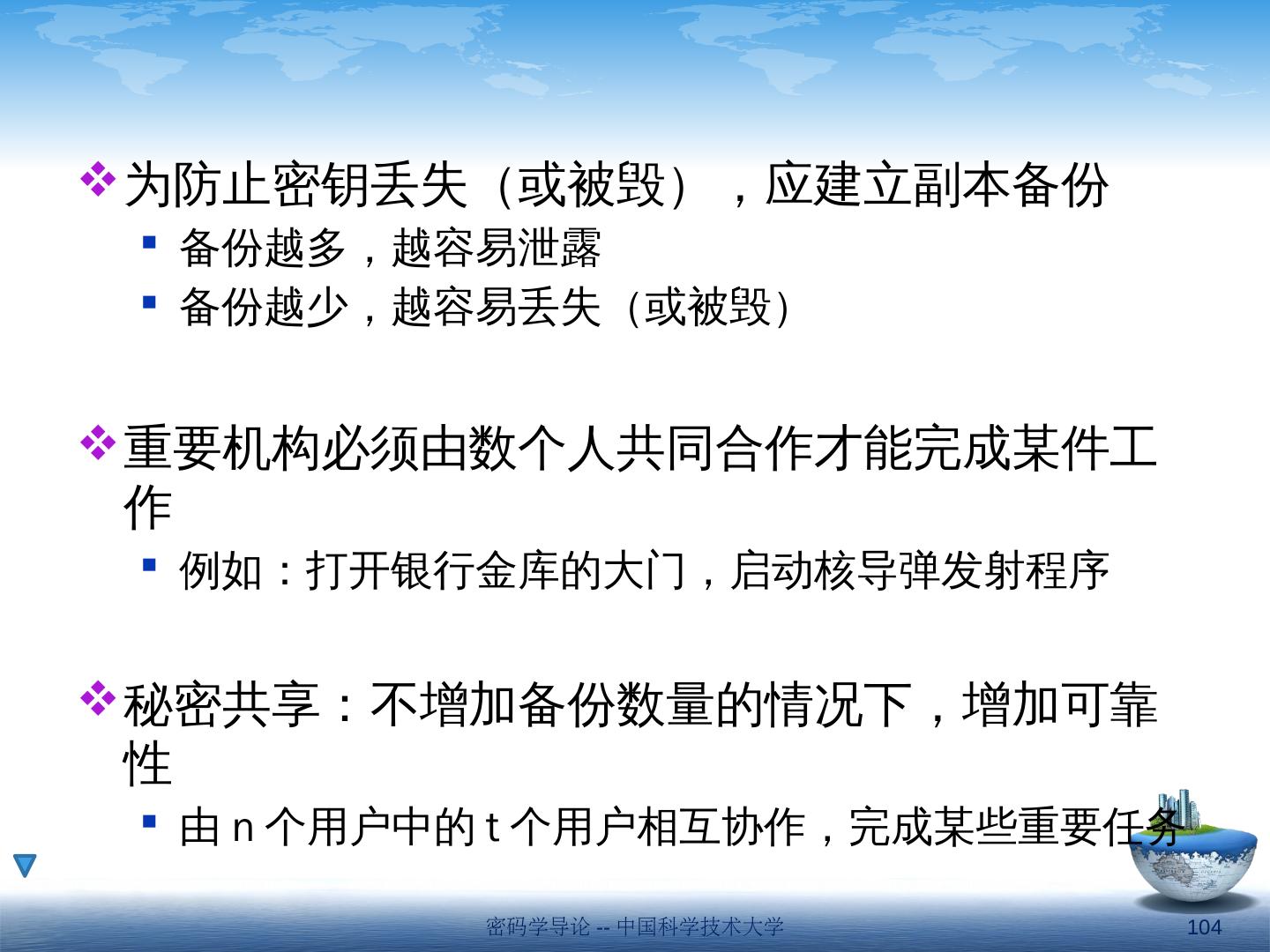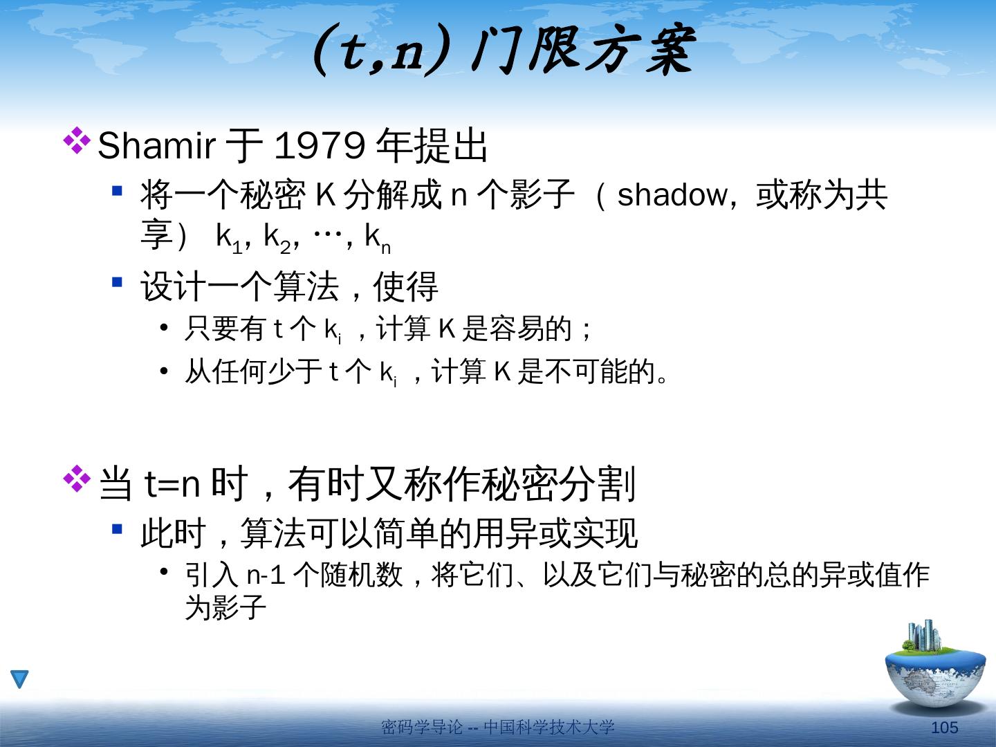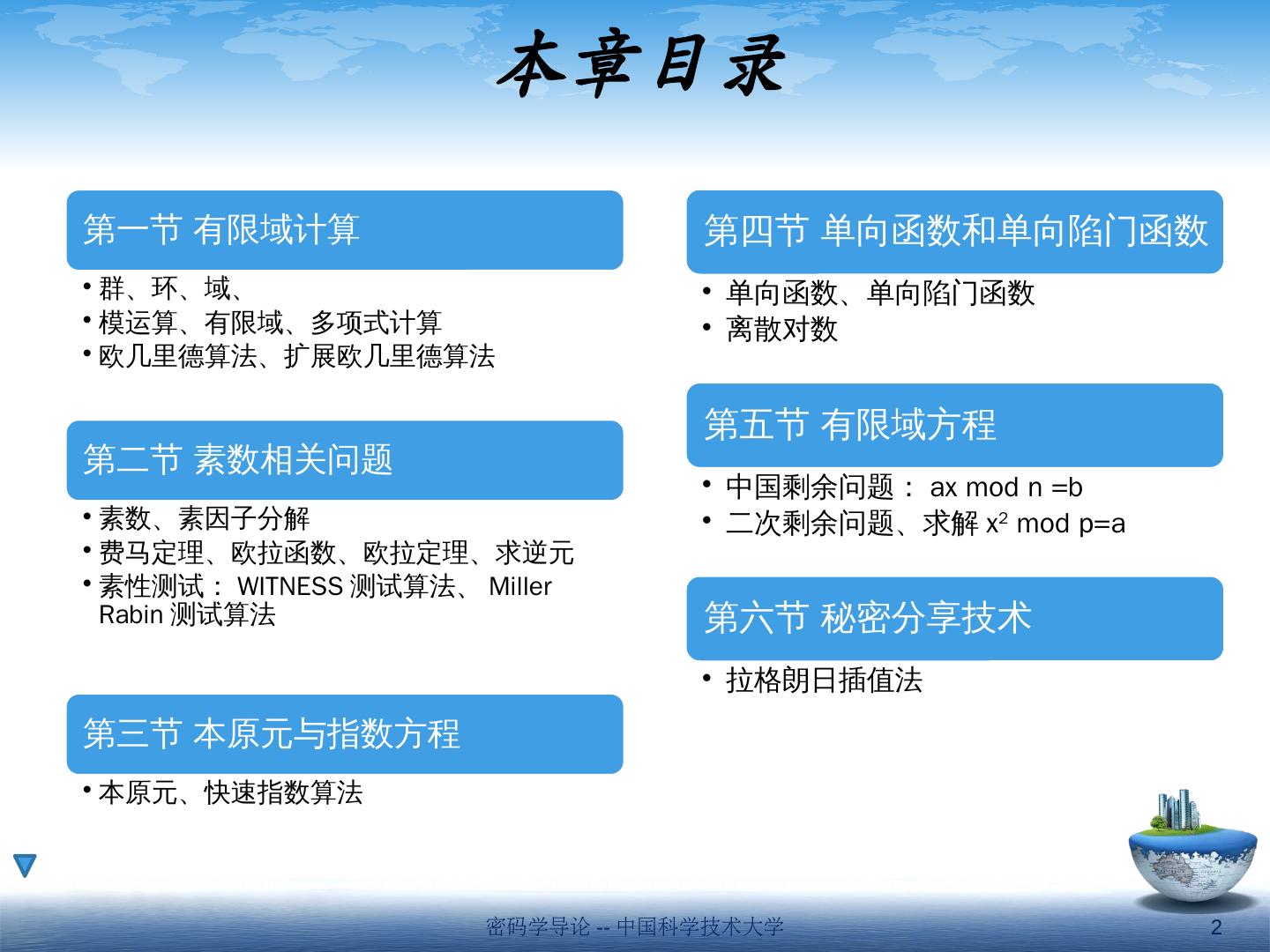 2 .本章目录 密码学导论 -- 中国科学技术大学 2