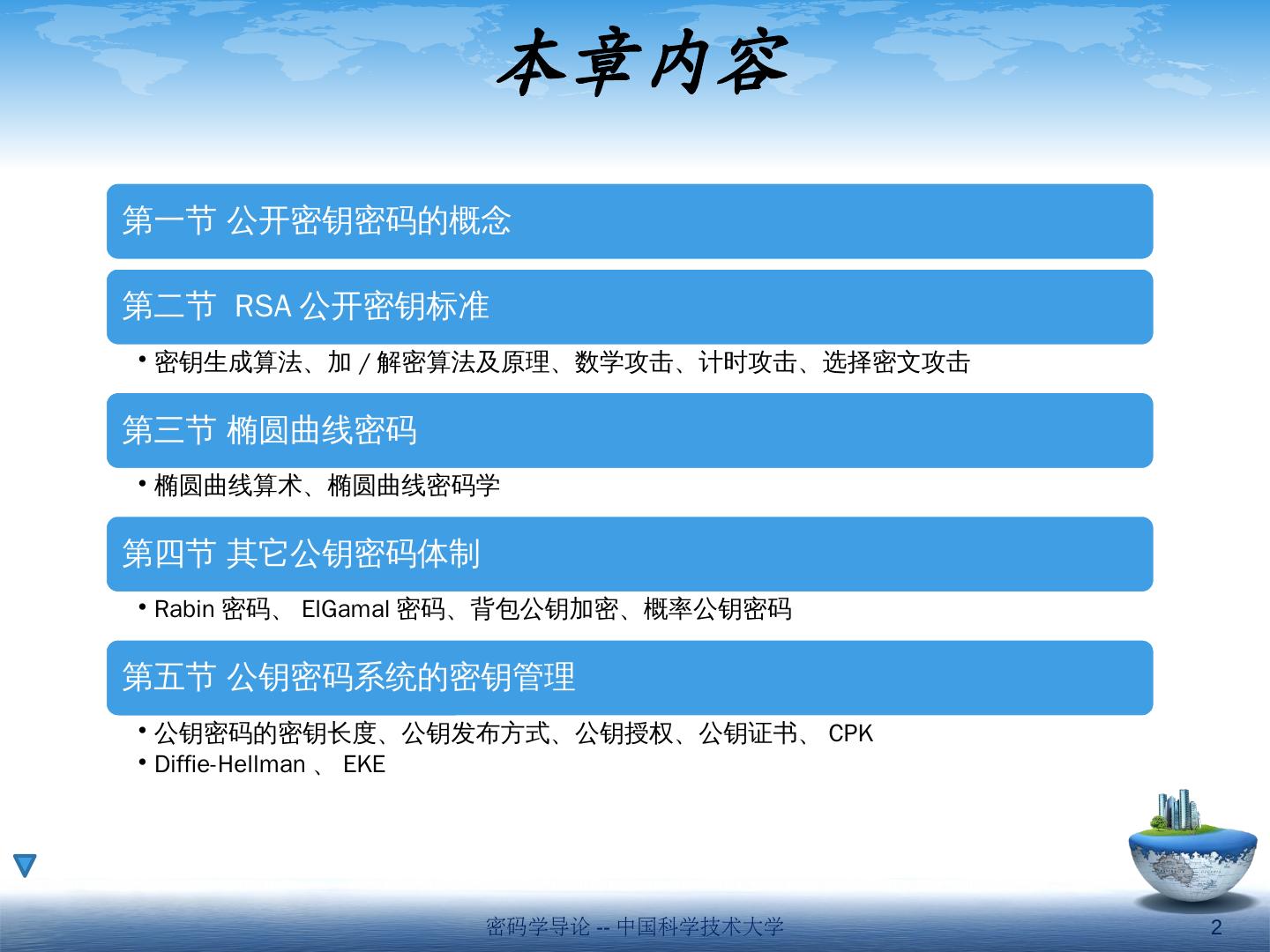 2 .本章 内容 密码学导论 -- 中国科学技术大学 2